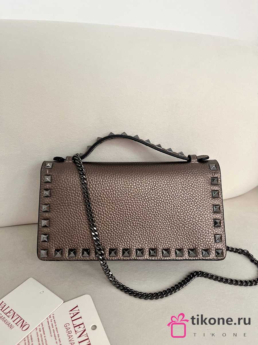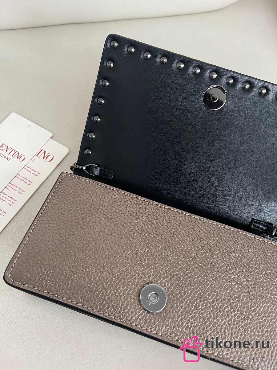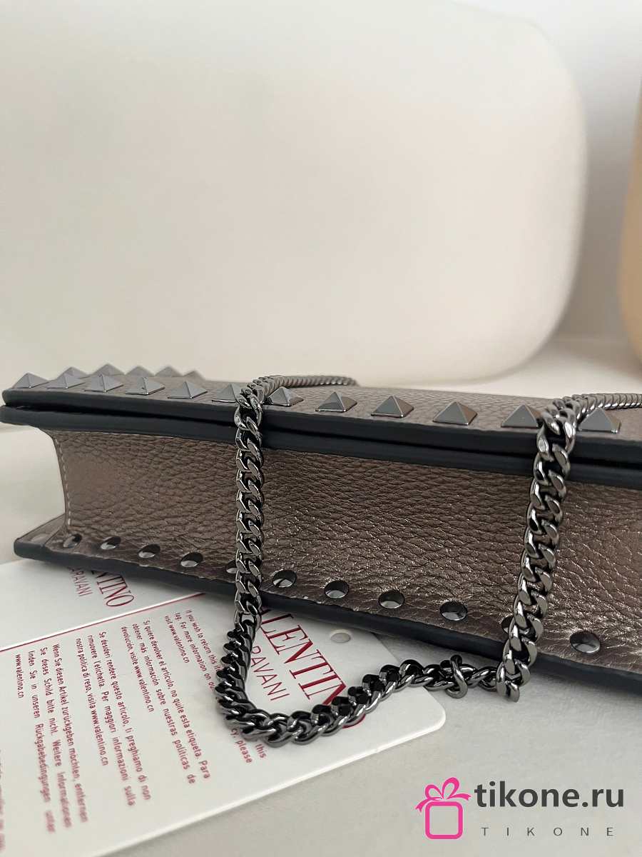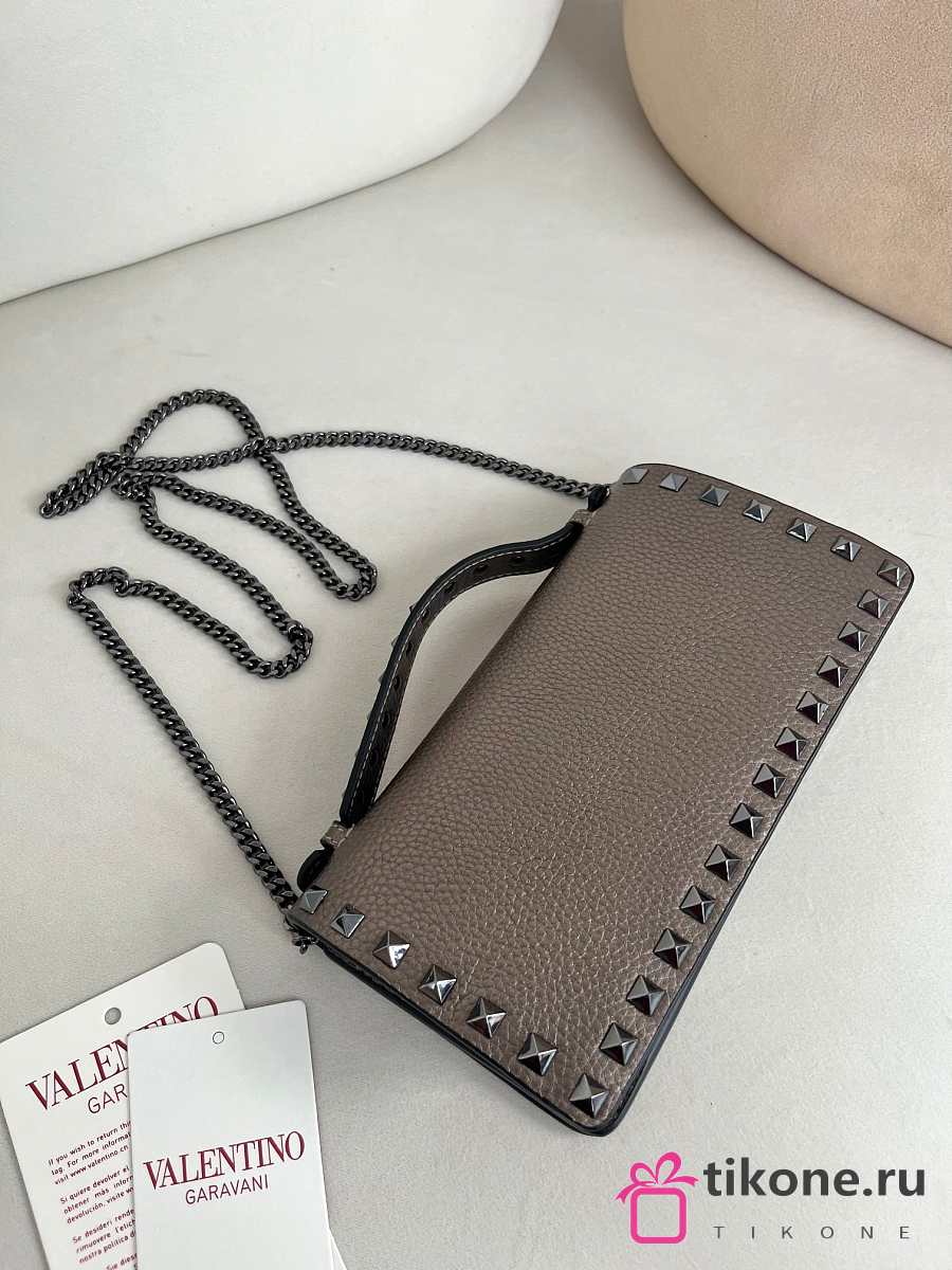 VLTN Rockstud Wallet With Chain In Grainy Calfskin Taupe Metallic - 21x10.5x4cm