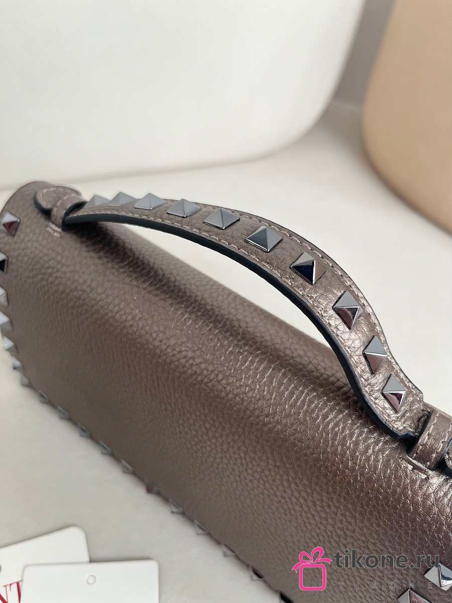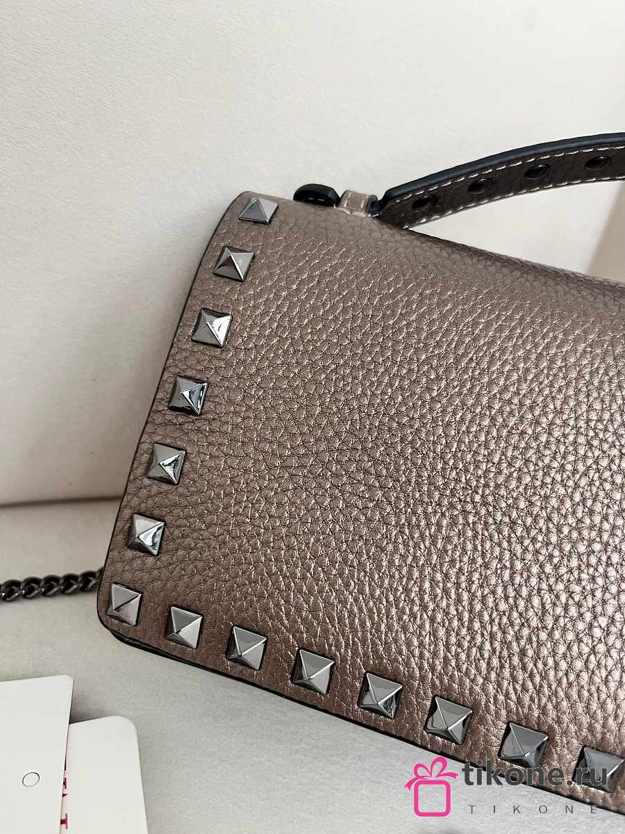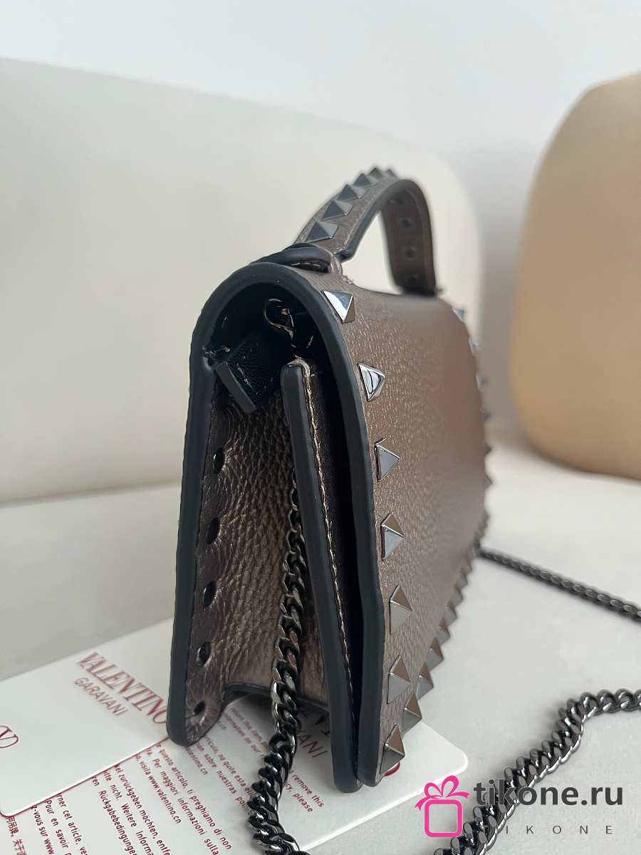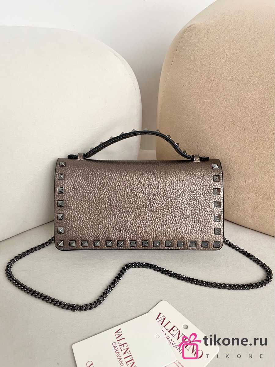 VLTN Rockstud Wallet With Chain In Grainy Calfskin Taupe Metallic - 21x10.5x4cm