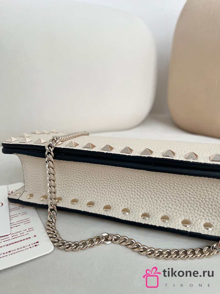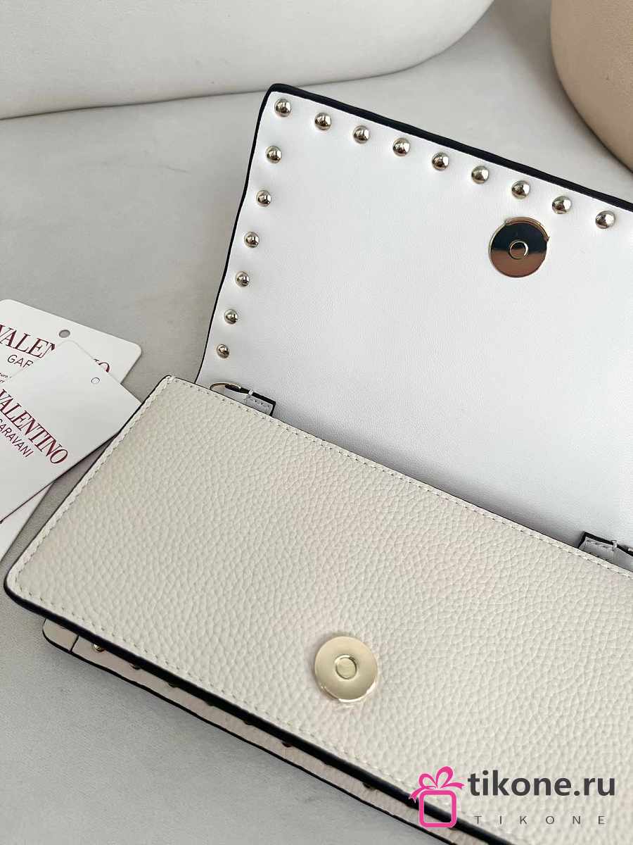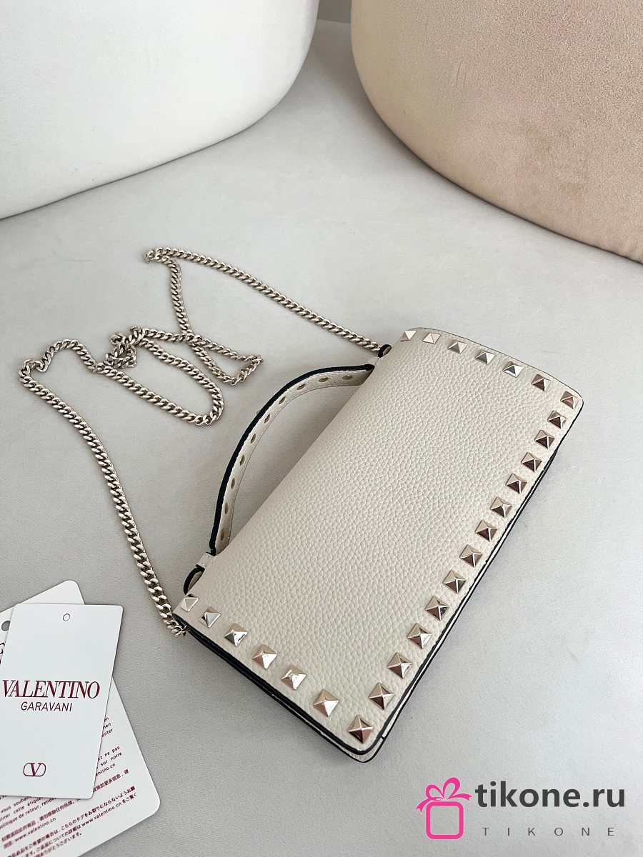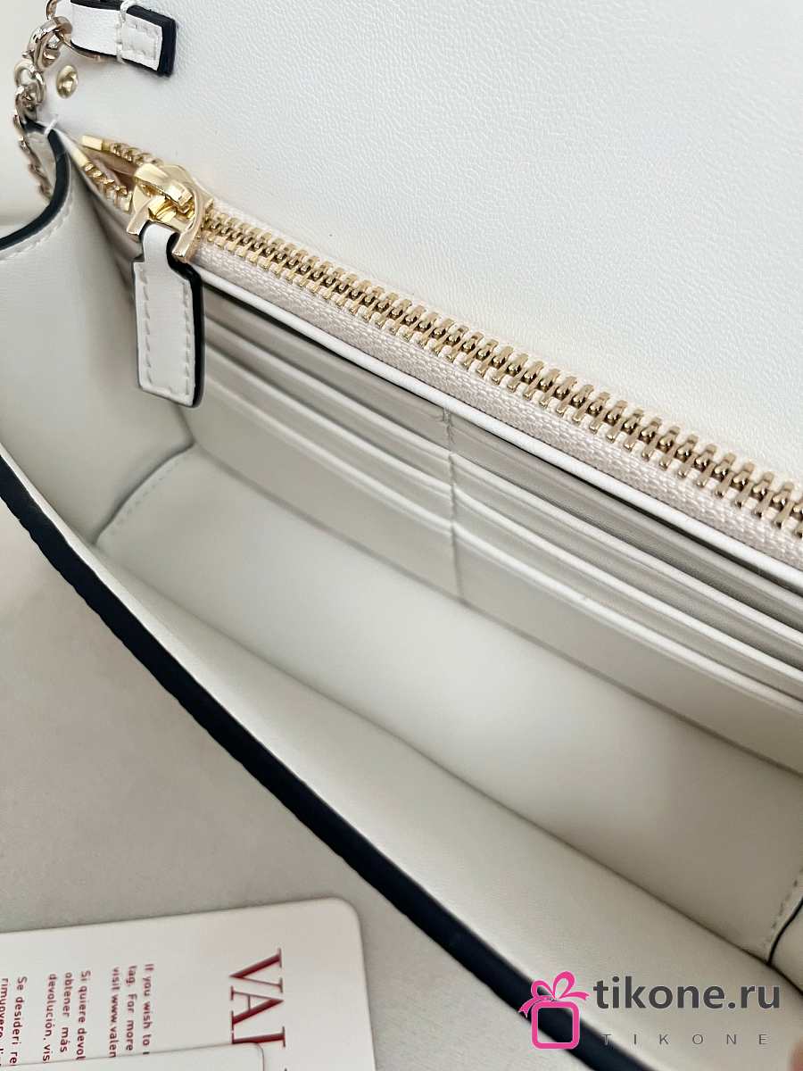 VLTN Rockstud Wallet With Chain In Grainy Calfskin White - 21x10.5x4cm