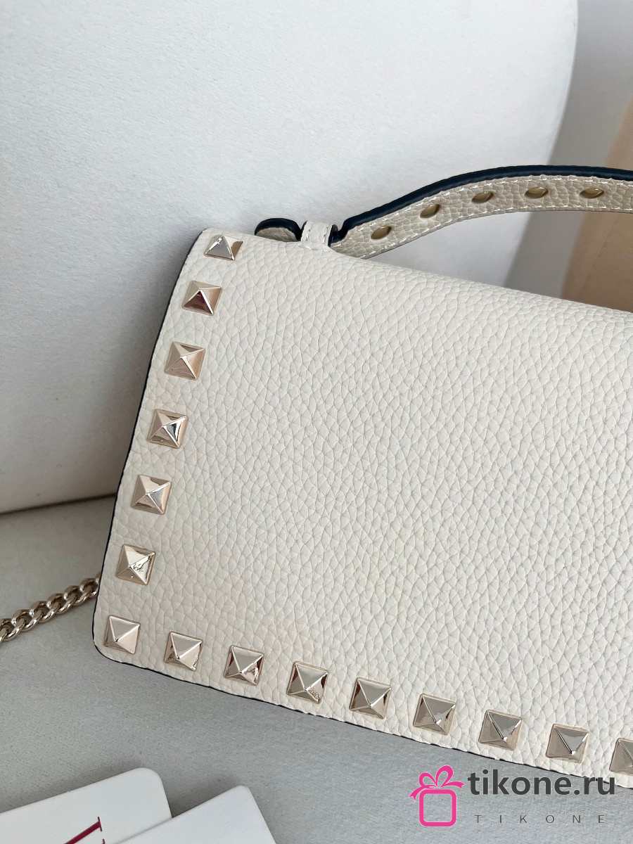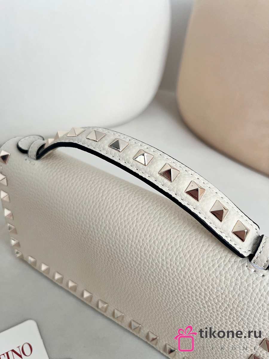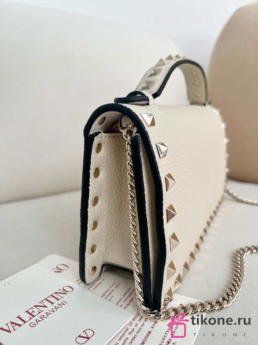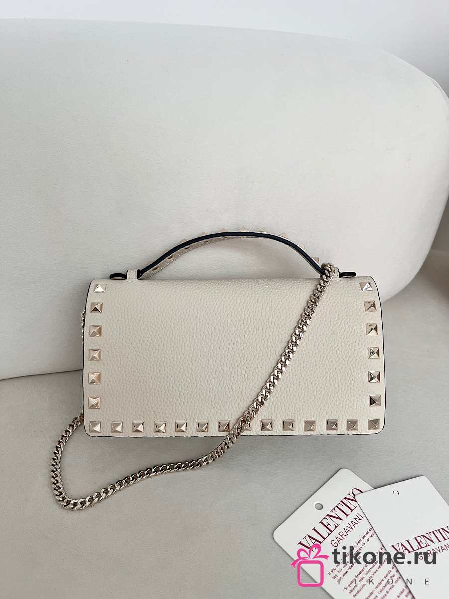 VLTN Rockstud Wallet With Chain In Grainy Calfskin White - 21x10.5x4cm