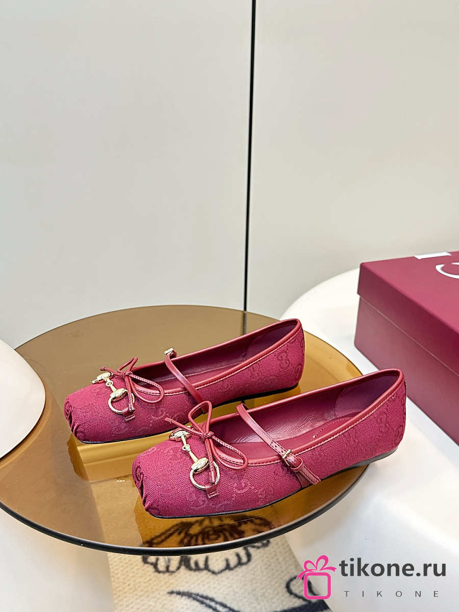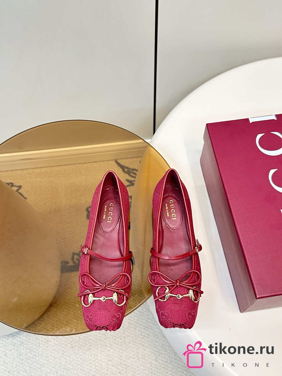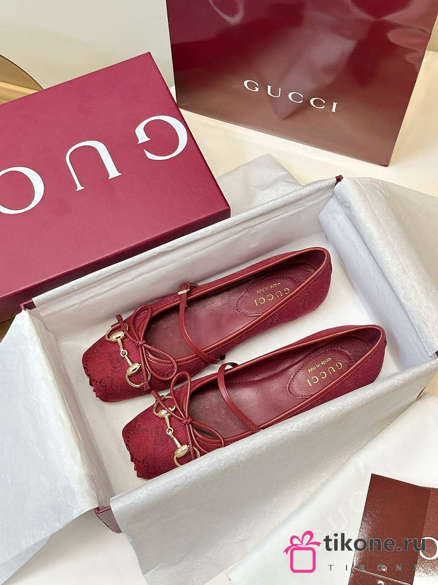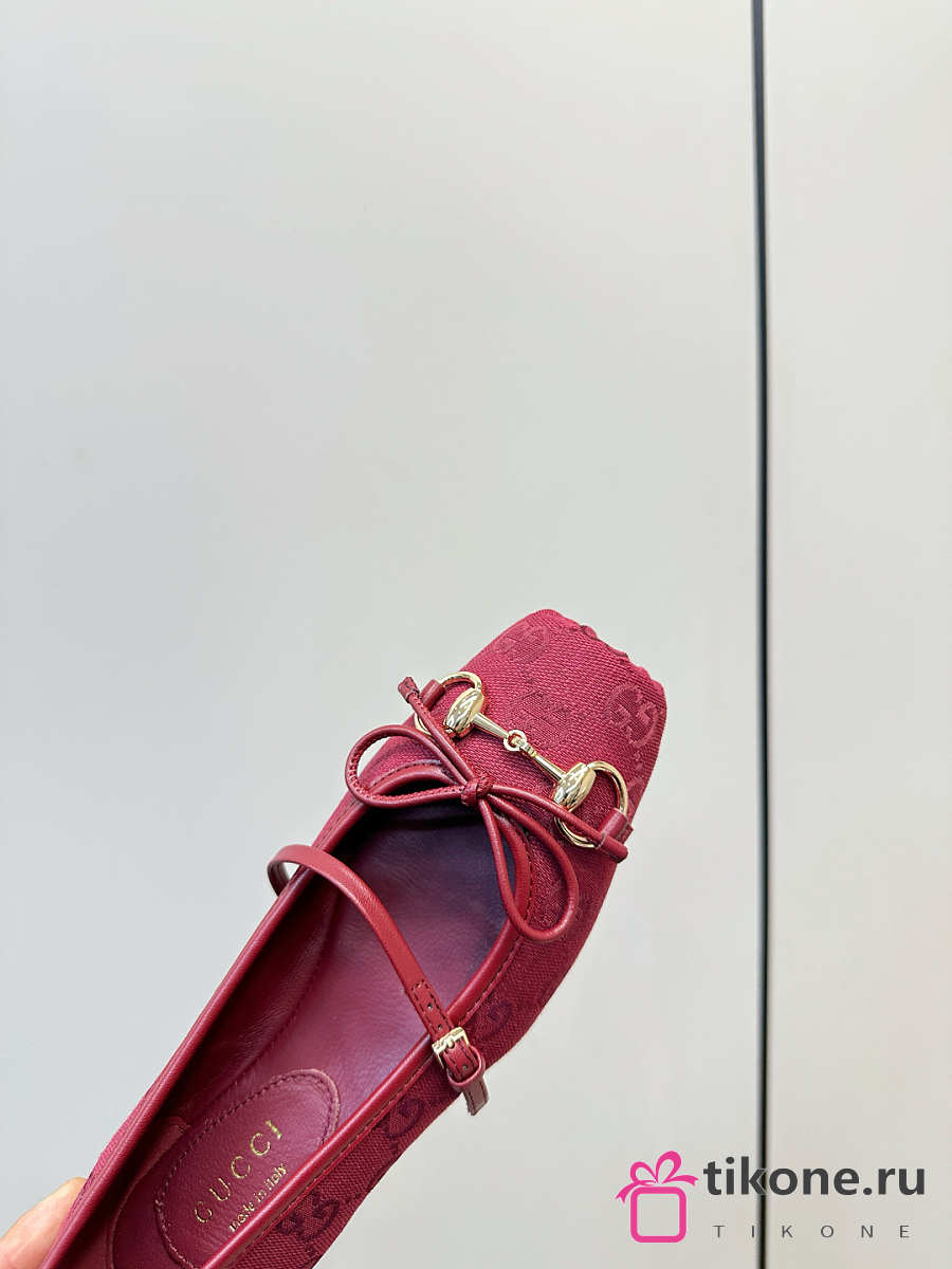 Women's Gucci Horsebit Ballet Flat Red Original GG Canvas
