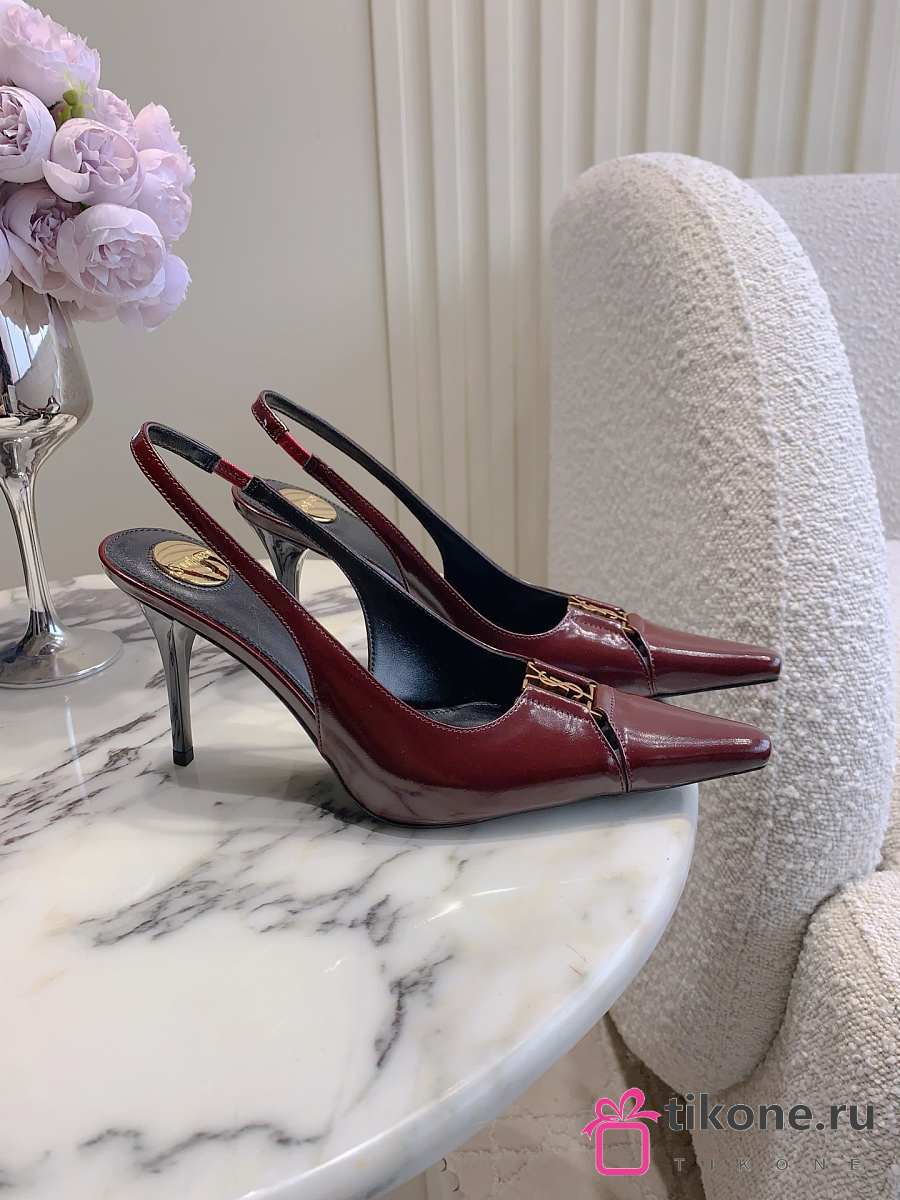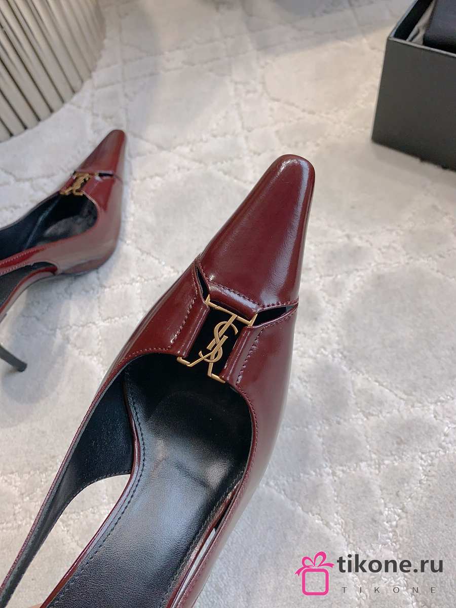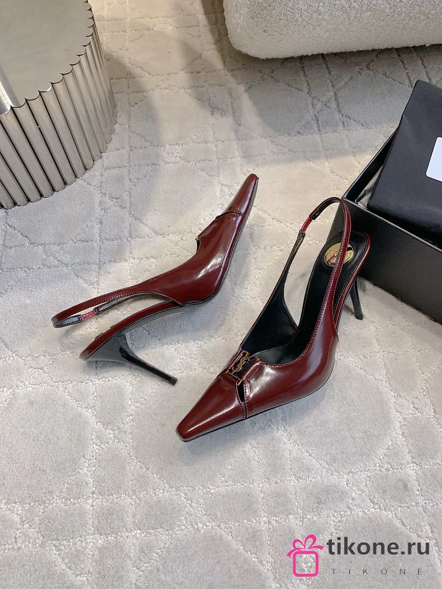 YSL Babylone Breteuil Slingback Pumps In Smooth Leather In Burgundy 9mm