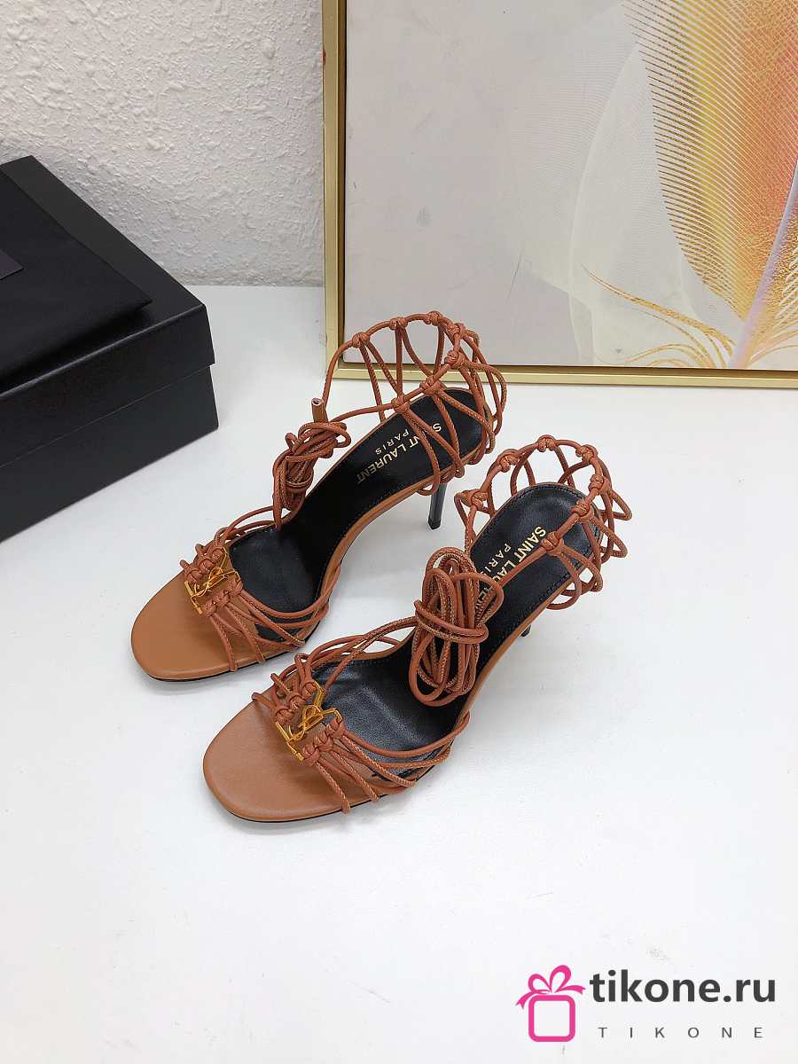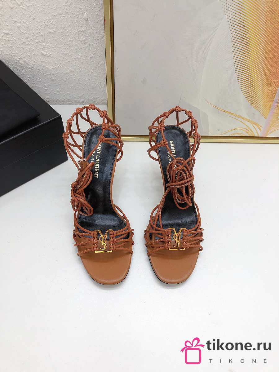 YSL Babylone Sandals In Smooth Leather Cigare Brown 9cm