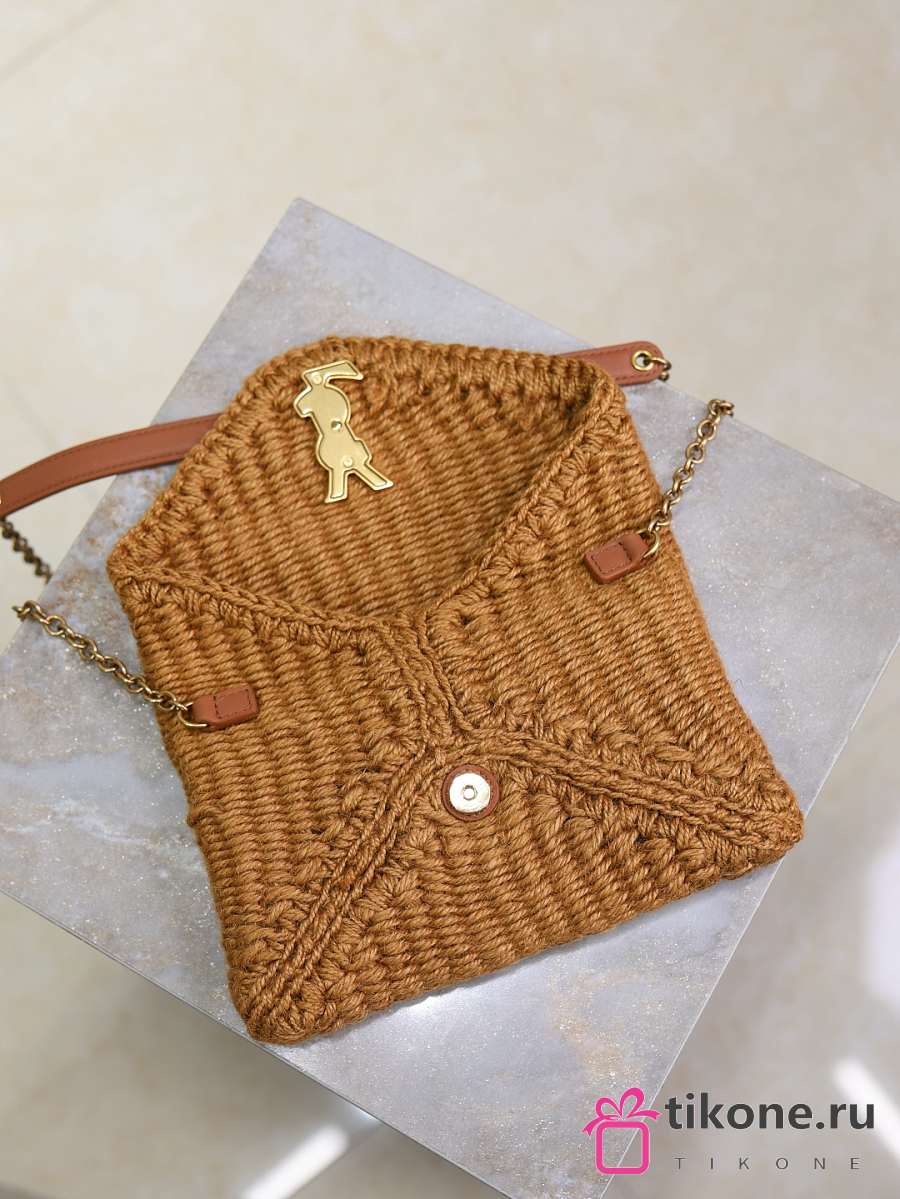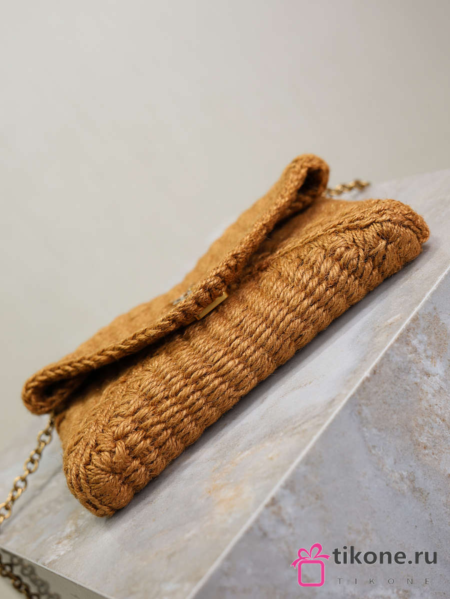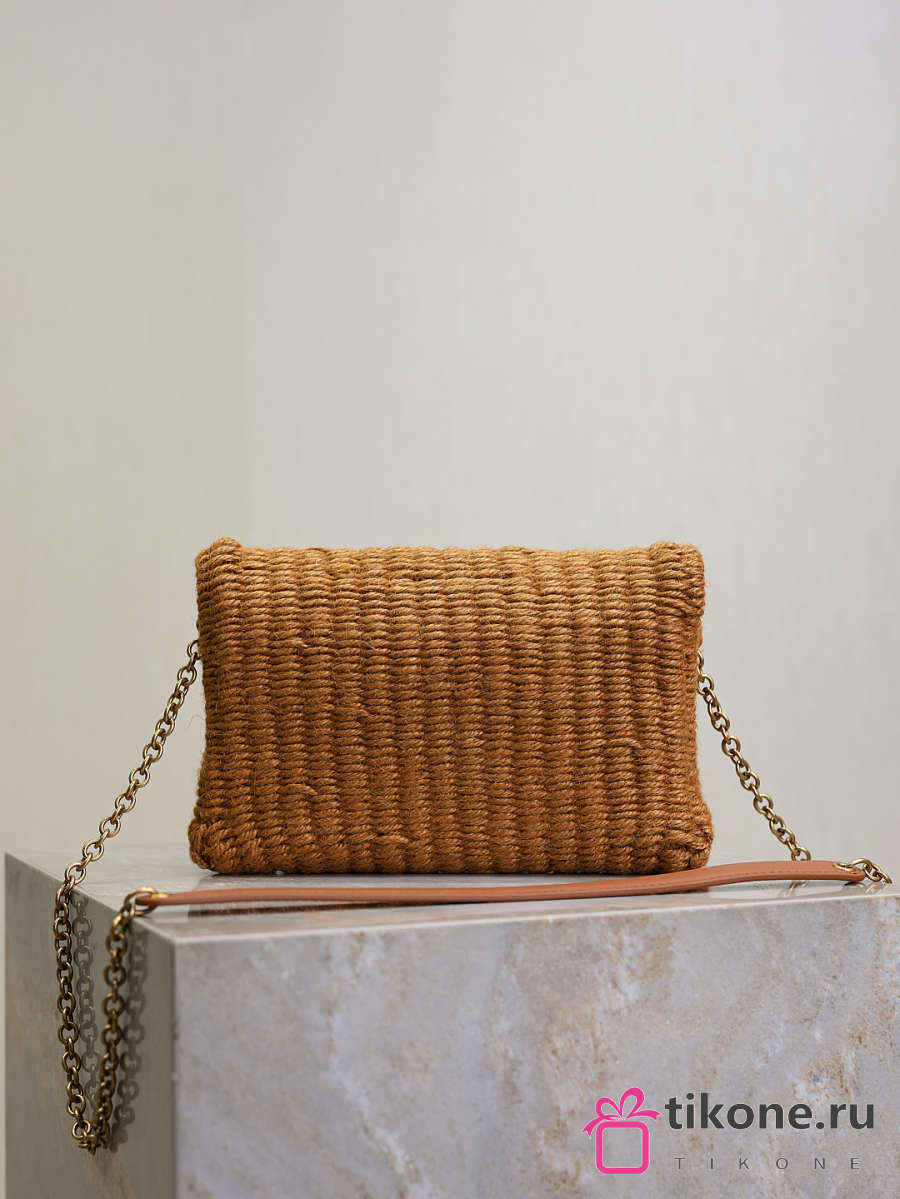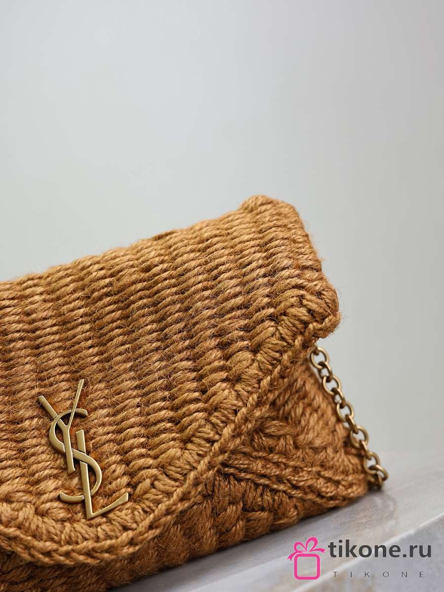 YSL Cassandre Chain Pouch In Raffia Natural Brown - 19x12x3cm