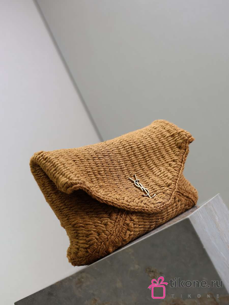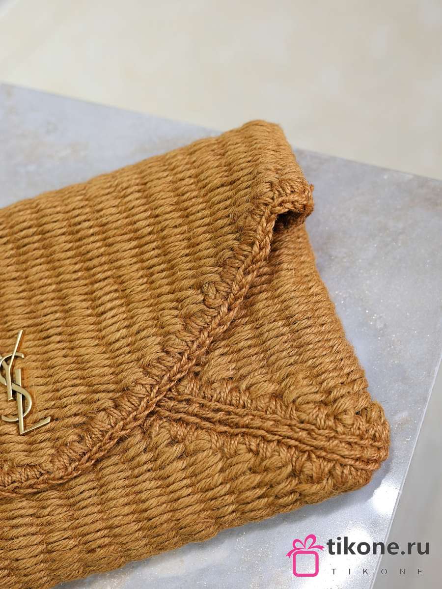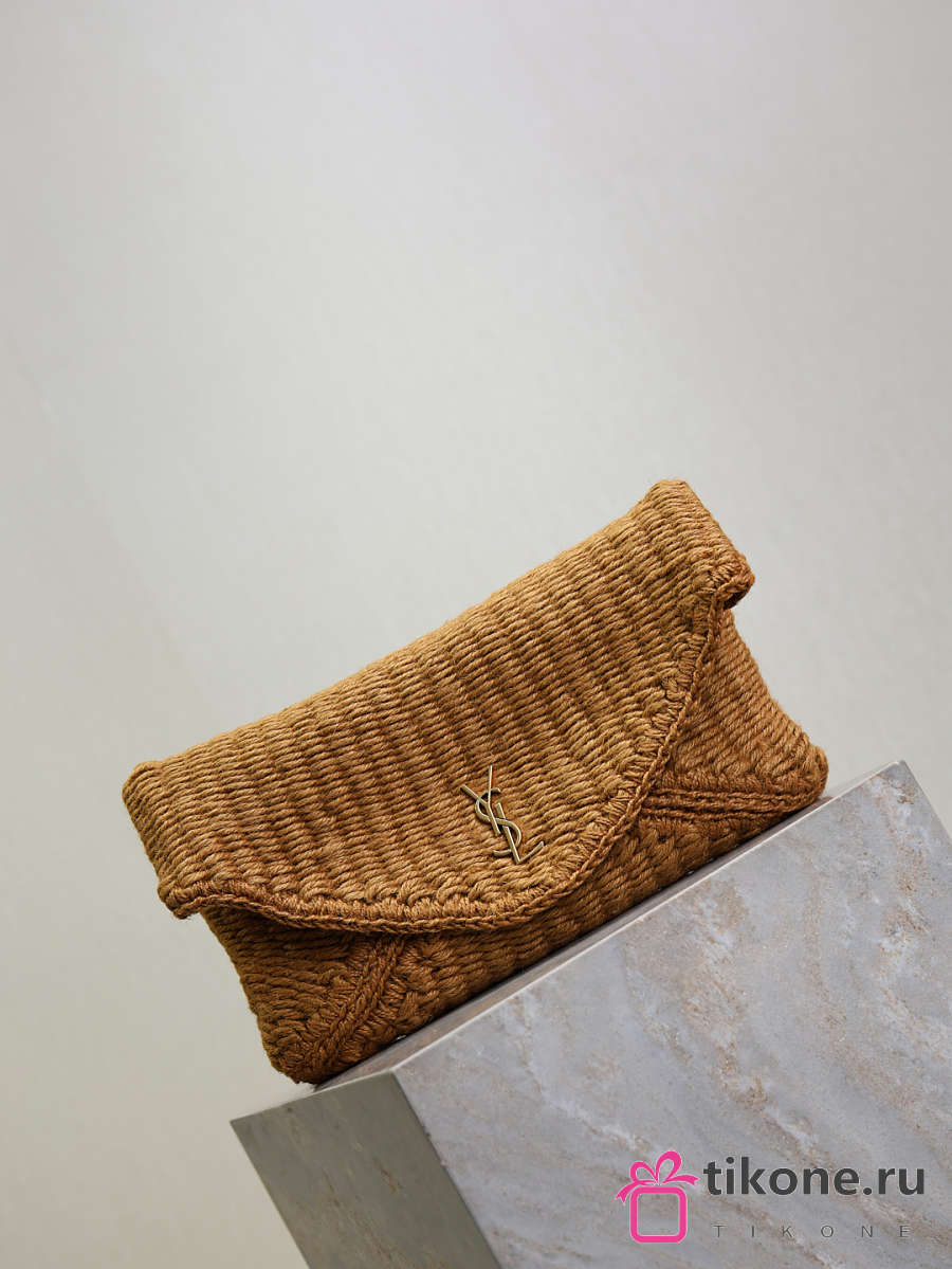 YSL Cassandre Large Envelope Pouch In Raffia Natural Brown - 29.5×18×4.5cm