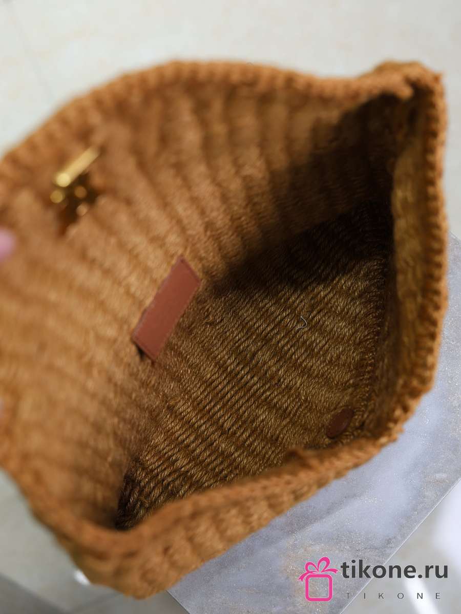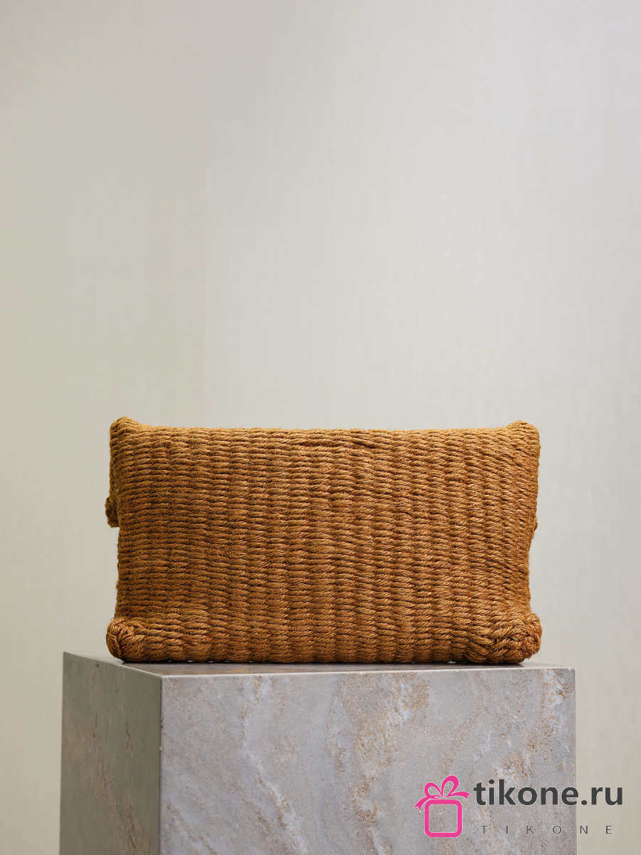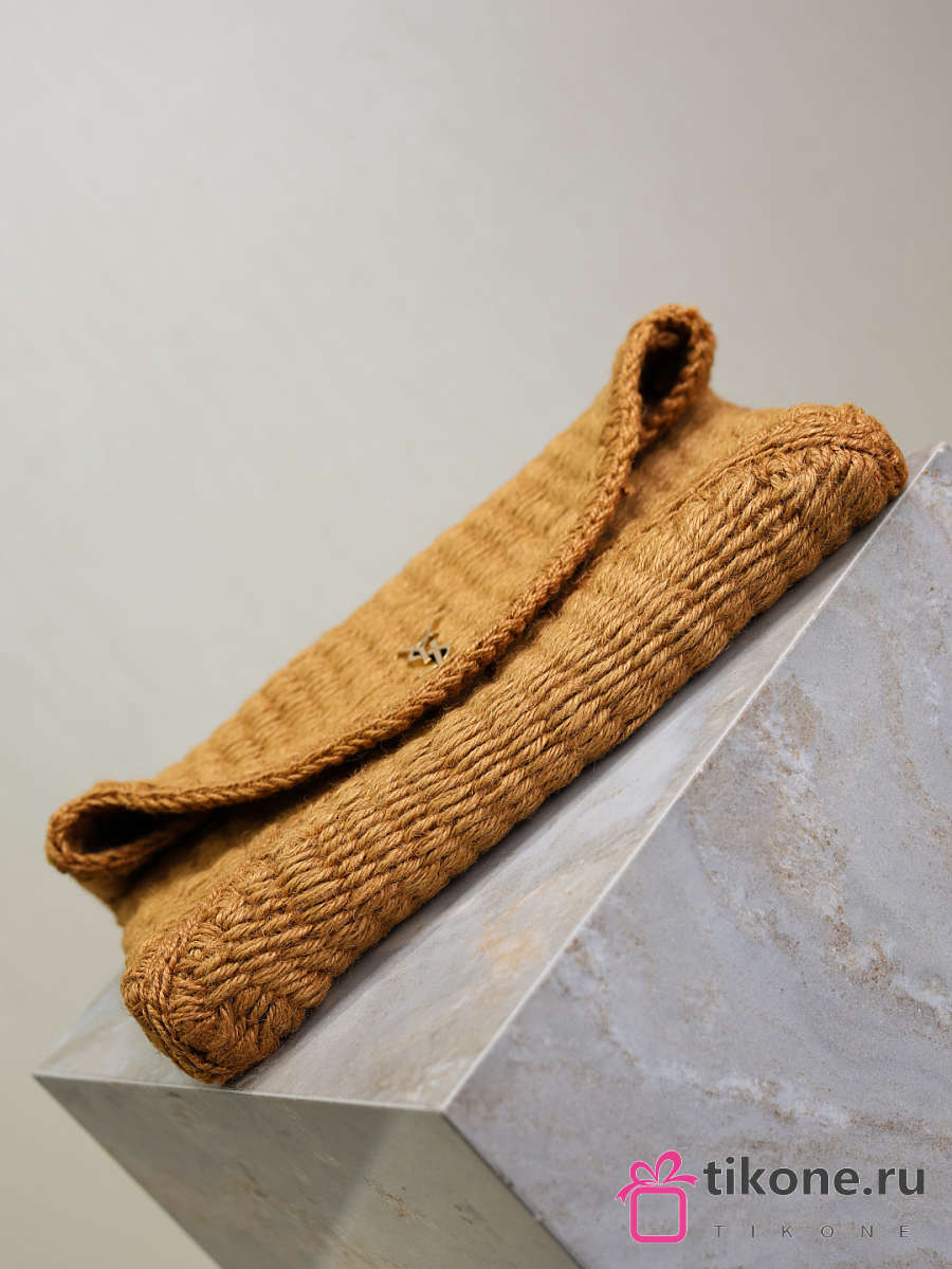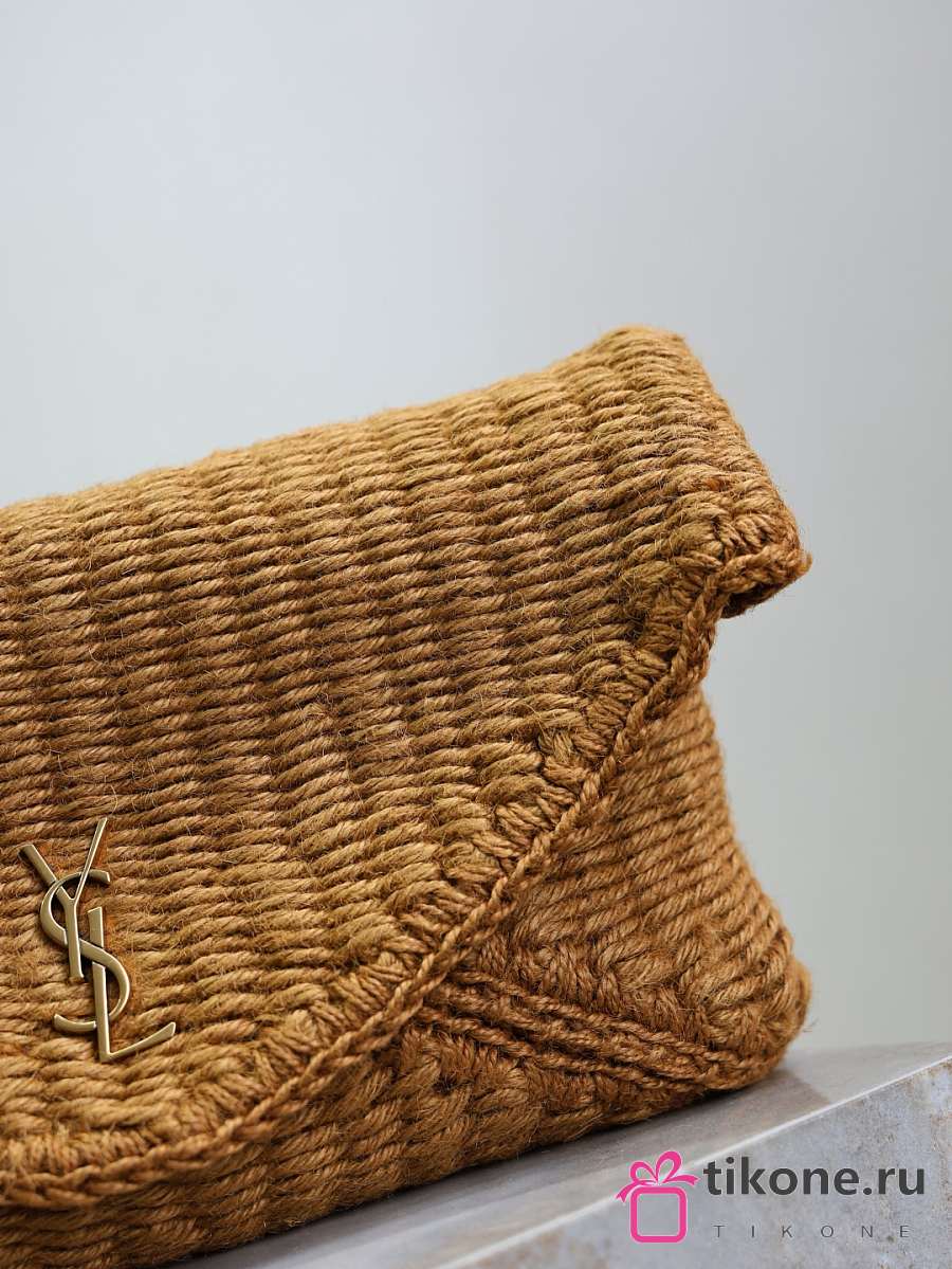 YSL Cassandre Large Envelope Pouch In Raffia Natural Brown - 29.5×18×4.5cm