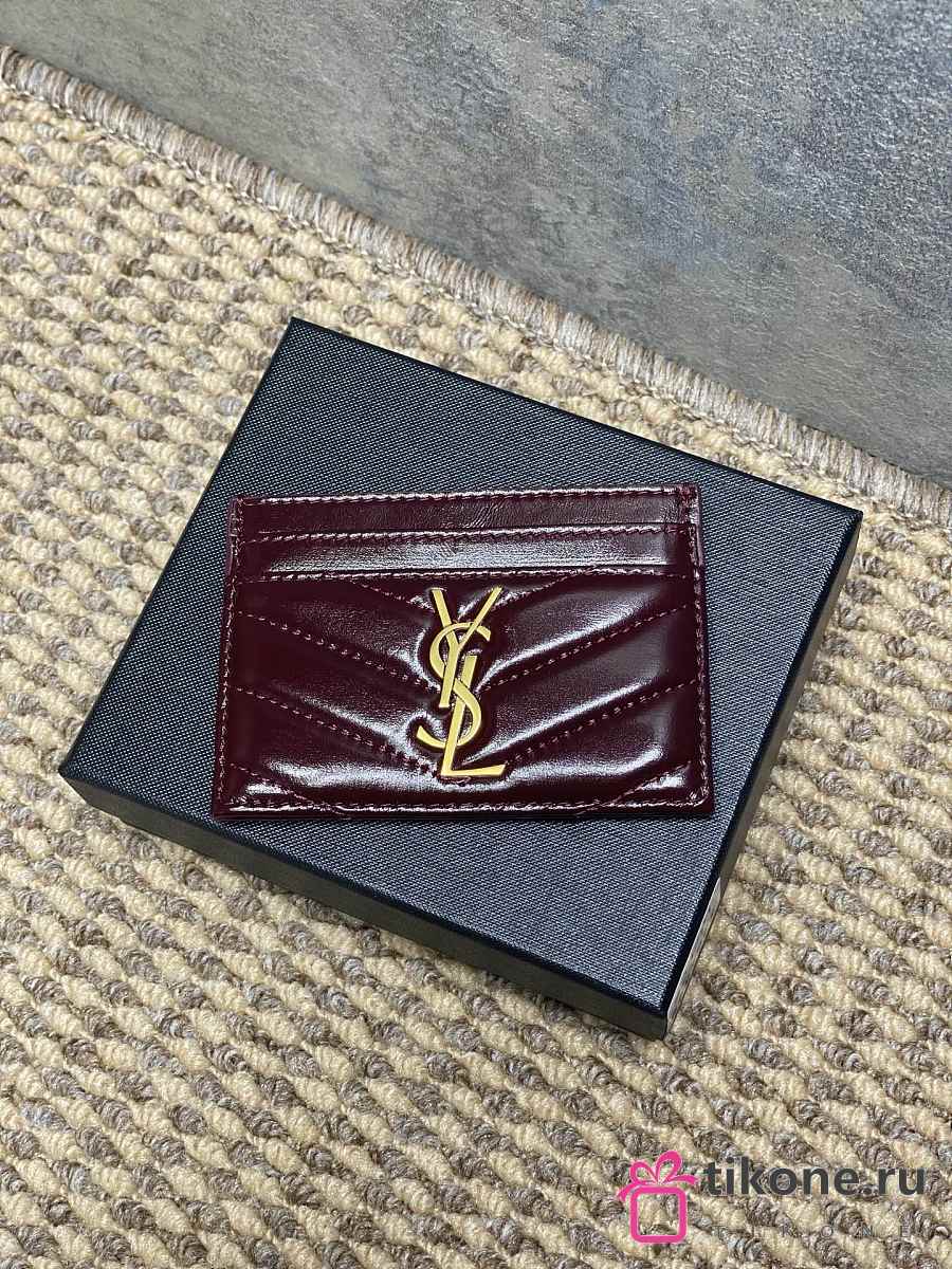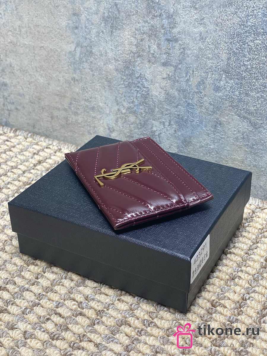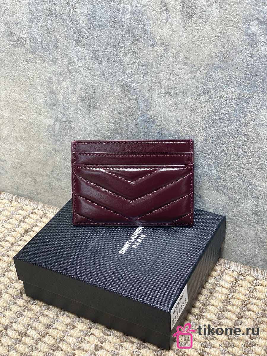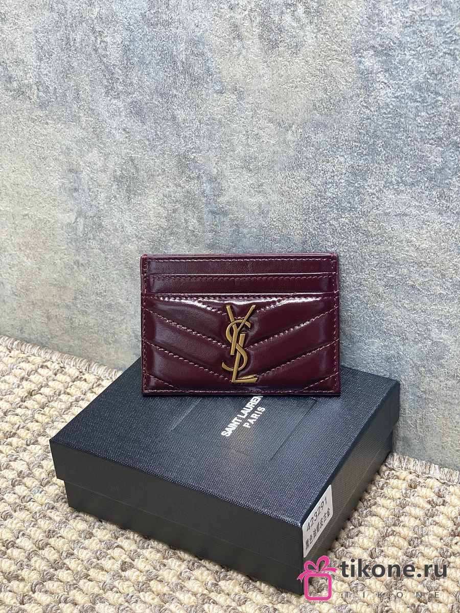 YSL Cassandre Matelasse Card Case In Lamskin Leather Burgundy - 10.5x7.5x0.5cm