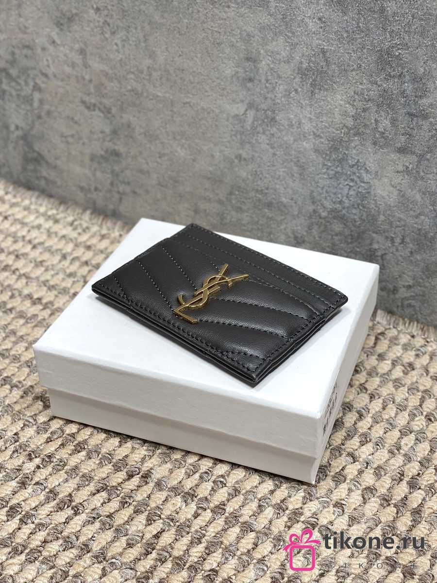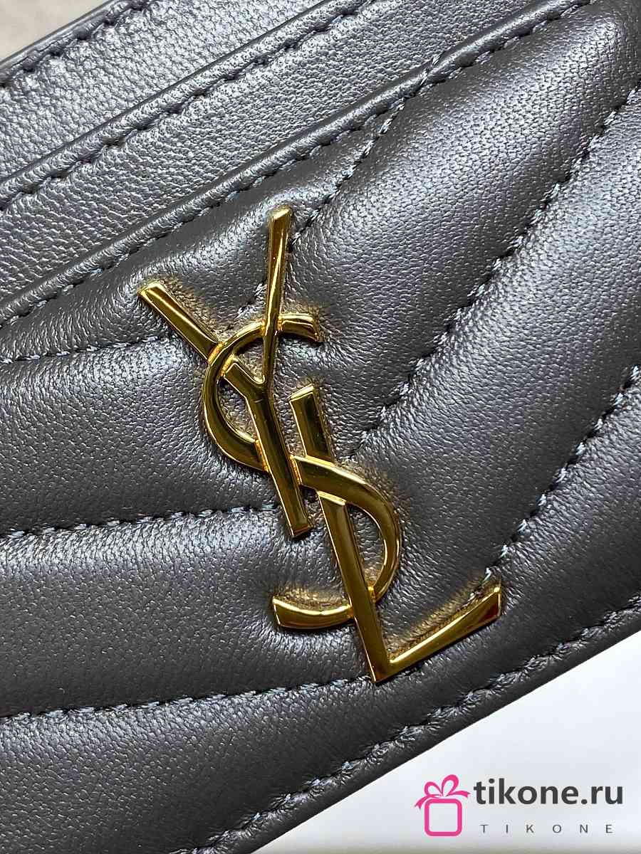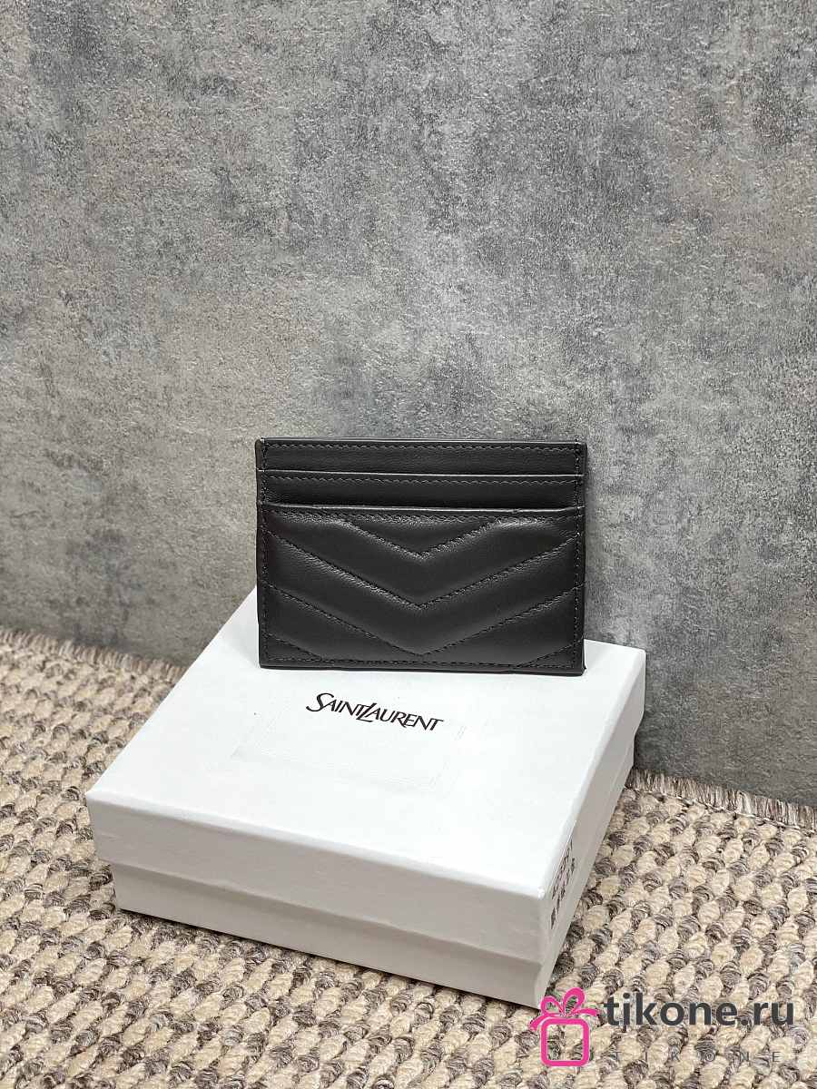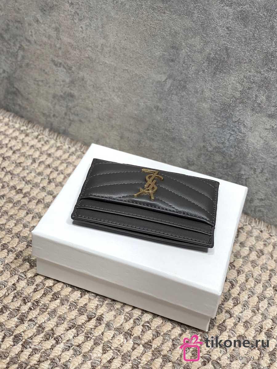 YSL Cassandre Matelasse Card Case In Lamskin Leather Gray - 10.5x7.5x0.5cm