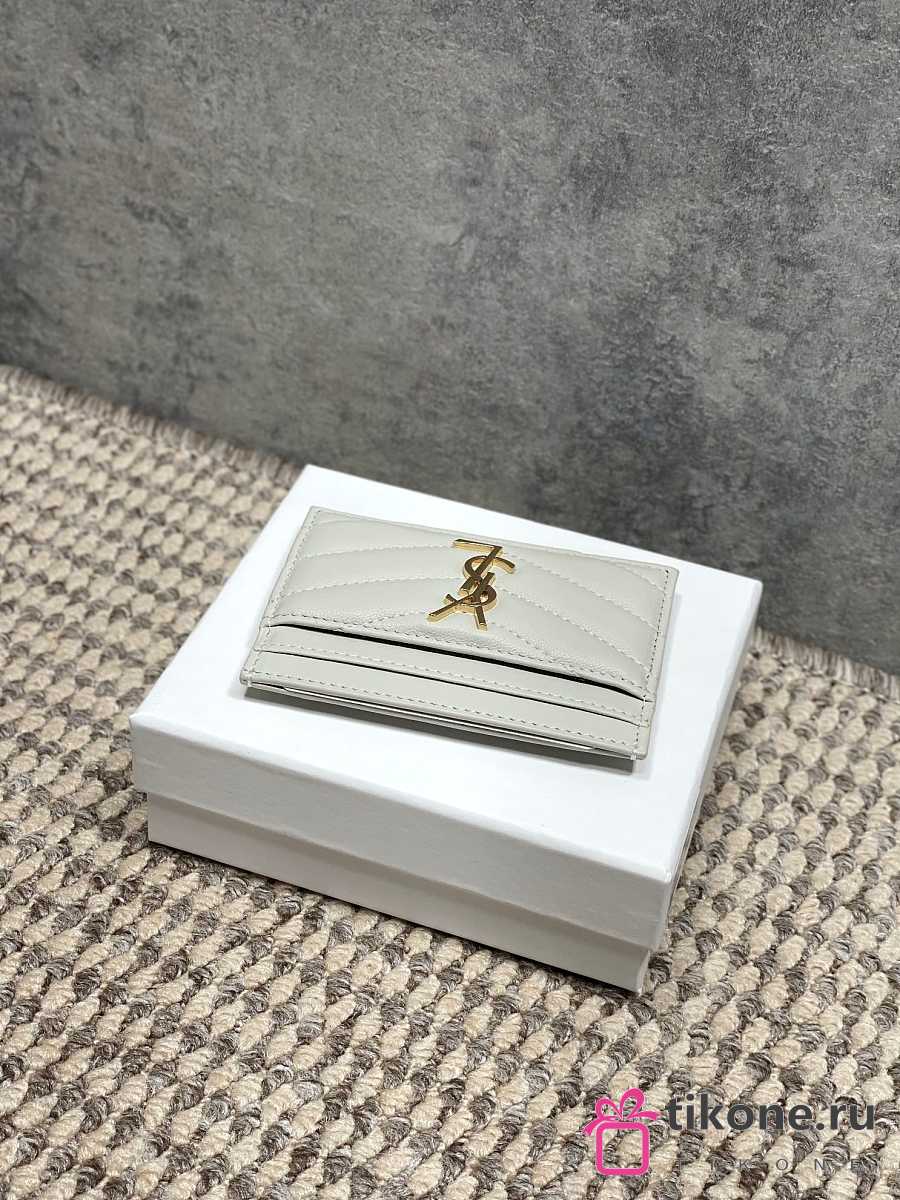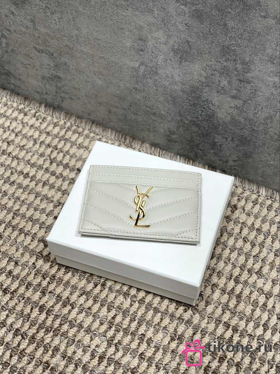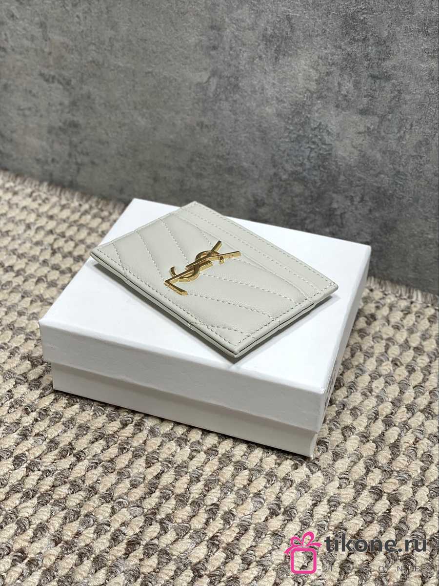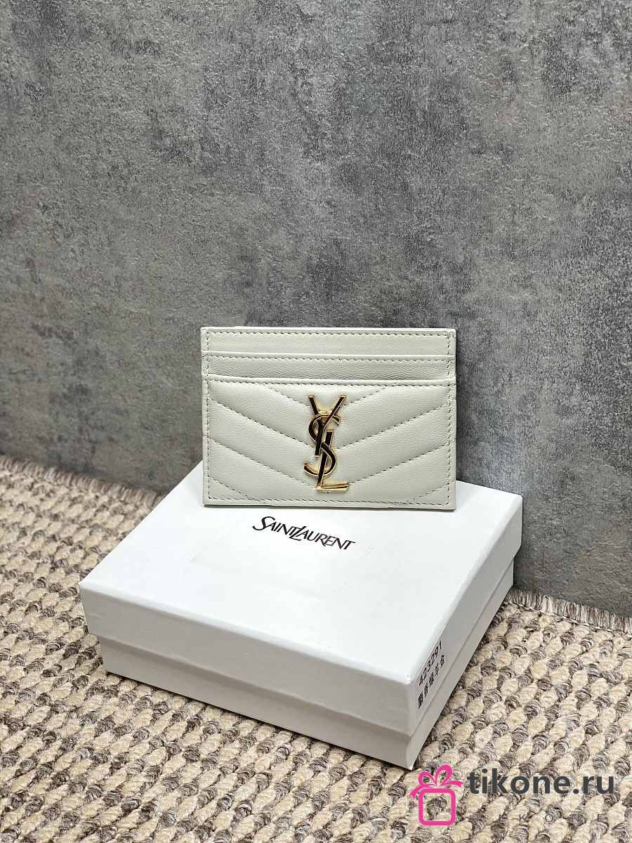 YSL Cassandre Matelasse Card Case In Lamskin Leather White - 10.5x7.5x0.5cm