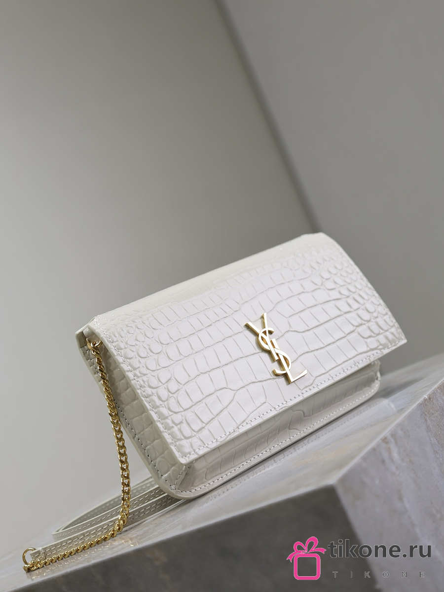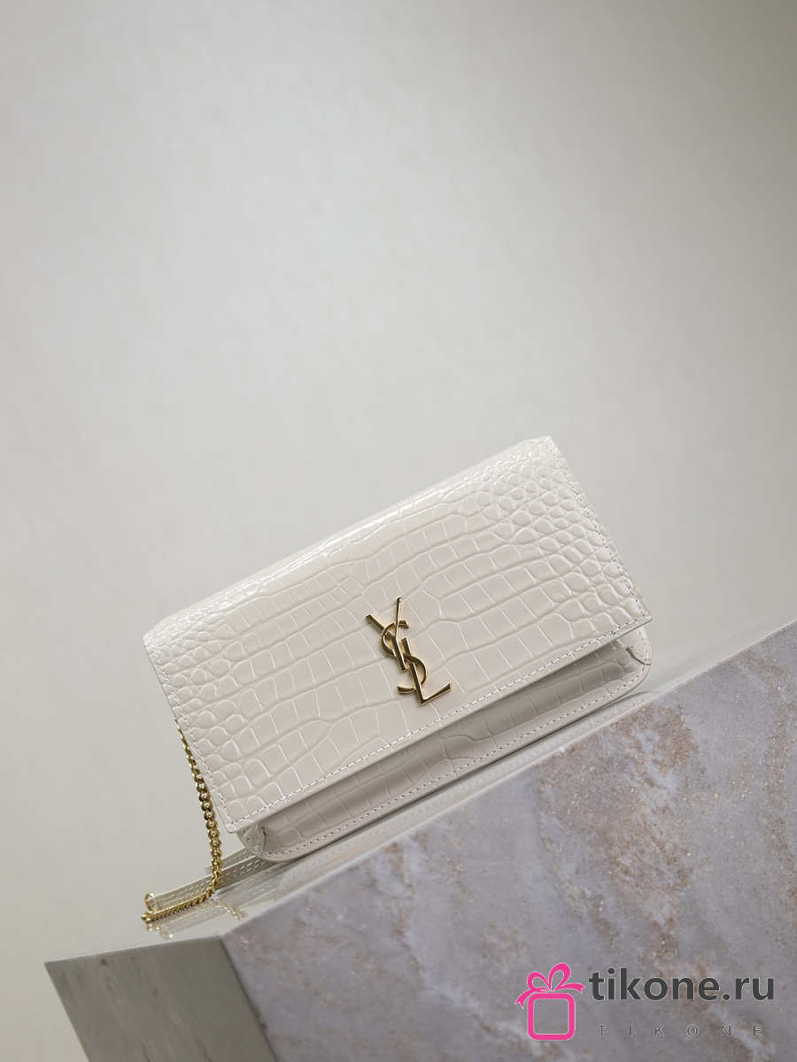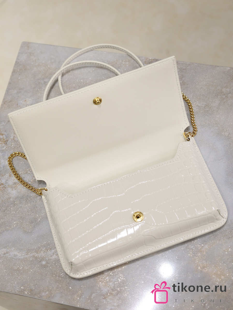 YSL Cassandre Phone Holder In Shiny Crocodile-Embossed Leather In White - 18.5x11x2.5cm