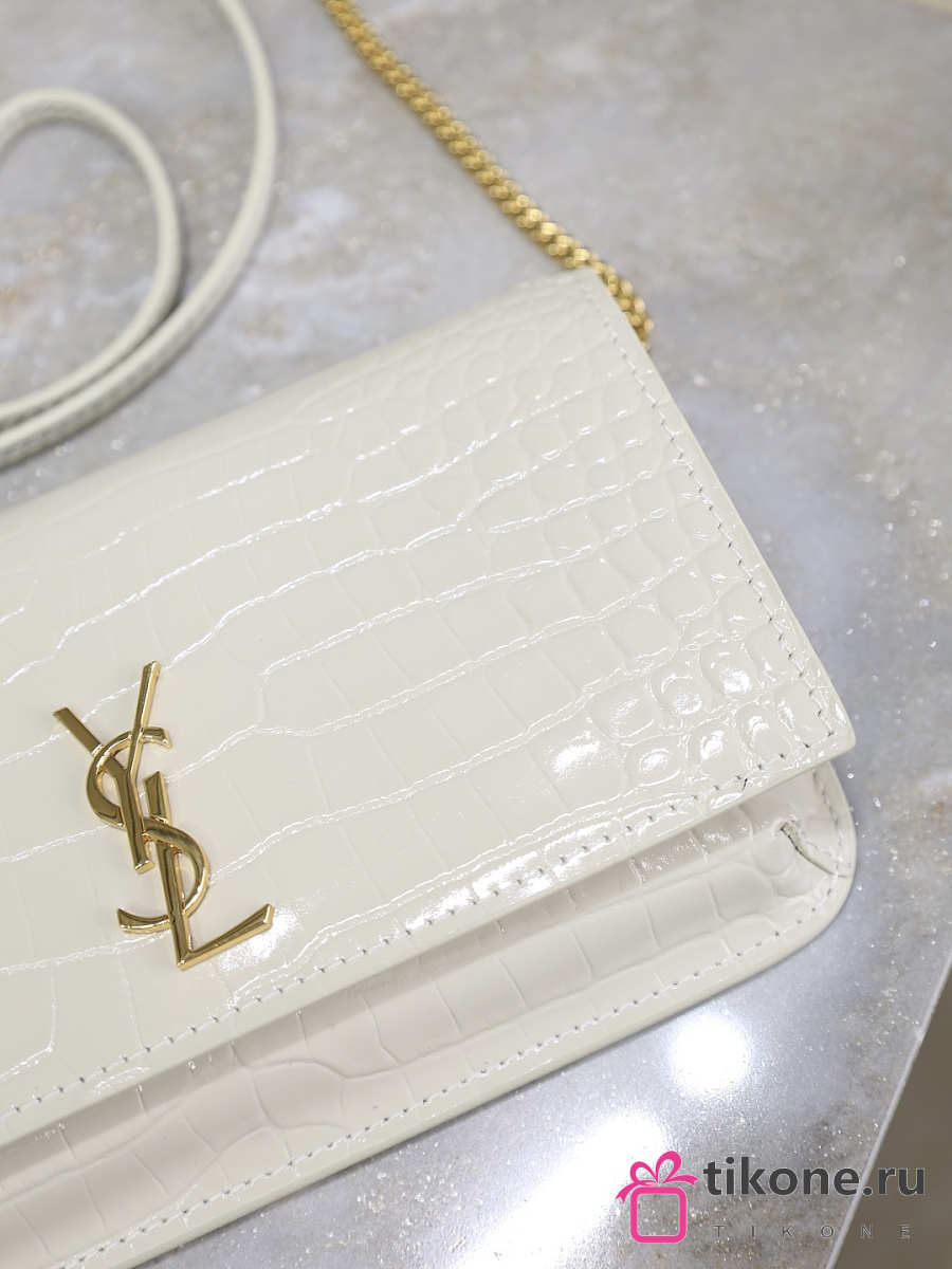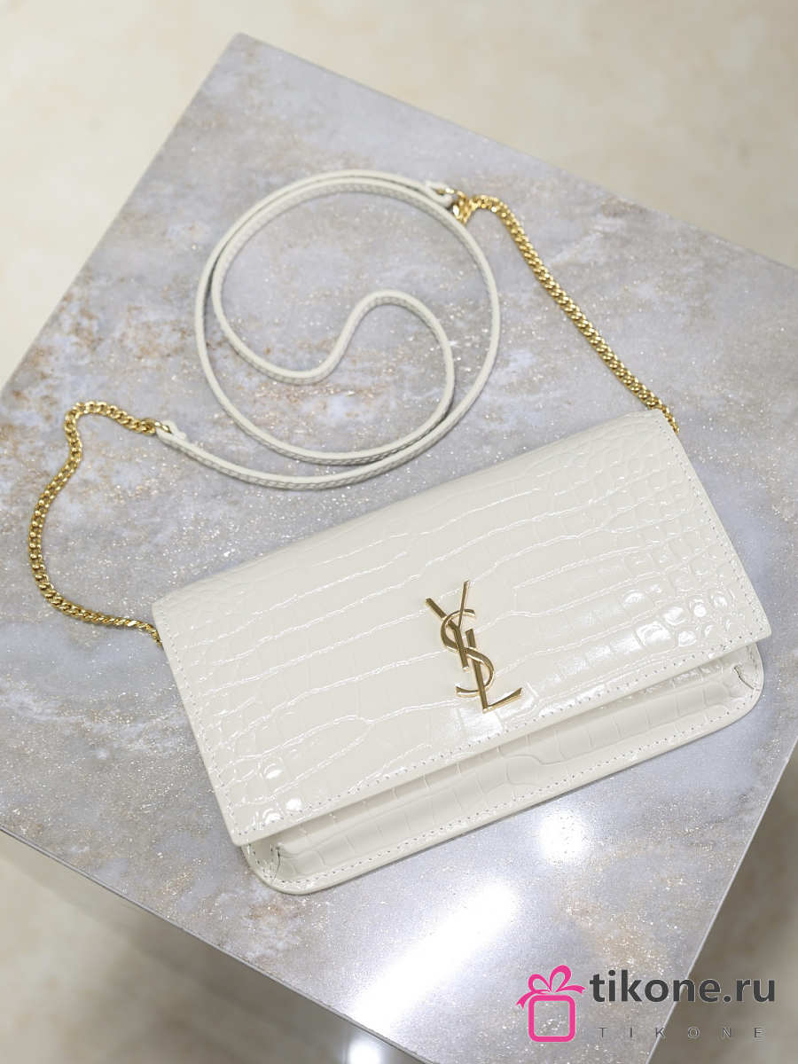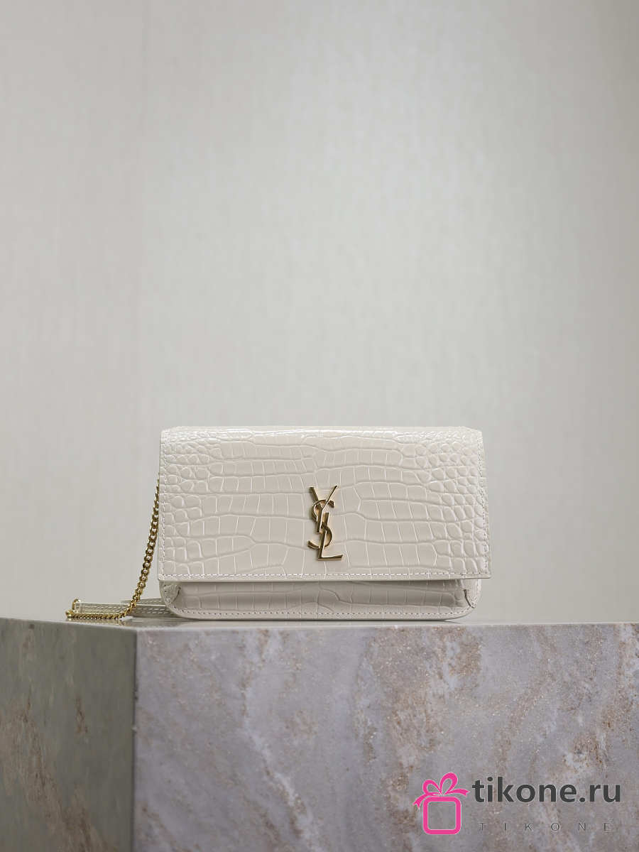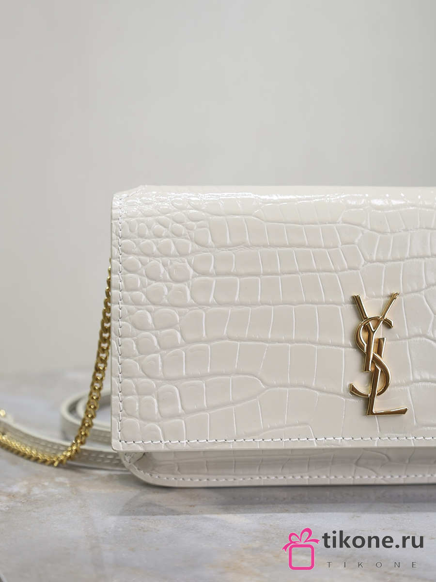 YSL Cassandre Phone Holder In Shiny Crocodile-Embossed Leather In White - 18.5x11x2.5cm