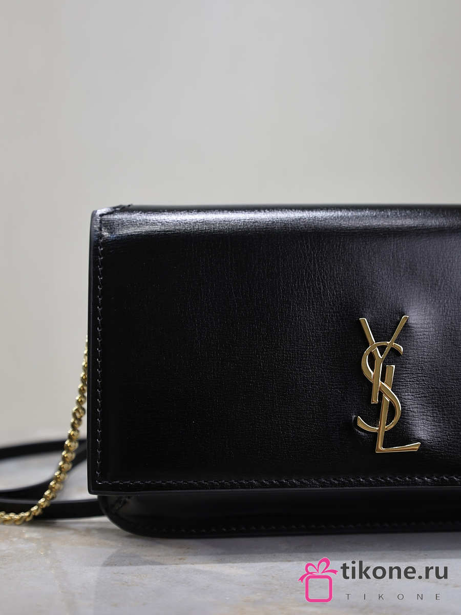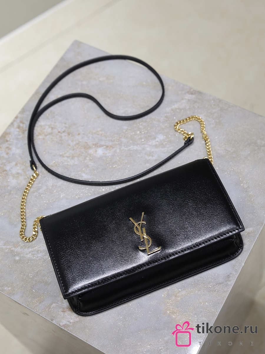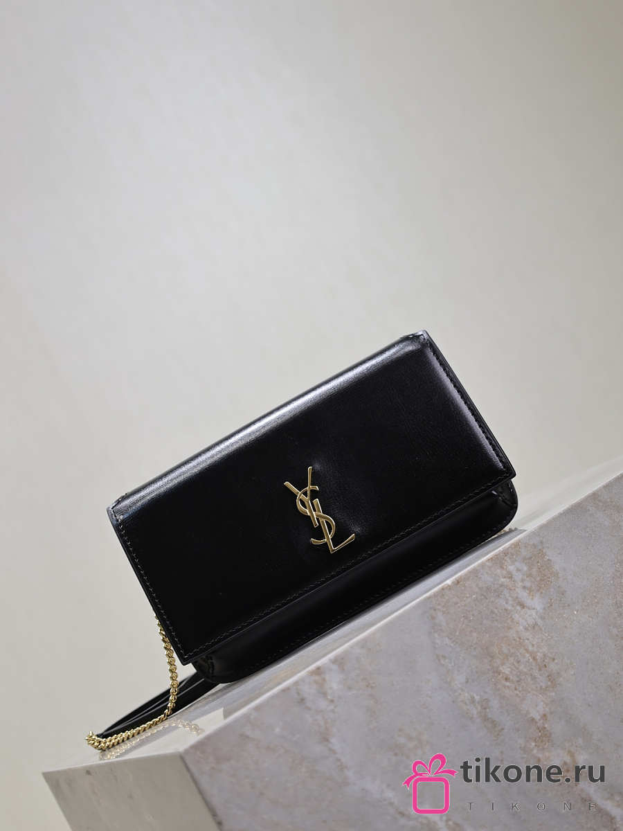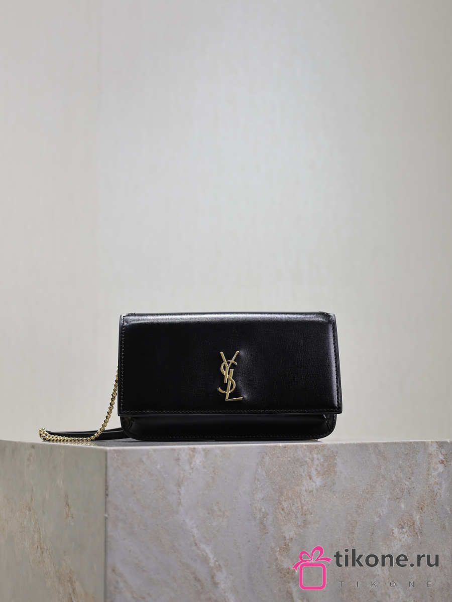 YSL Cassandre Phone Holder In Smooth Leather In Black - 18.5x11x2.5cm