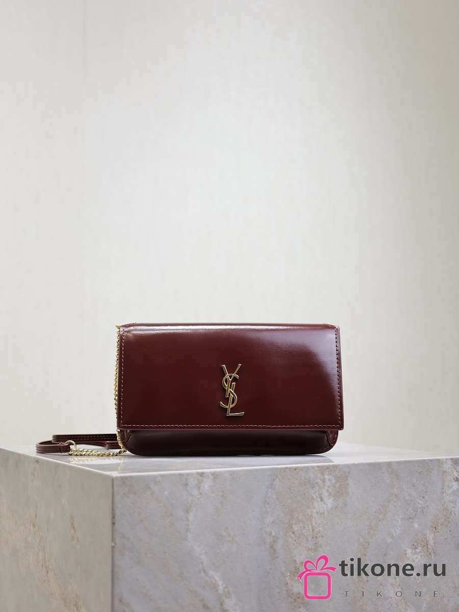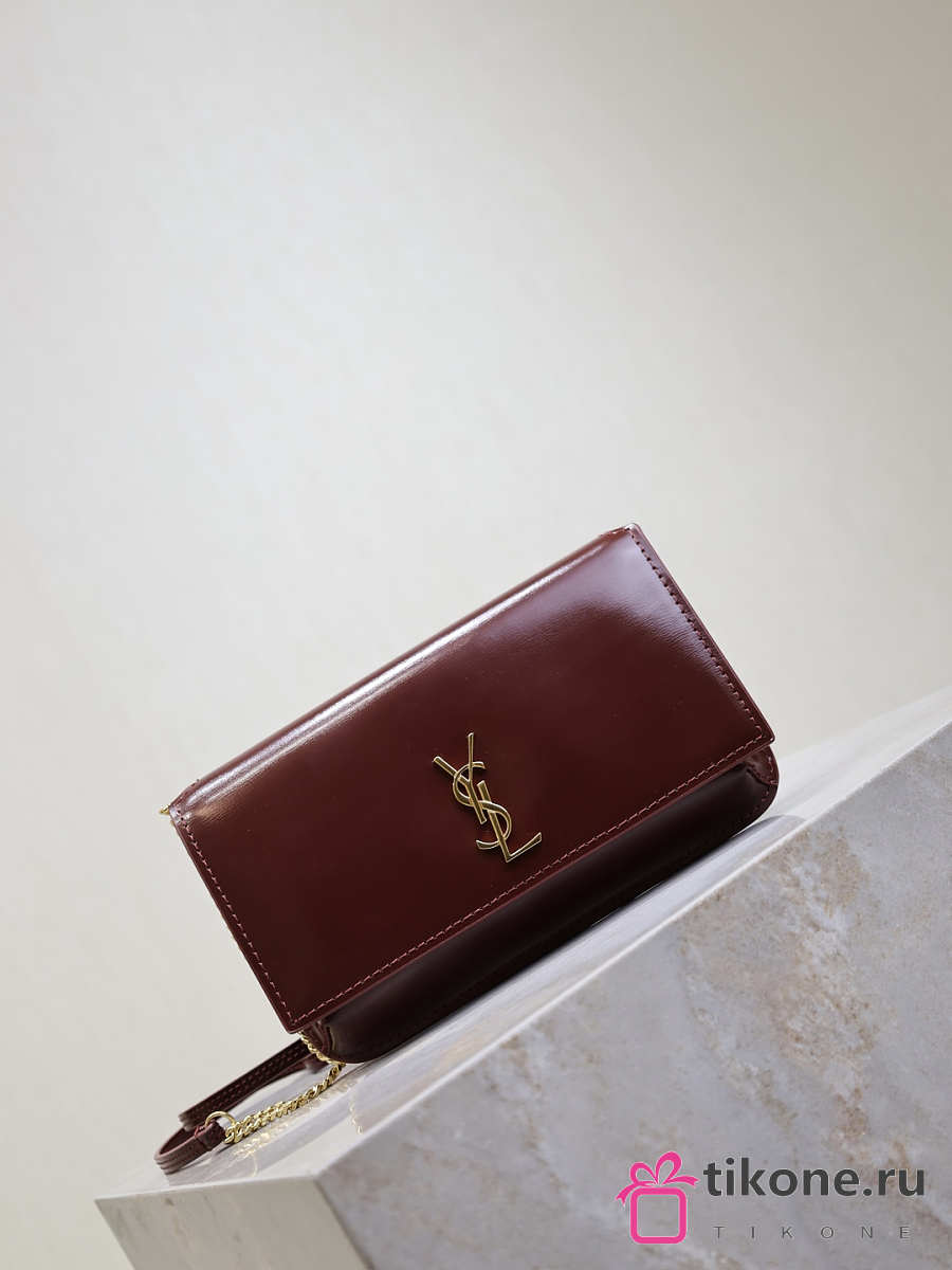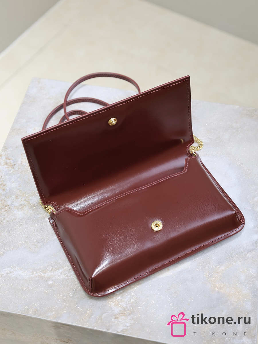 YSL Cassandre Phone Holder In Smooth Leather In Burgundy - 18.5x11x2.5cm