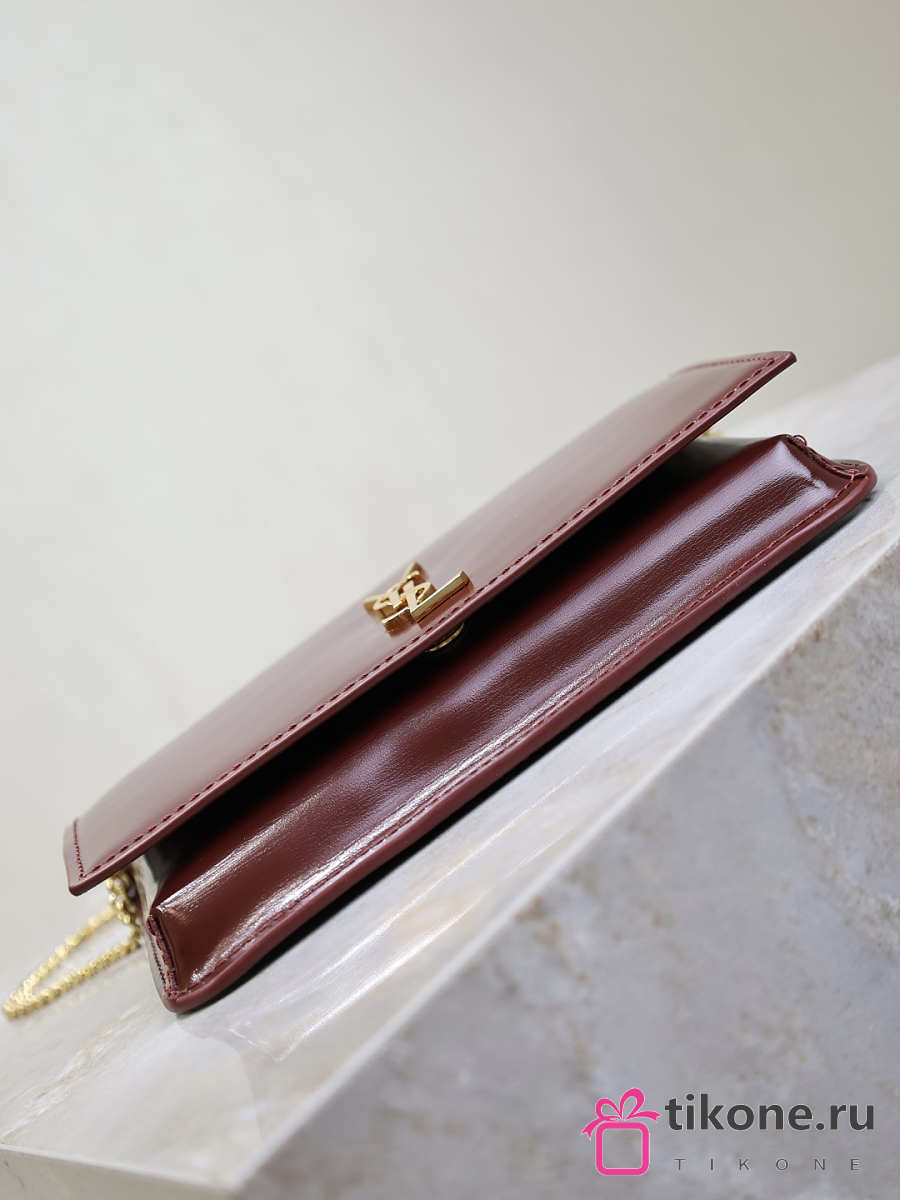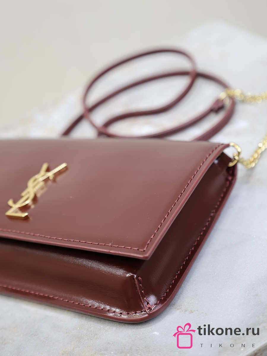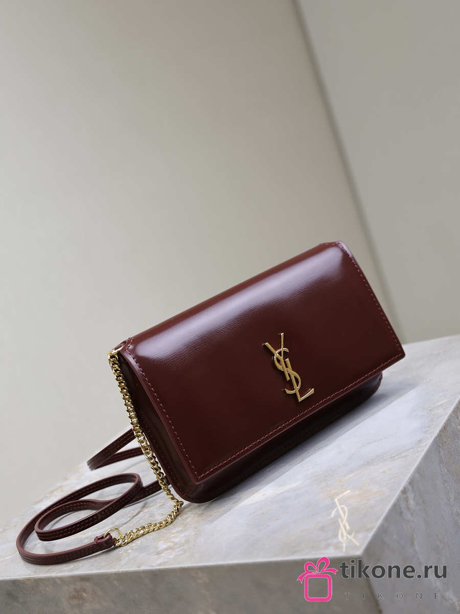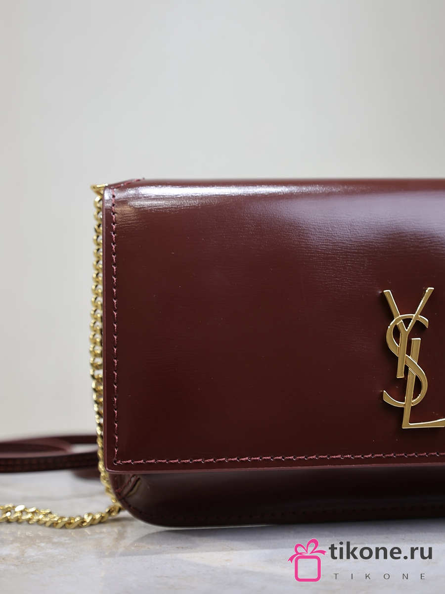 YSL Cassandre Phone Holder In Smooth Leather In Burgundy - 18.5x11x2.5cm
