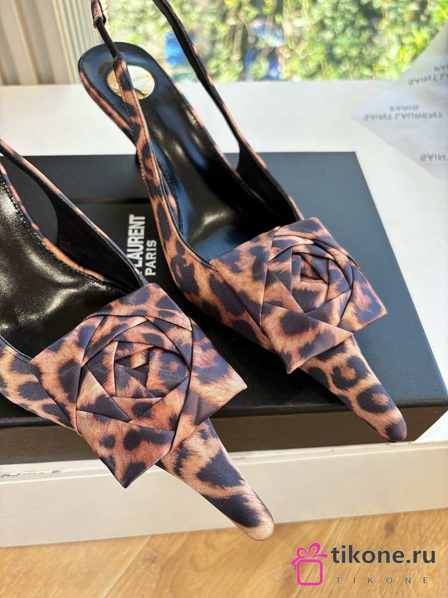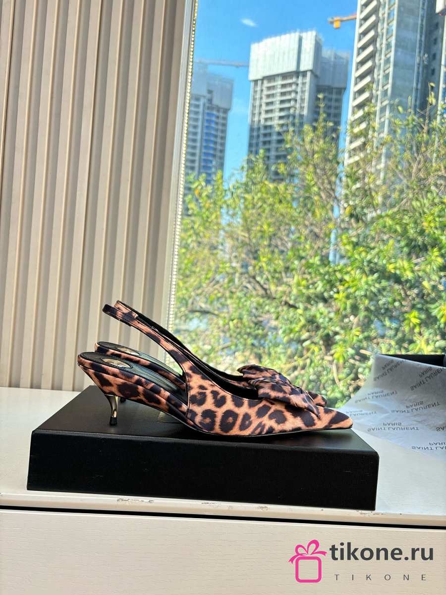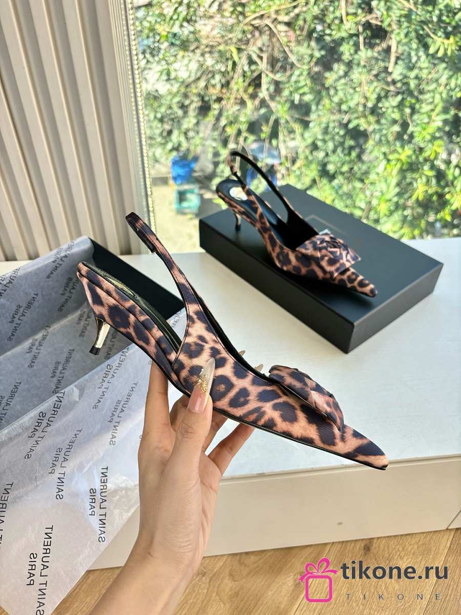 YSL Dakota Slingback Pumps In Satin Crepe In Leopard