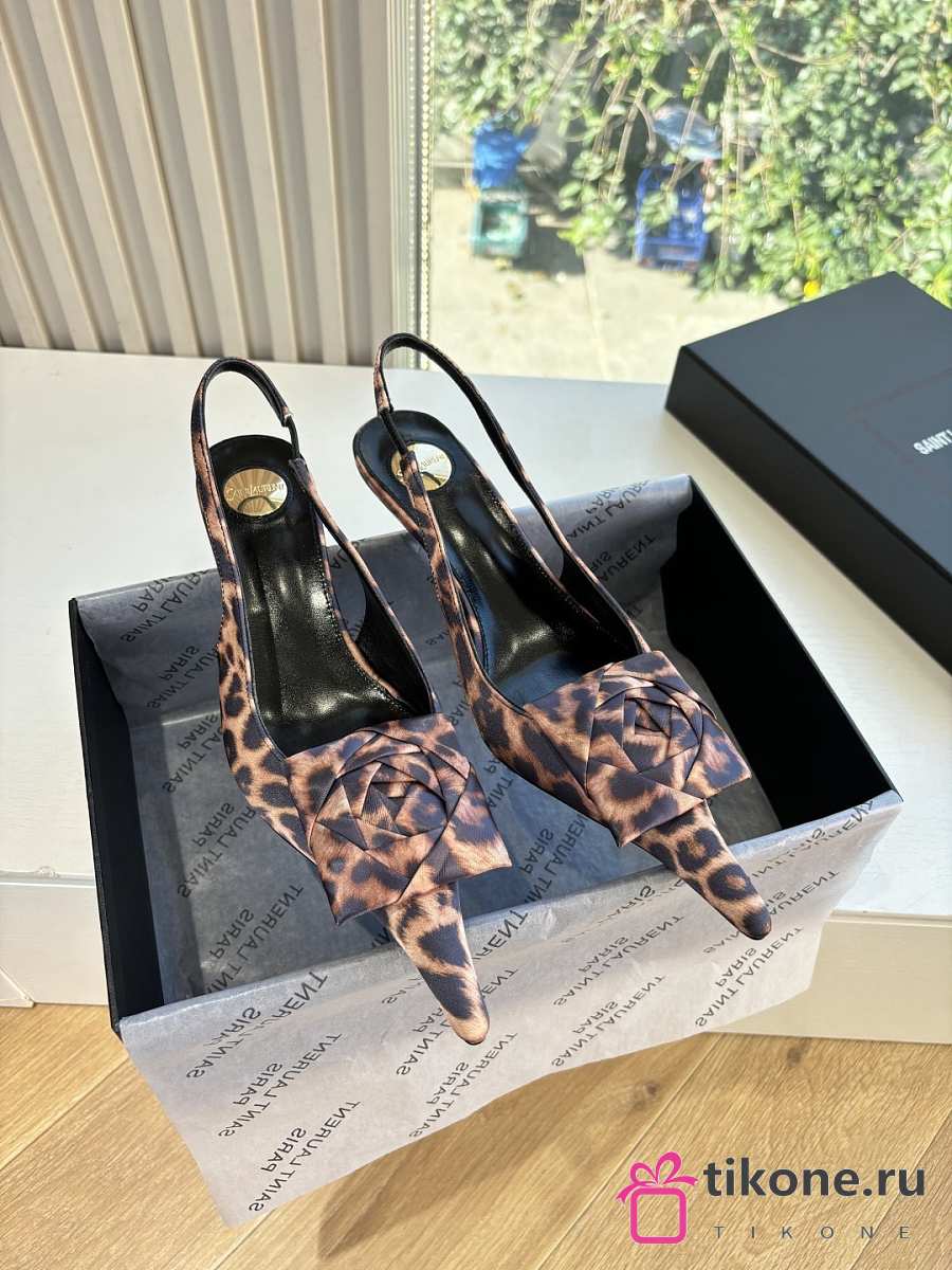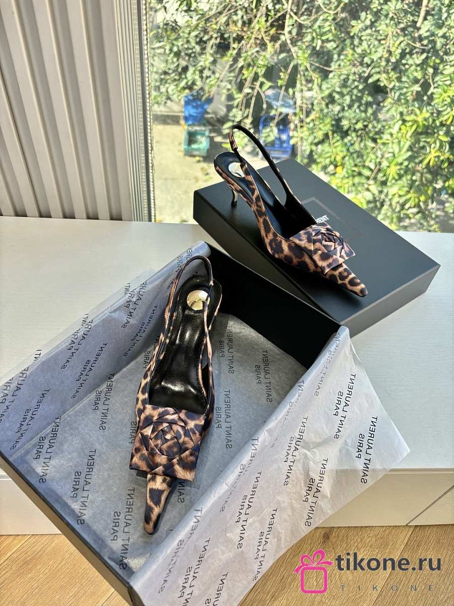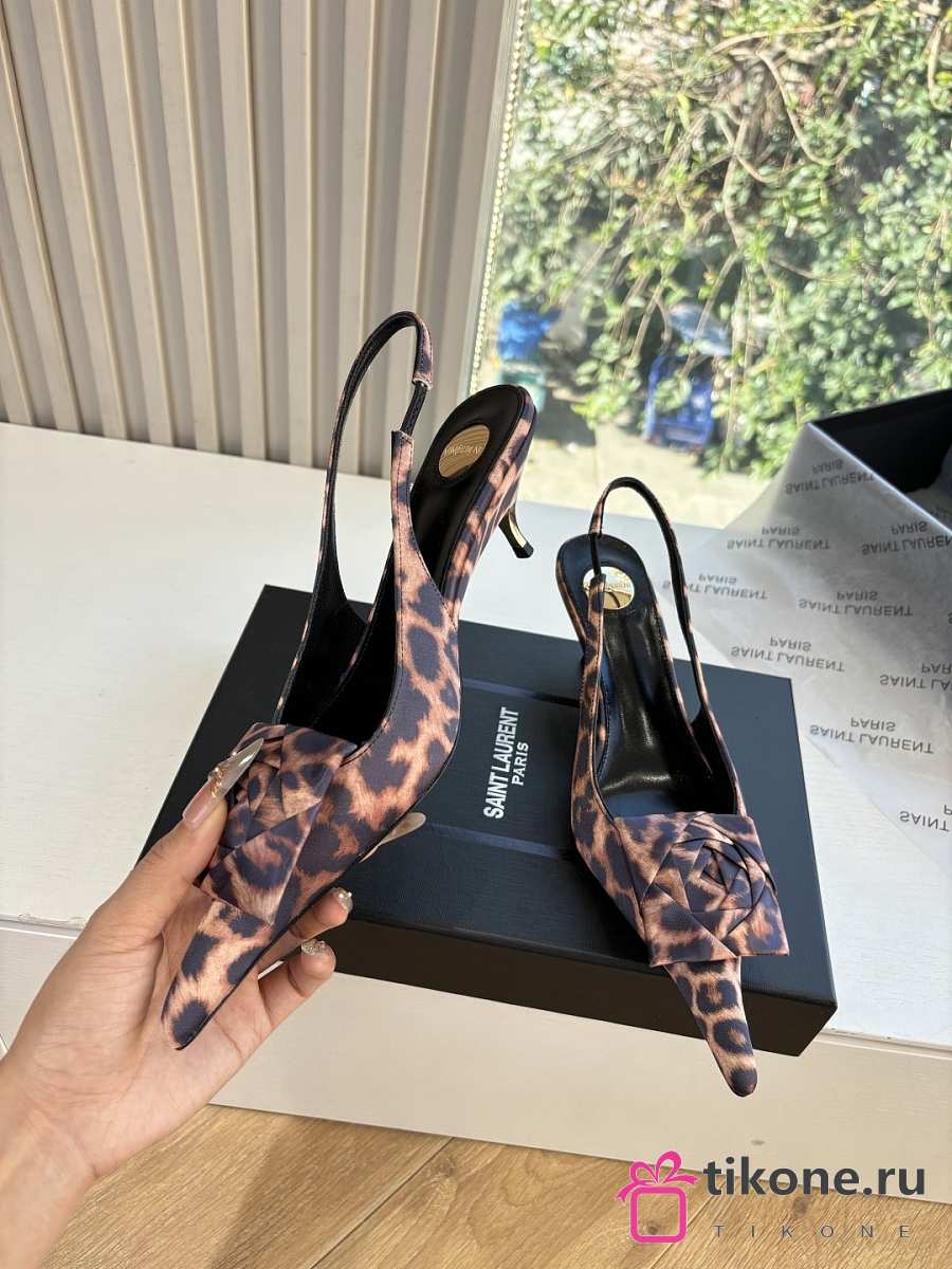 YSL Dakota Slingback Pumps In Satin Crepe In Leopard