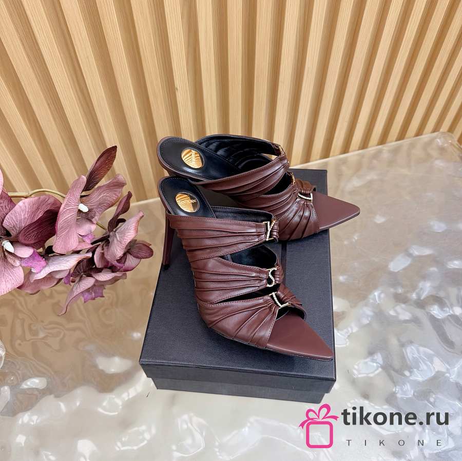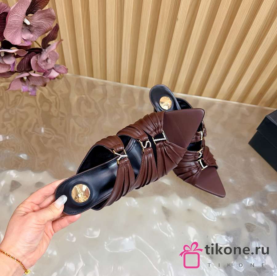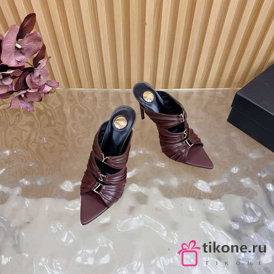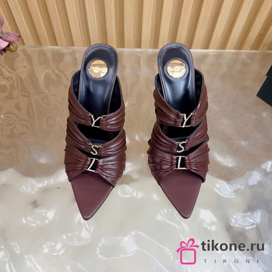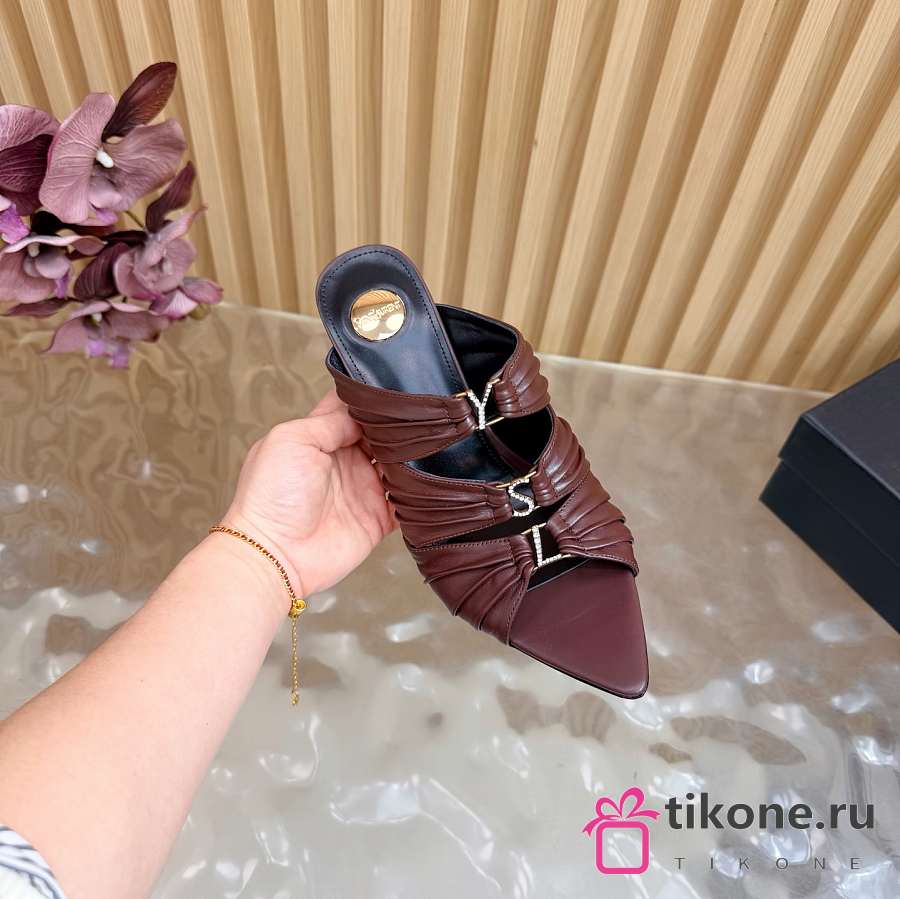 YSL Emilie Mules In Smooth Leather In Brown 11cm