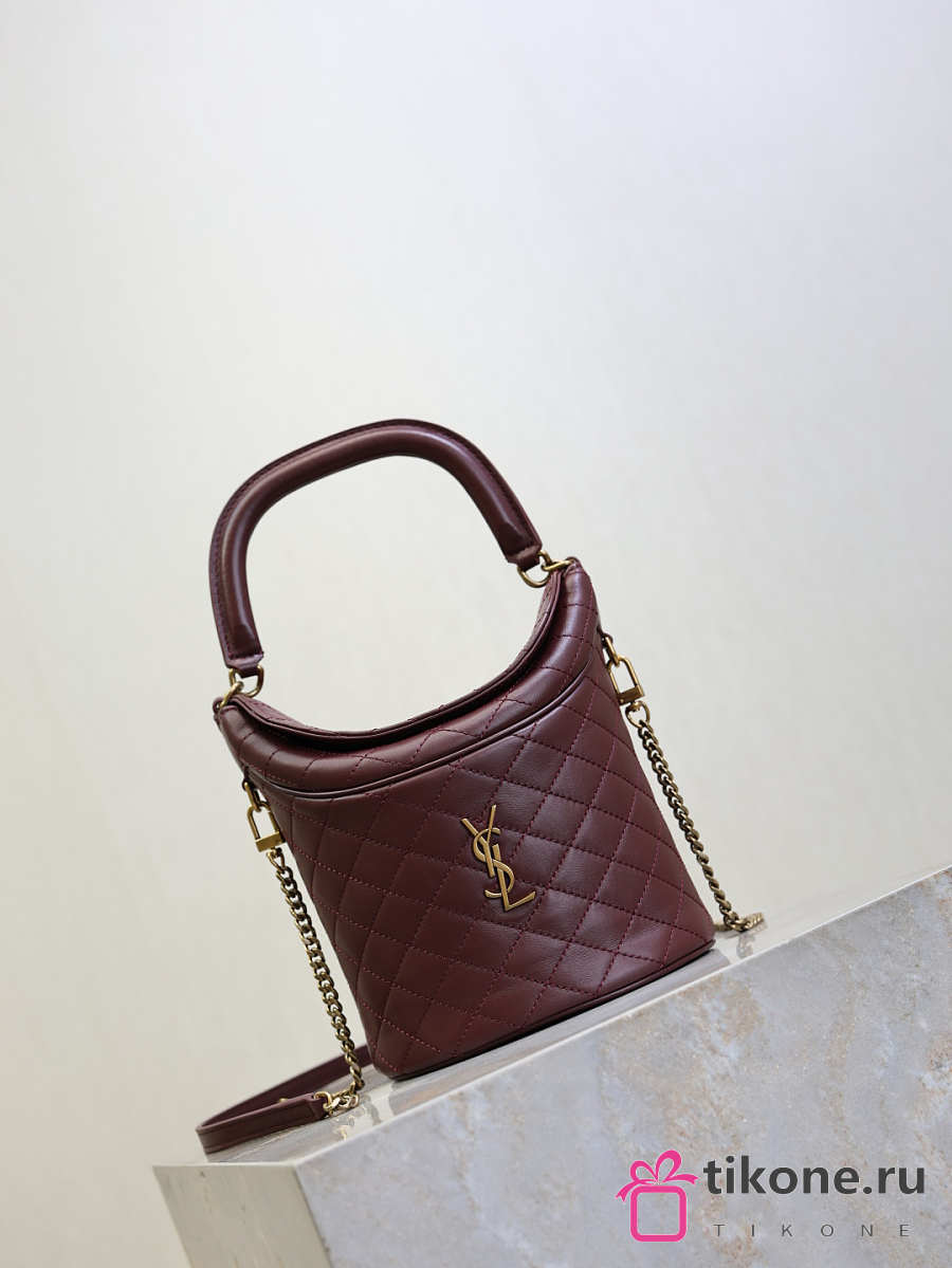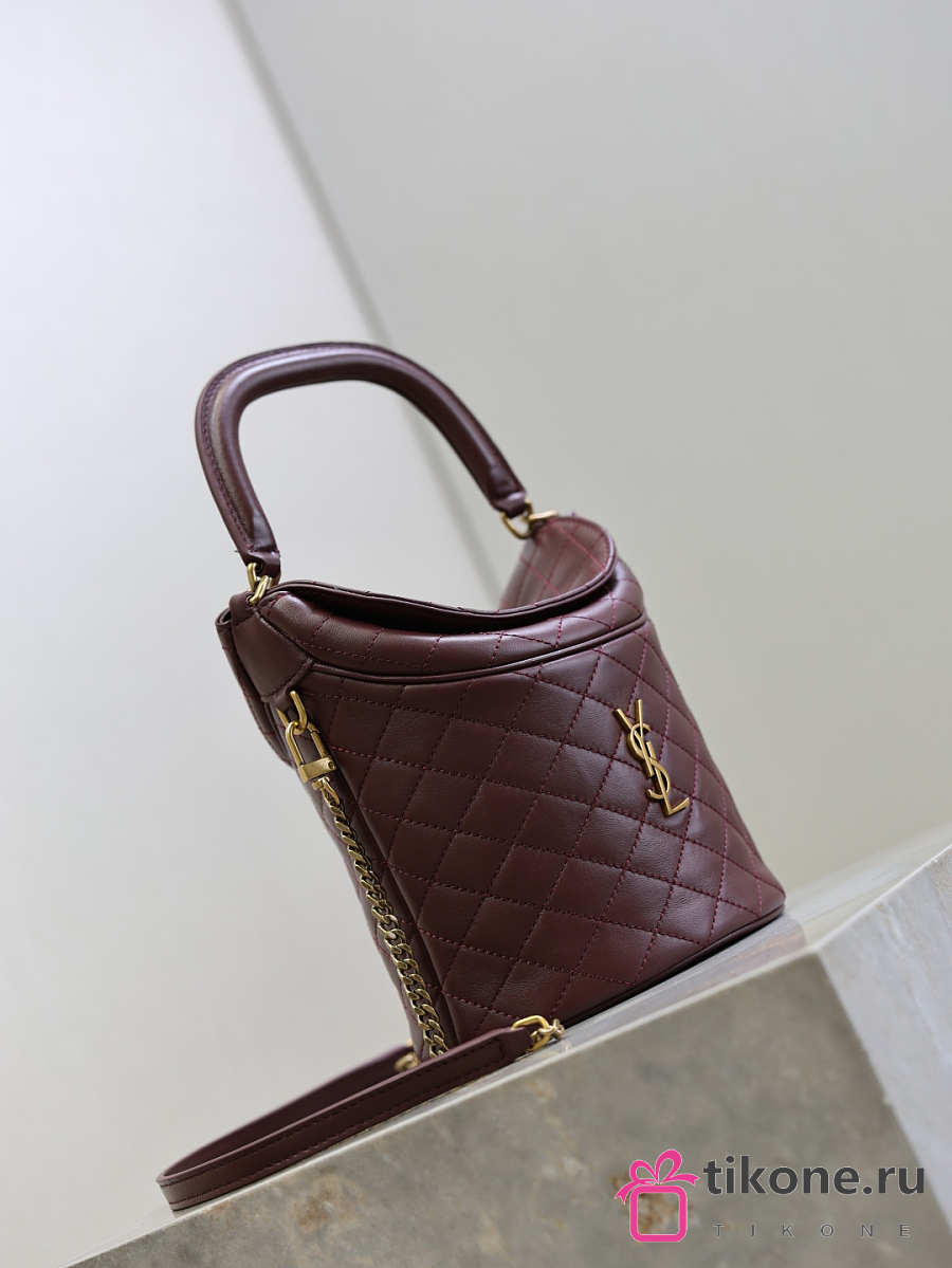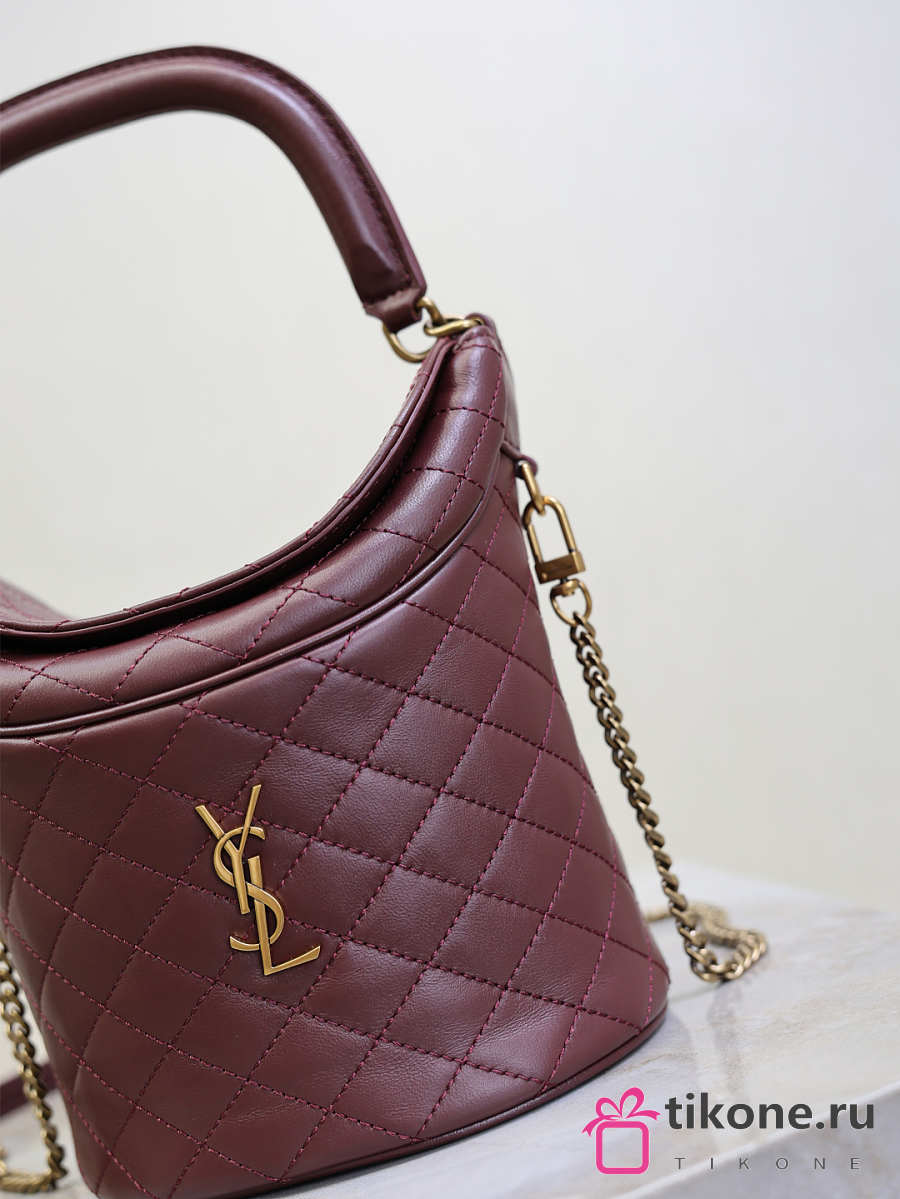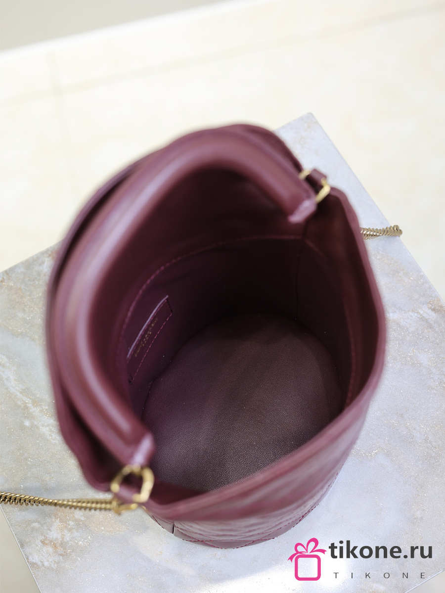 YSL Gaby Bucket Bag In Lambskin Burgundy - 19x17x15cm