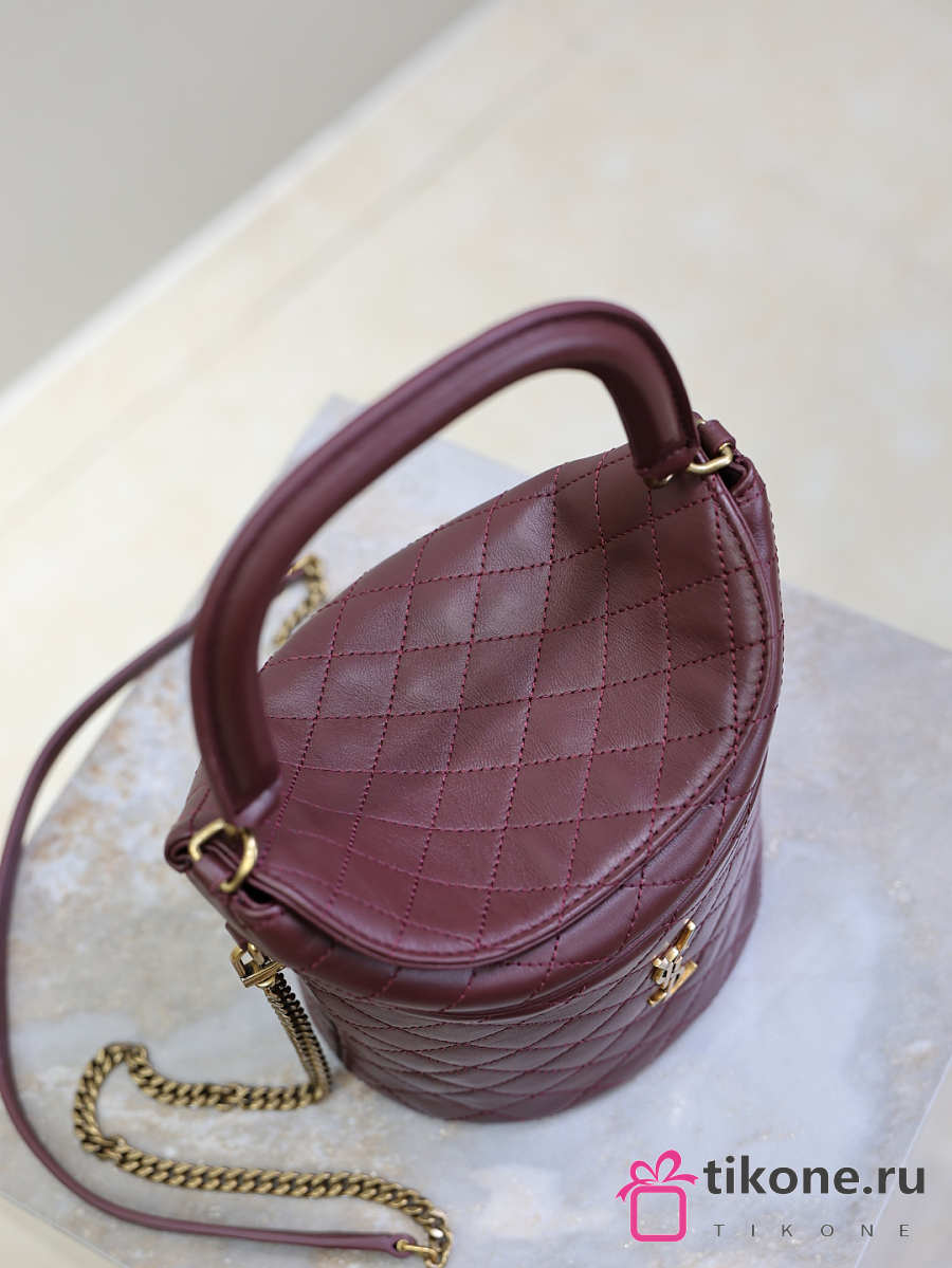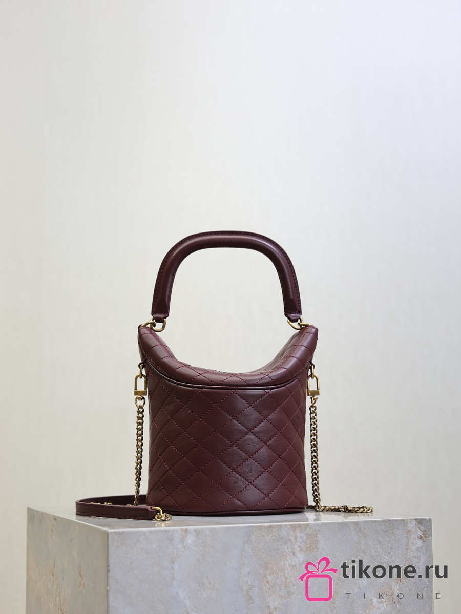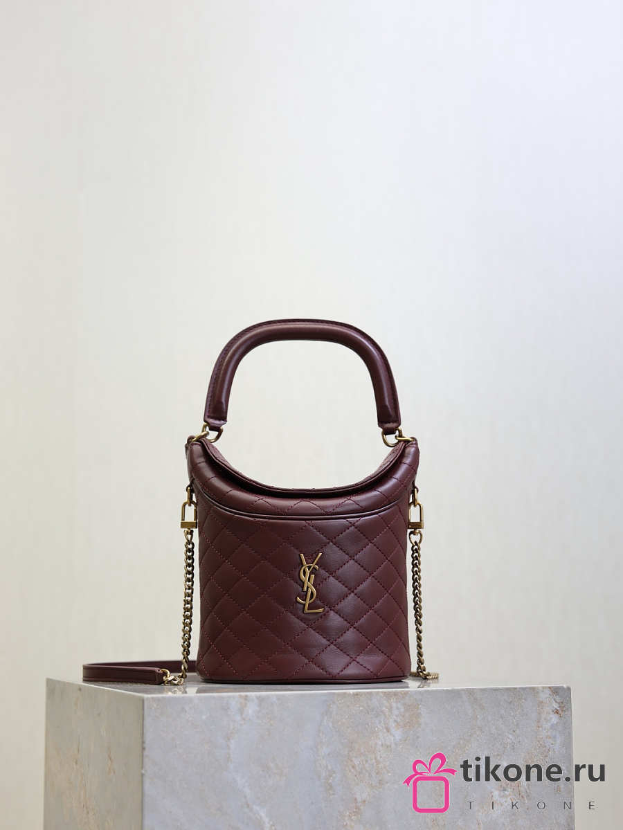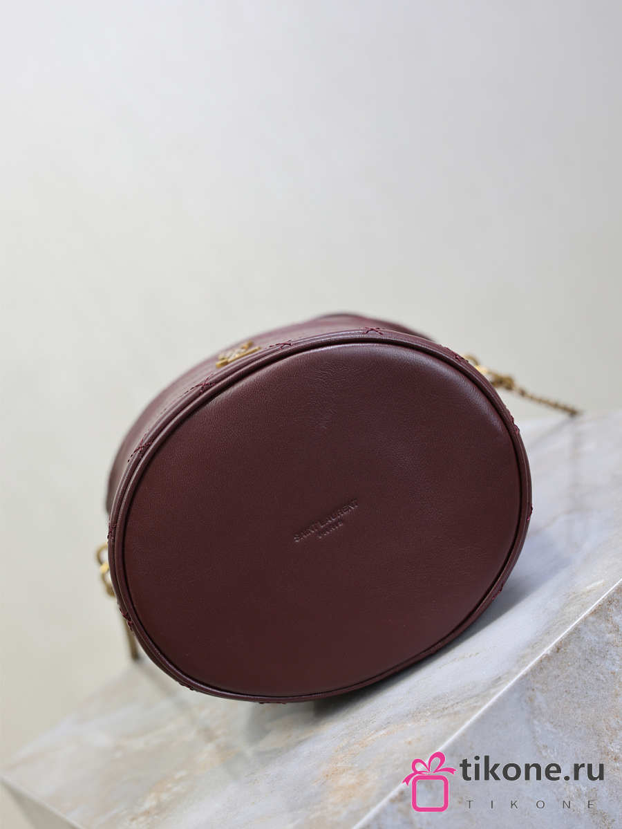 YSL Gaby Bucket Bag In Lambskin Burgundy - 19x17x15cm