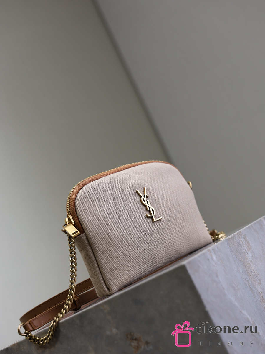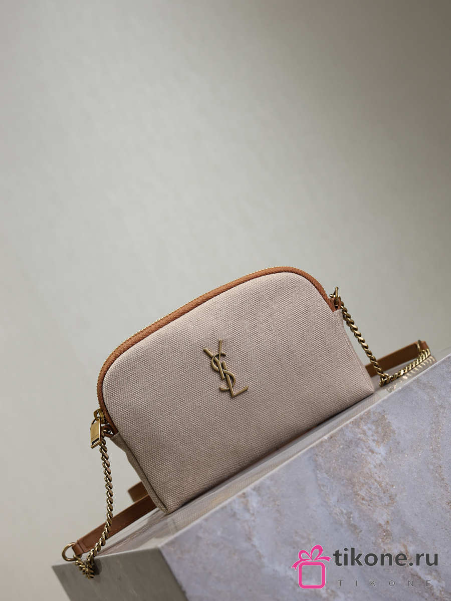 YSL Gaby Zipped Pouch In Canvas Natural - 19x12x3cm