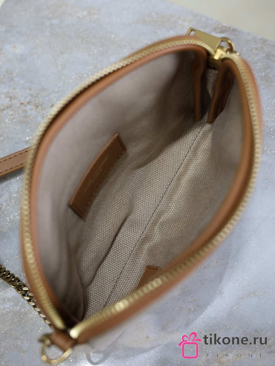 YSL Uptown Patent Leather Wallet On Chain Brown - 19x12x4cm