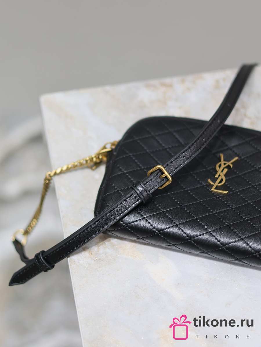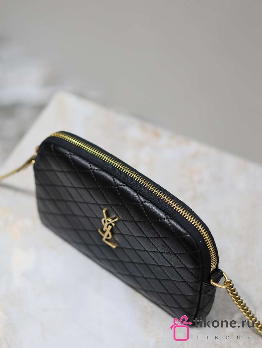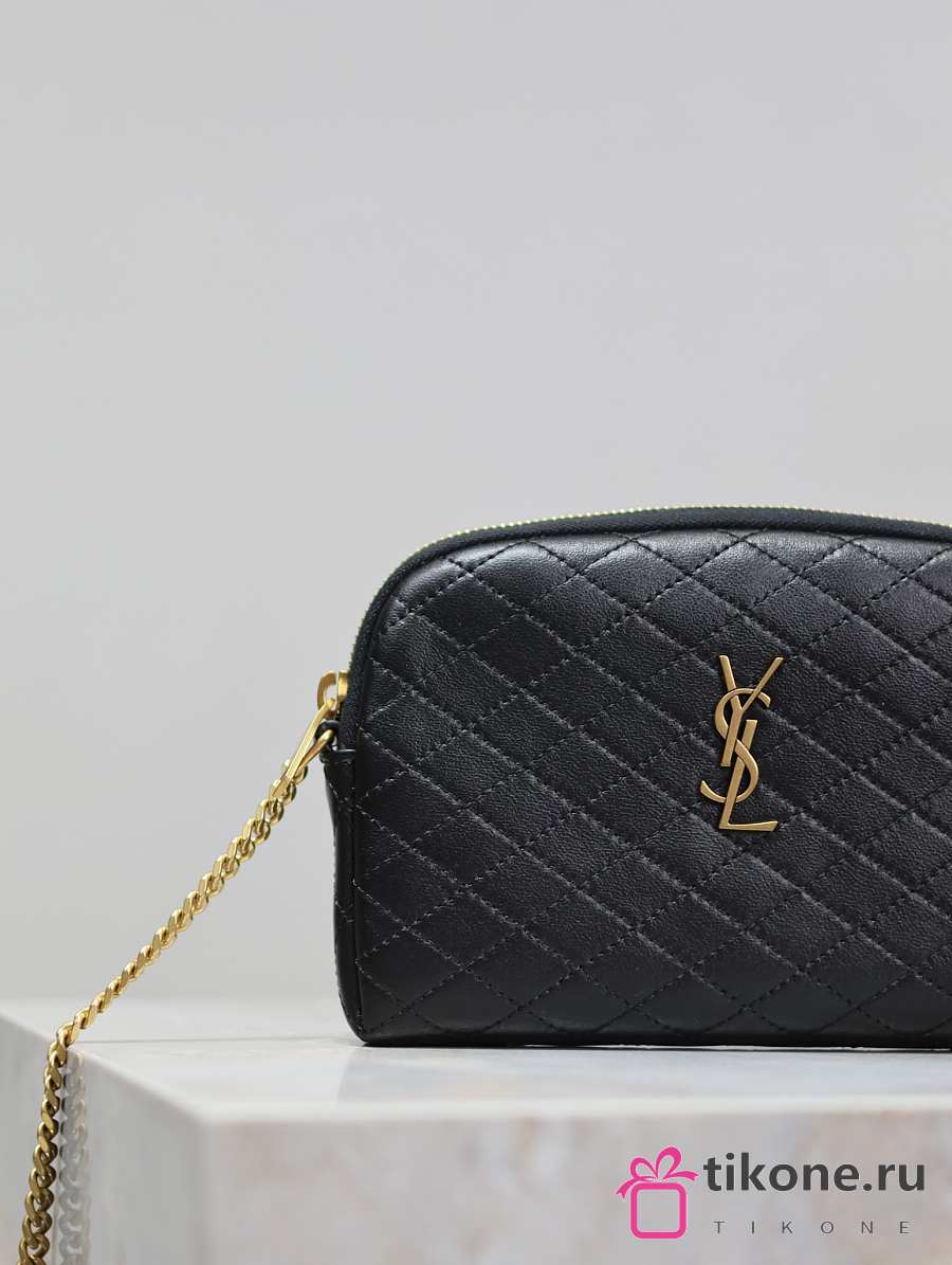 YSL Gaby Zipped Pouch In Quilted Lamskin Black - 19x12x3cm