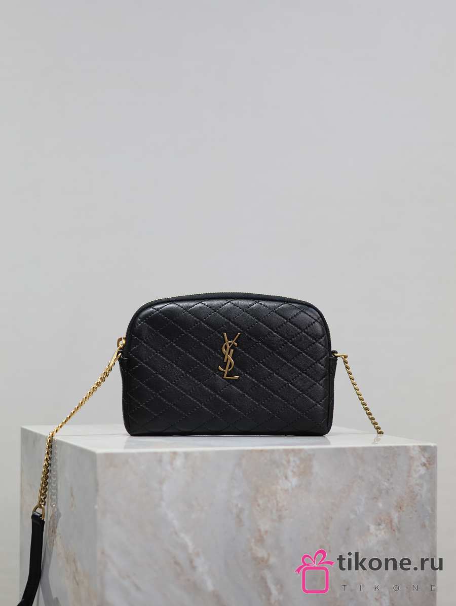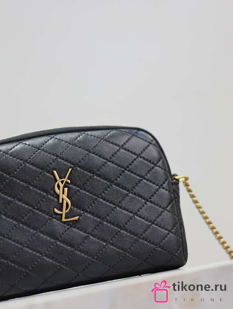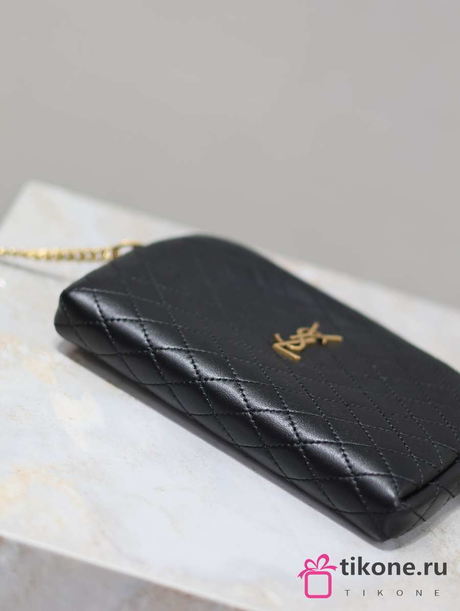 YSL Gaby Zipped Pouch In Quilted Lamskin Black - 19x12x3cm
