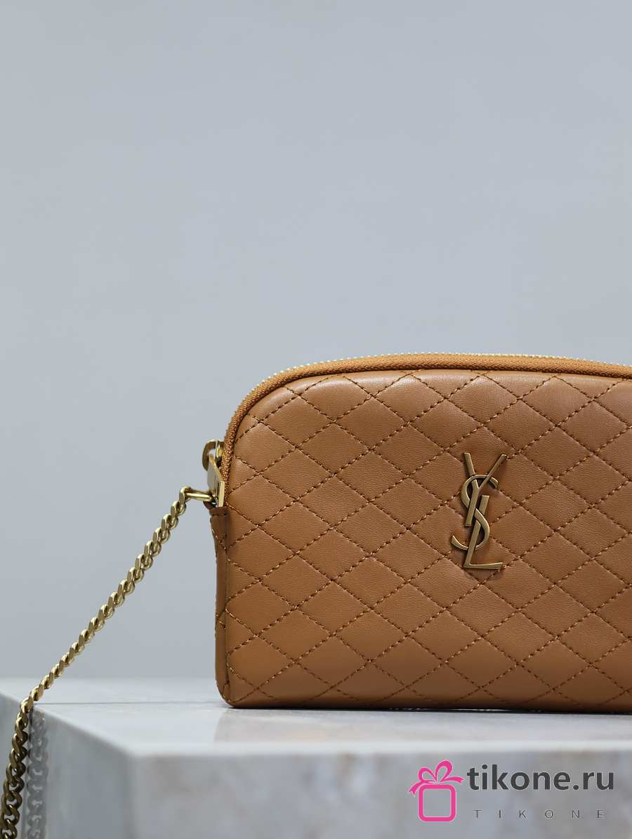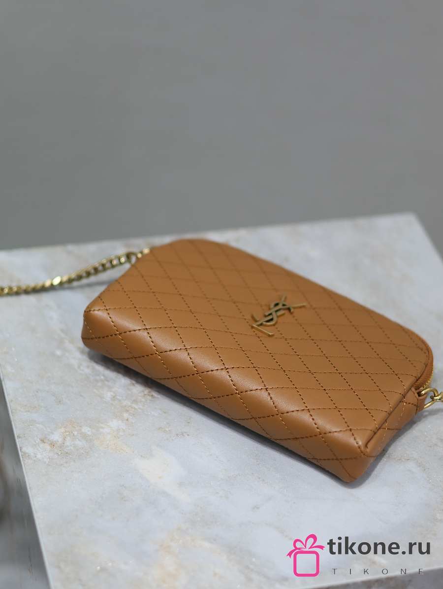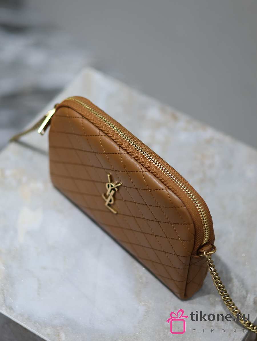 YSL Gaby Zipped Pouch In Quilted Lamskin Brown - 19x12x3cm