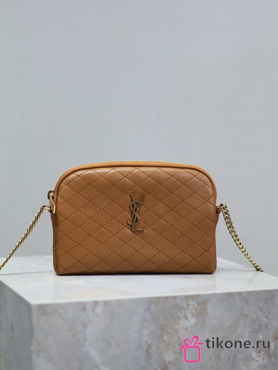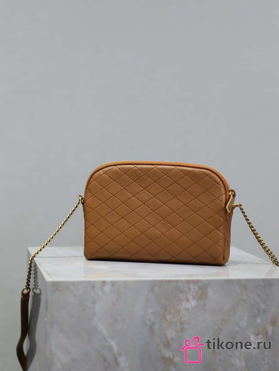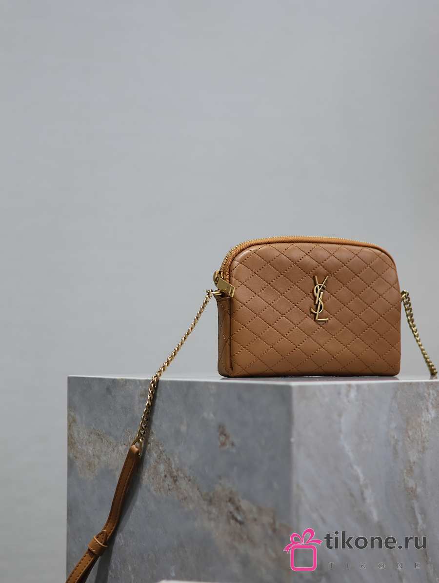 YSL Gaby Zipped Pouch In Quilted Lamskin Brown - 19x12x3cm