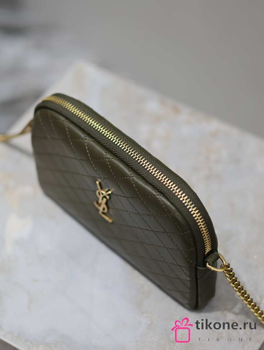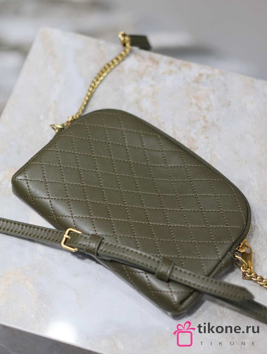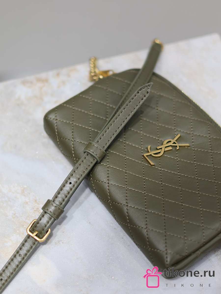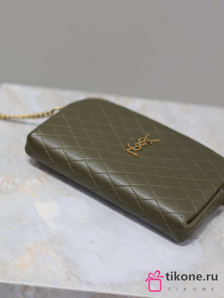 YSL Gaby Zipped Pouch In Quilted Lamskin Green - 19x12x3cm