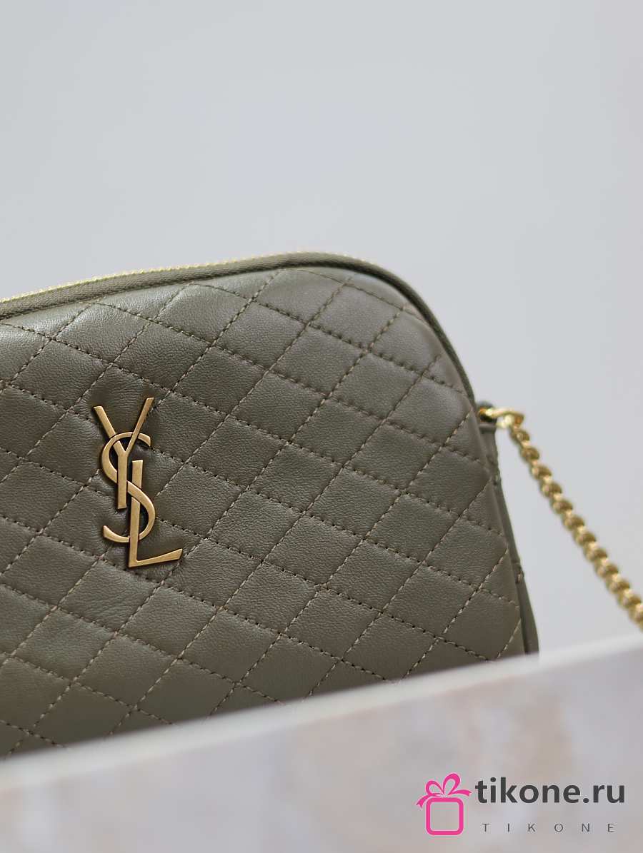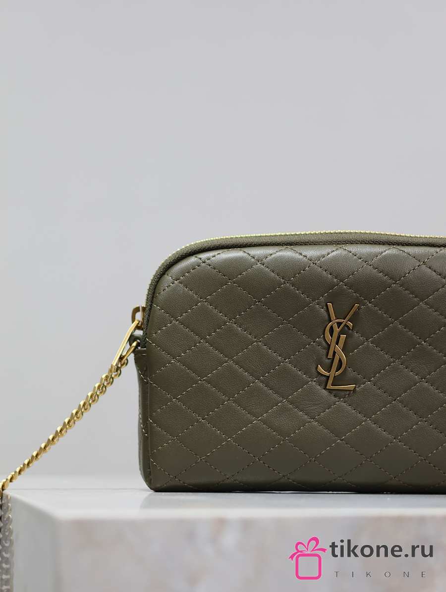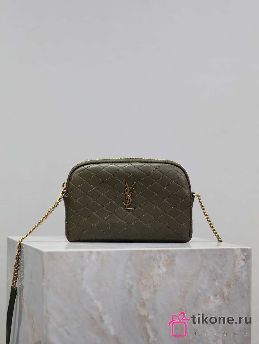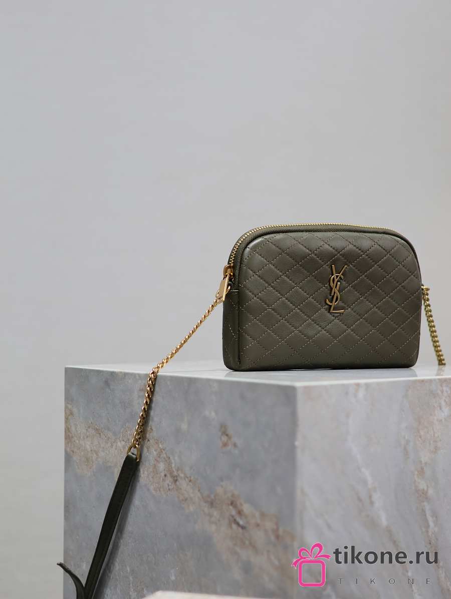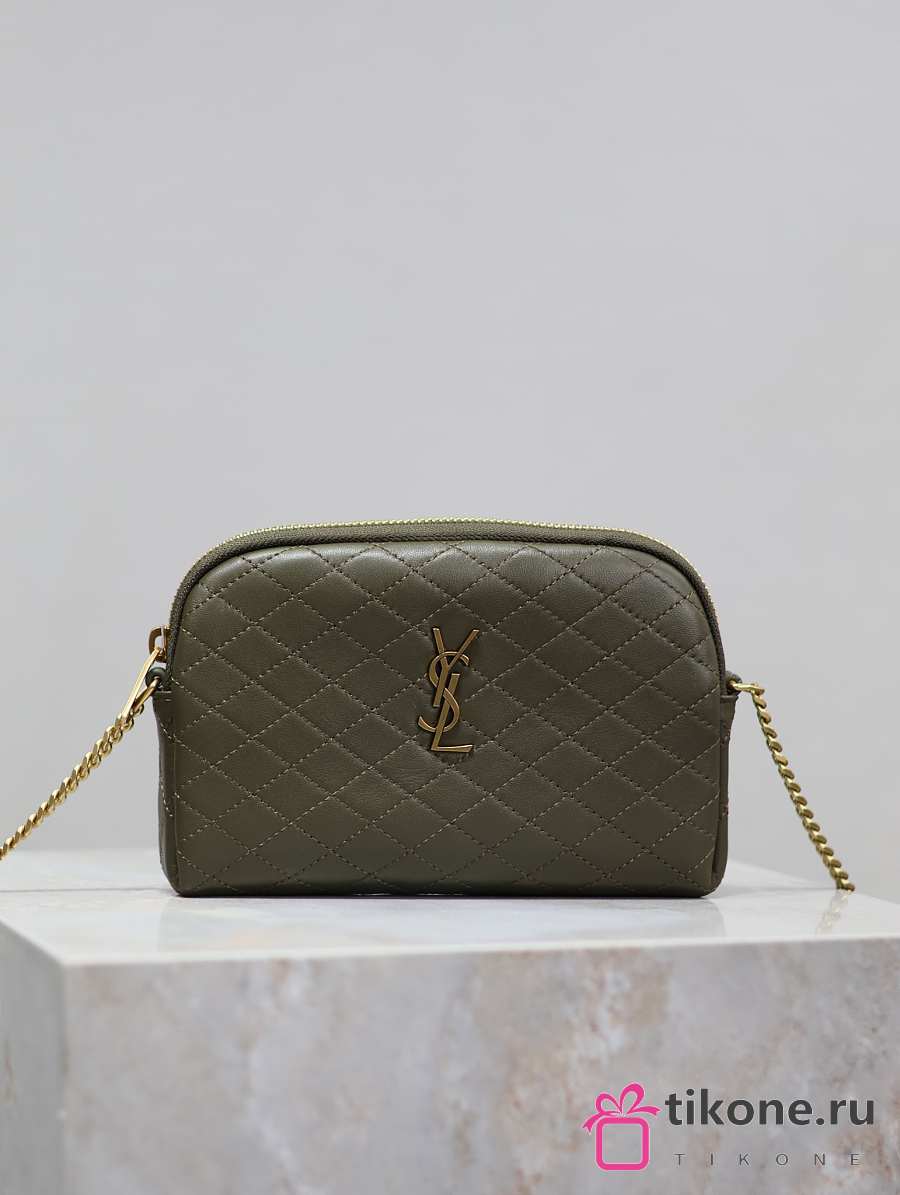 YSL Gaby Zipped Pouch In Quilted Lamskin Green - 19x12x3cm