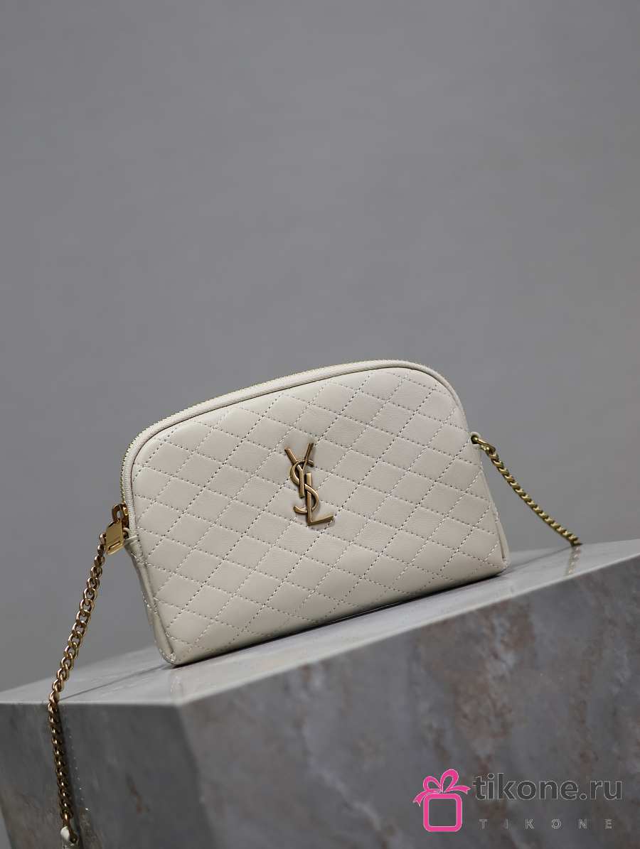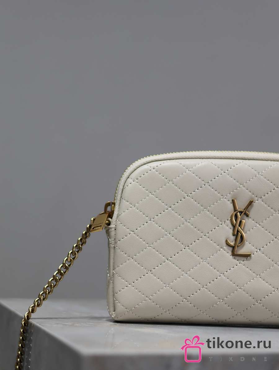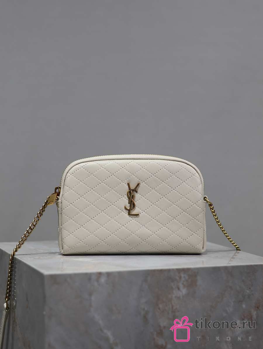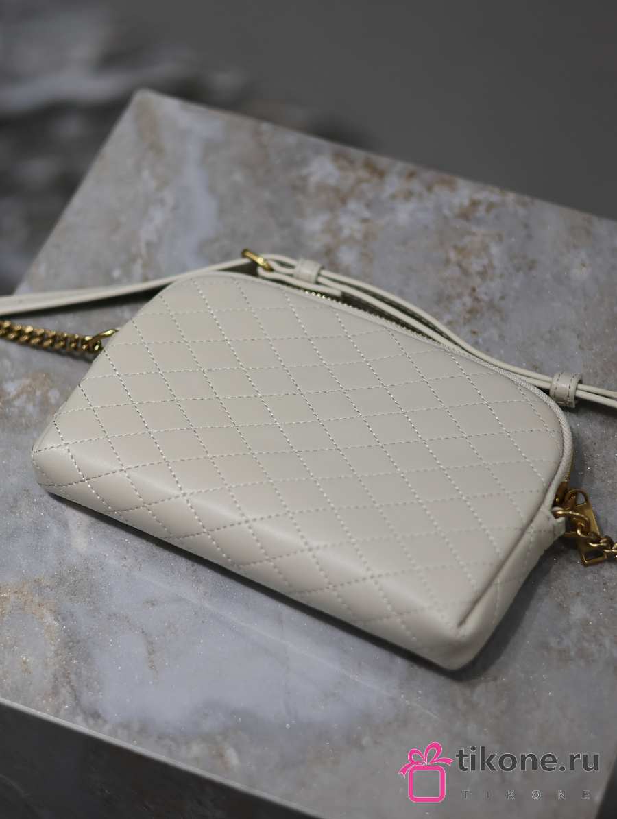 YSL Gaby Zipped Pouch In Quilted Lamskin White - 19x12x3cm
