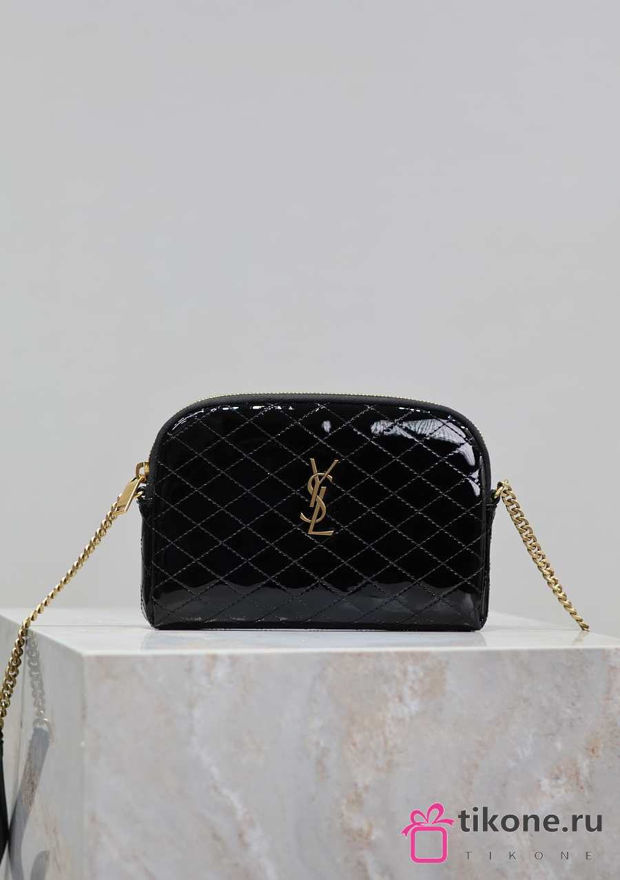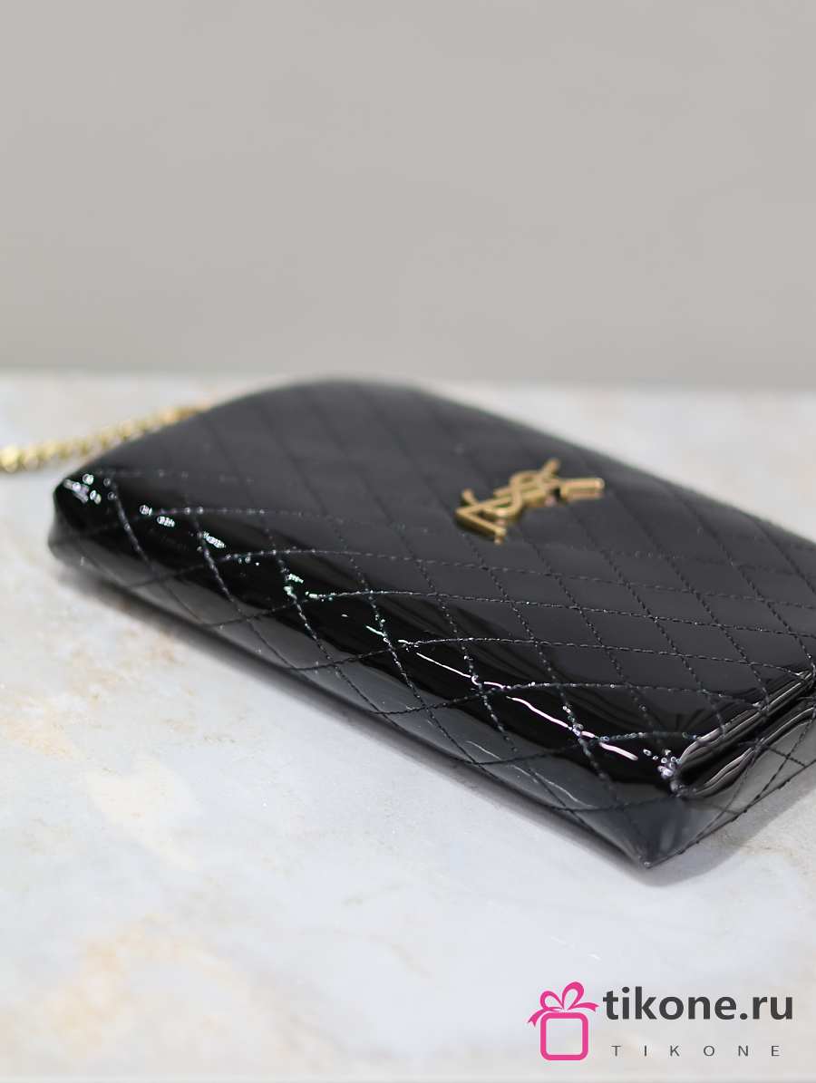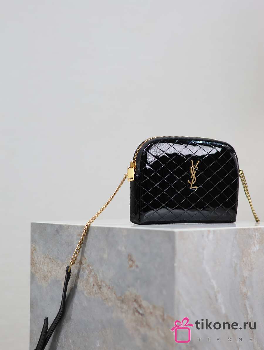 YSL Gaby Zipped Pouch In Quilted Patent Black - 19x12x3cm