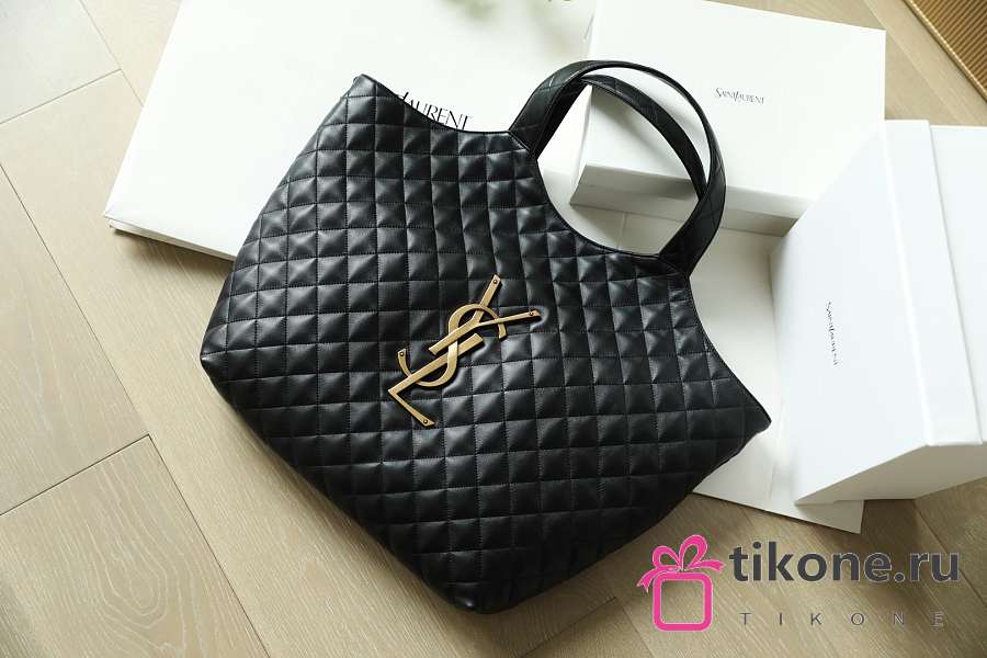 YSL Icare in Quilted Nappa Black - 37-55x43x5cm