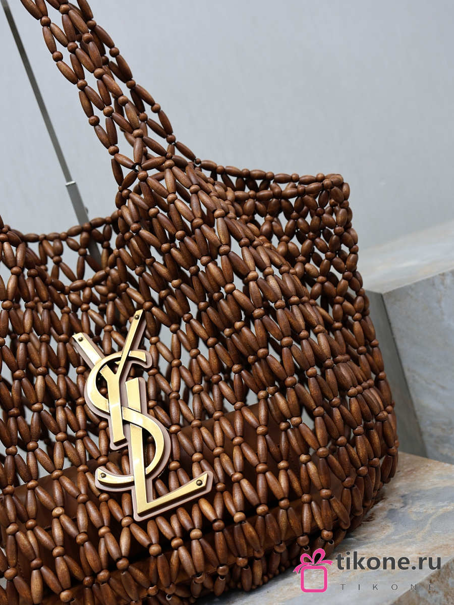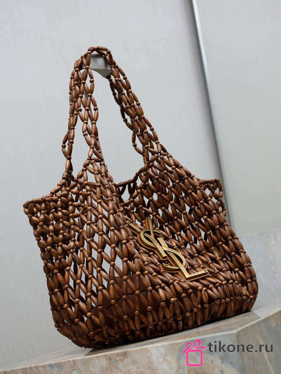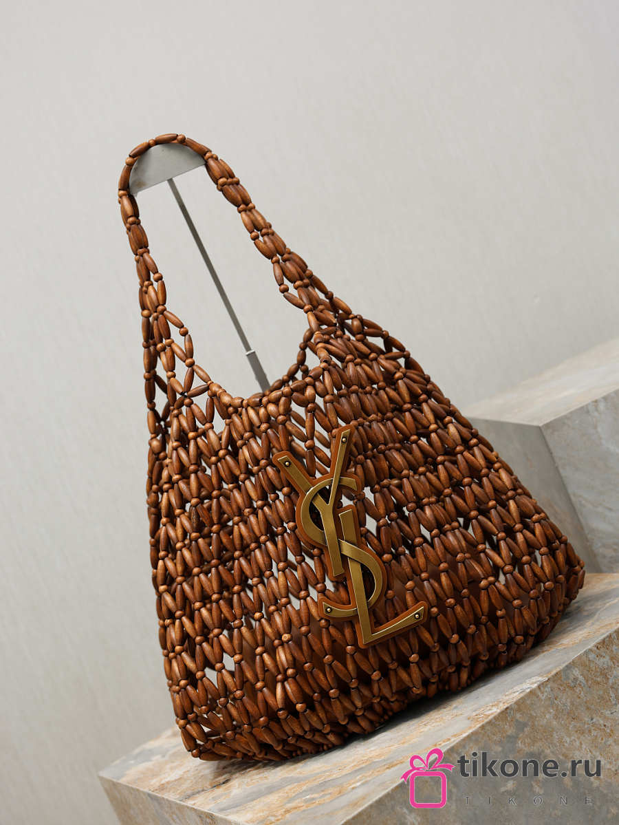 YSL Icare Medium In Wood Beads Light Wood And Brick - 31-46x28x16cm