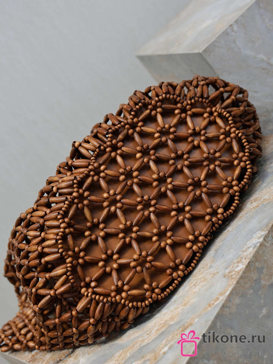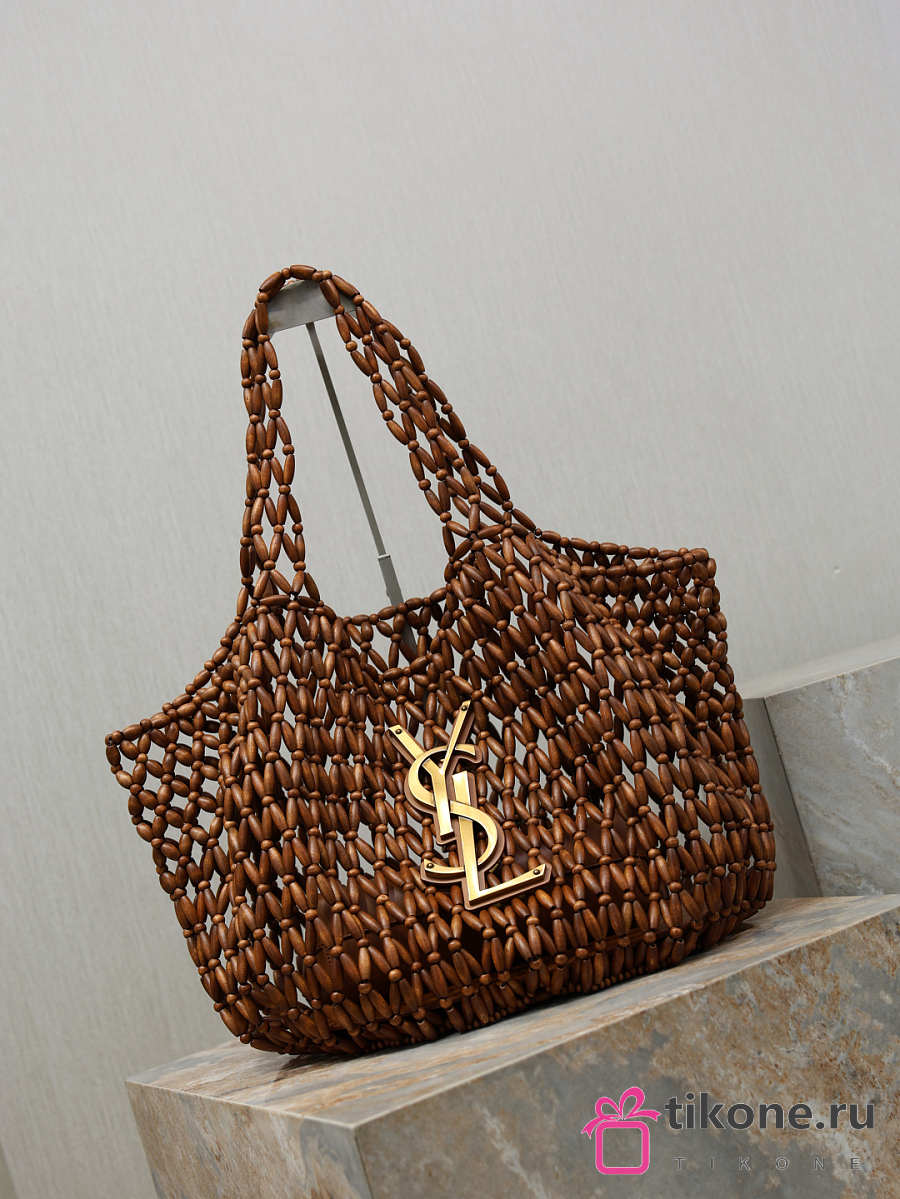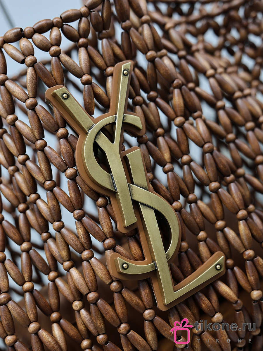 YSL Icare Medium In Wood Beads Light Wood And Brick - 31-46x28x16cm