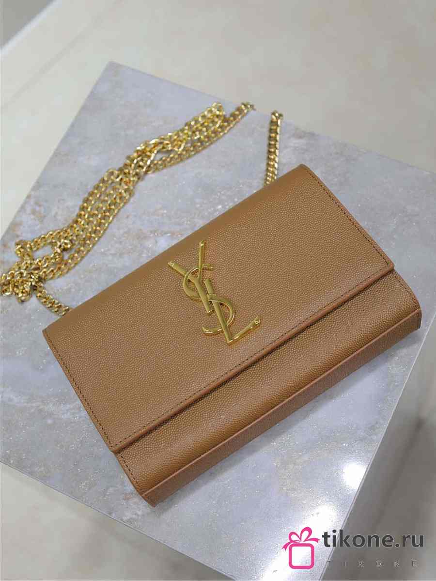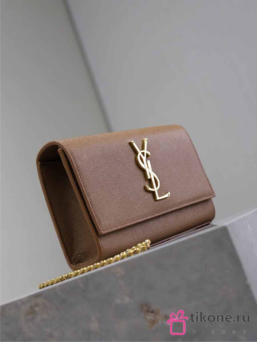 YSL Kate Small In Grain De Poudre Embossed Leather Brown - 20x12.5x5cm