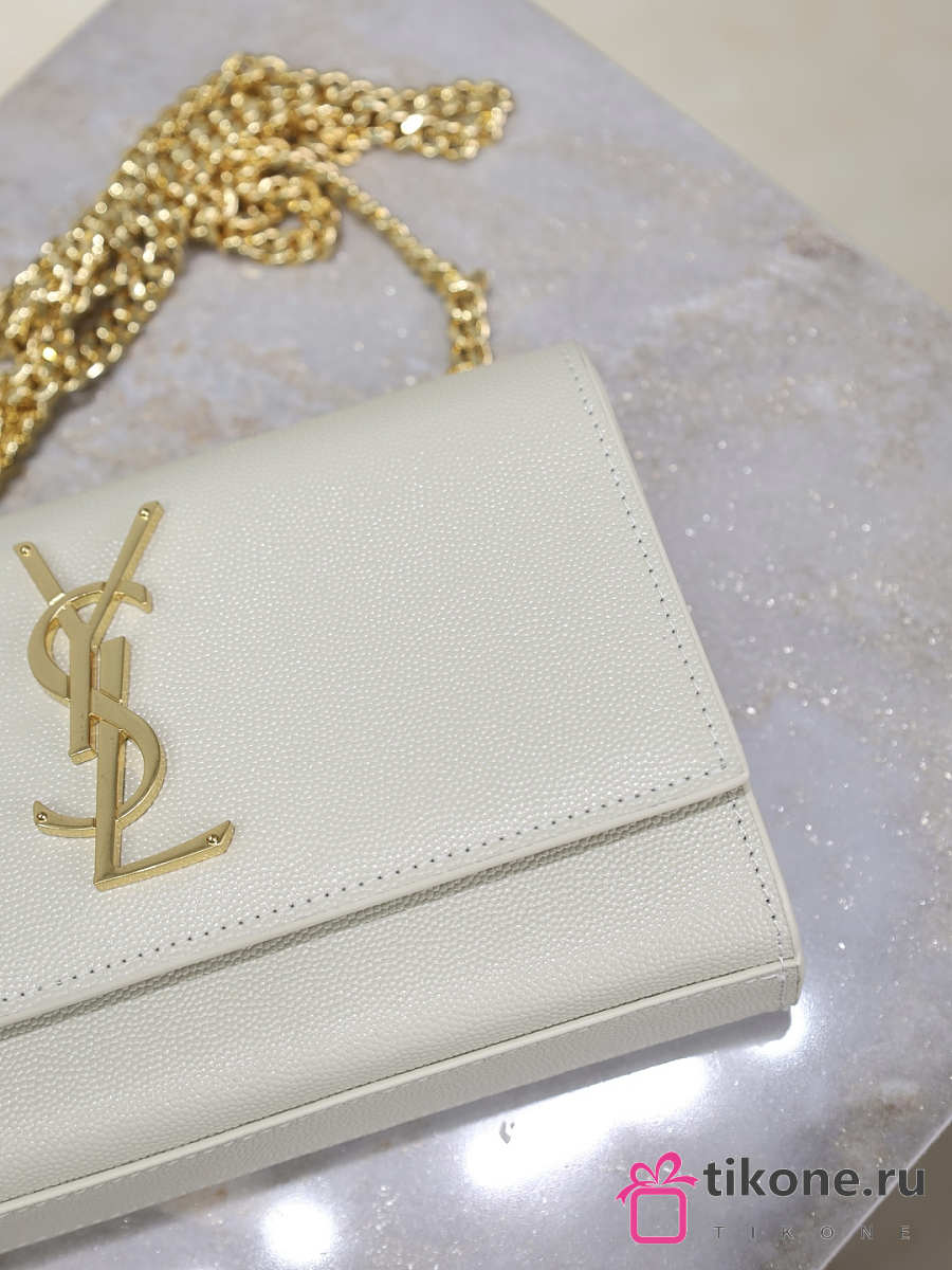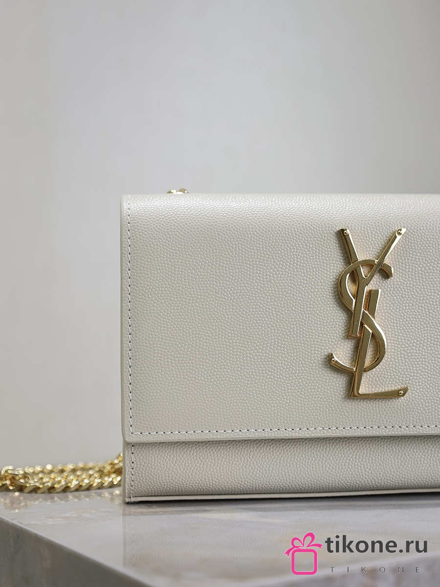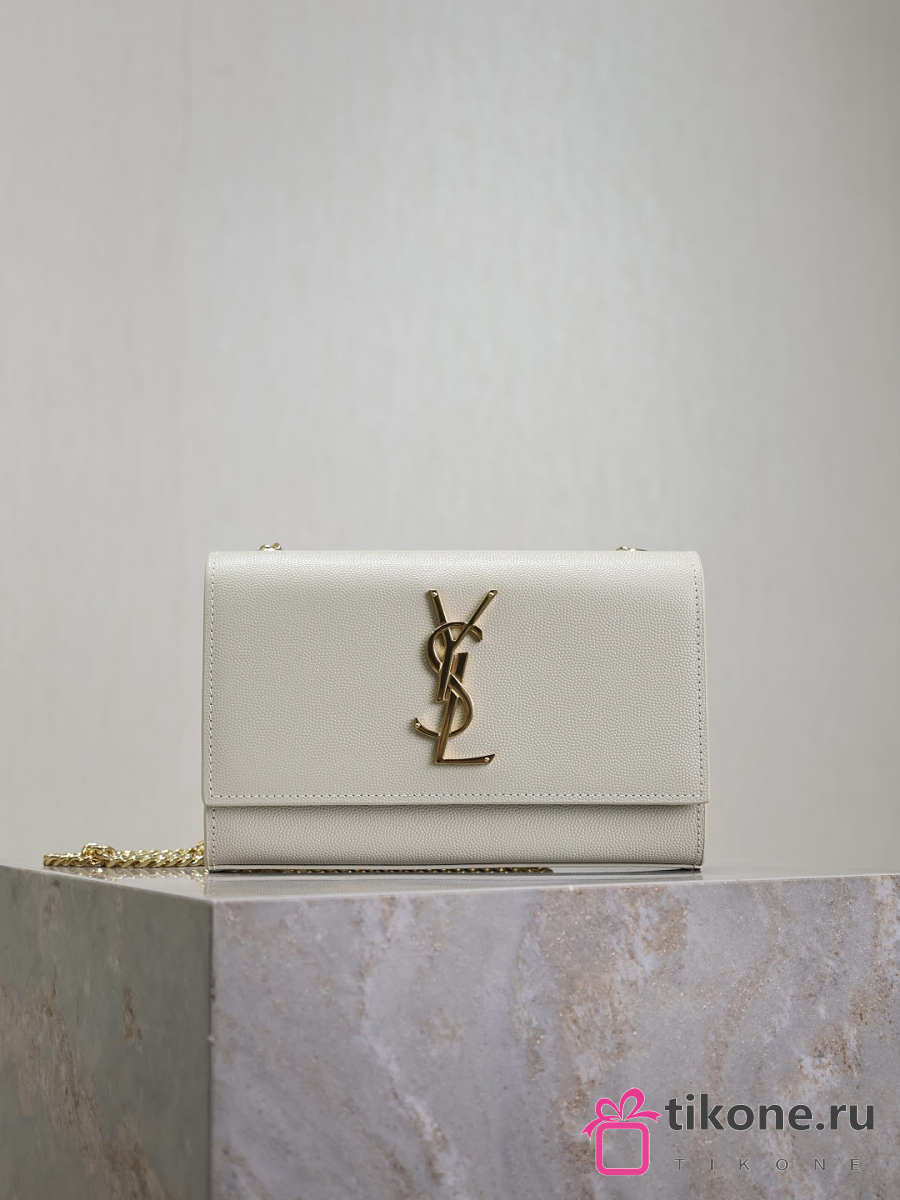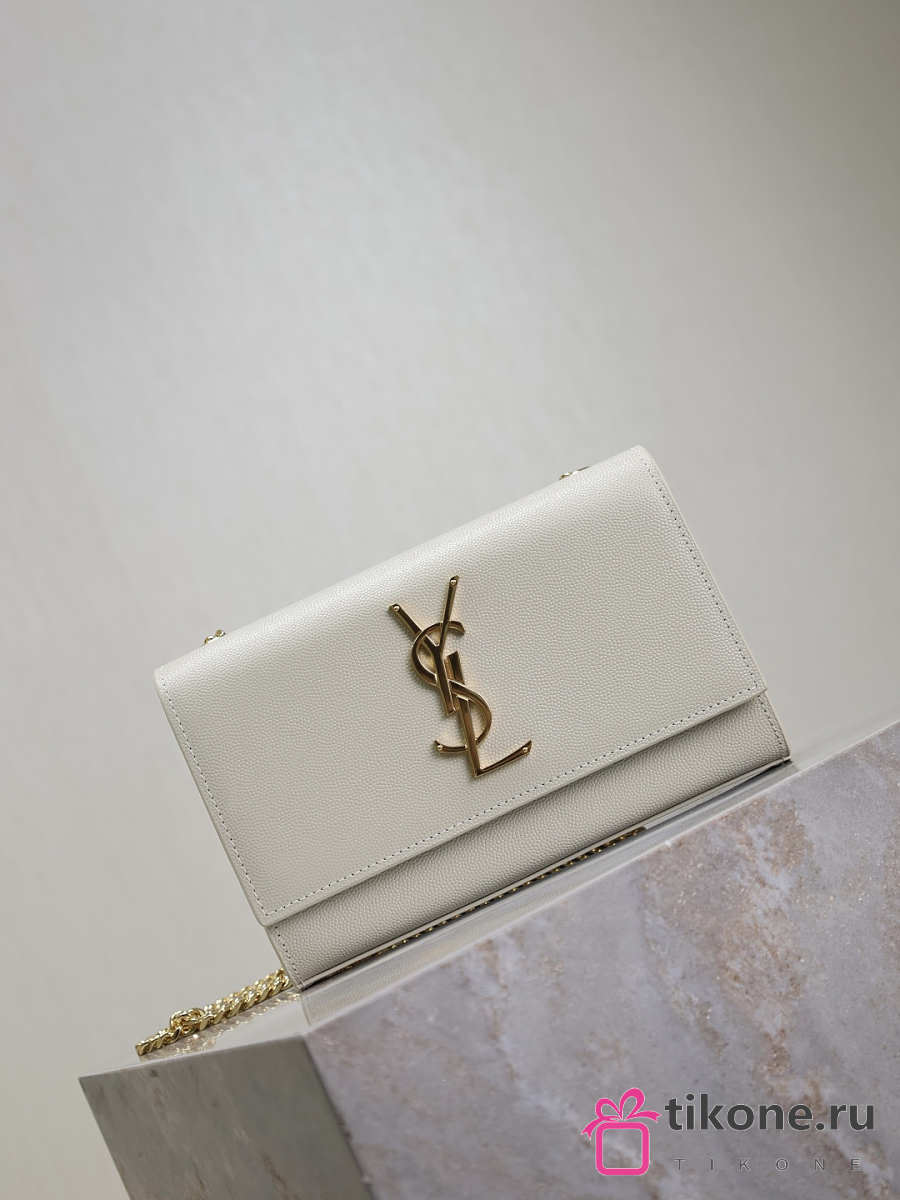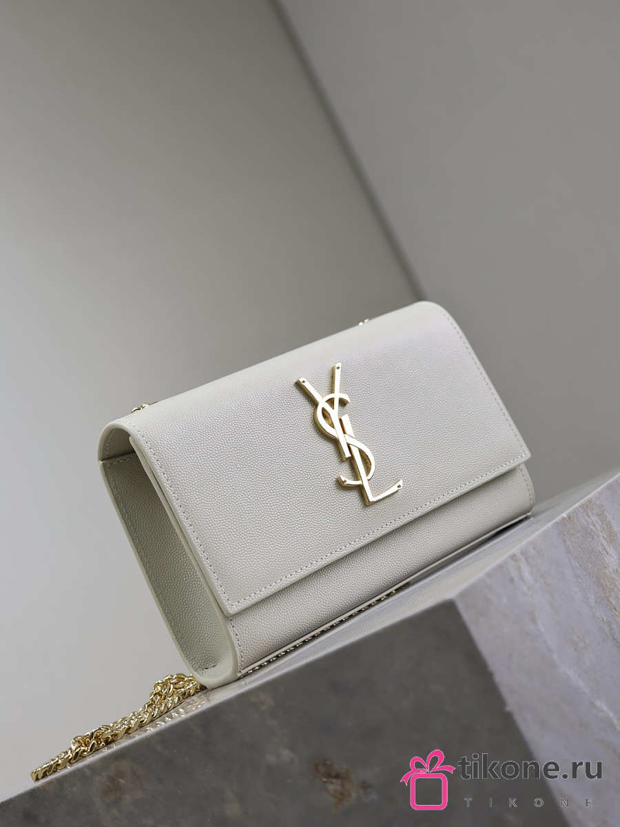YSL Kate Small In Grain De Poudre Embossed Leather White - 20x12.5x5cm