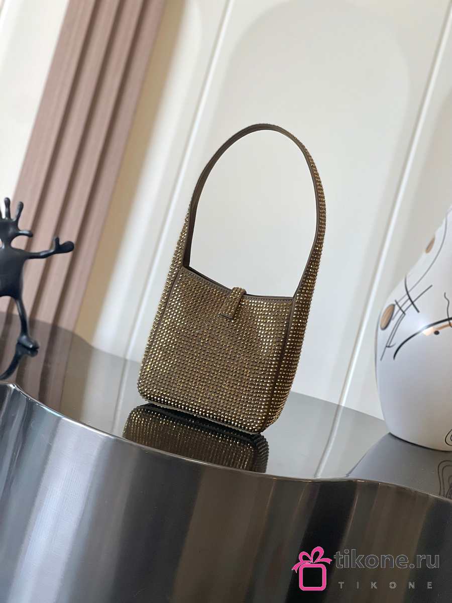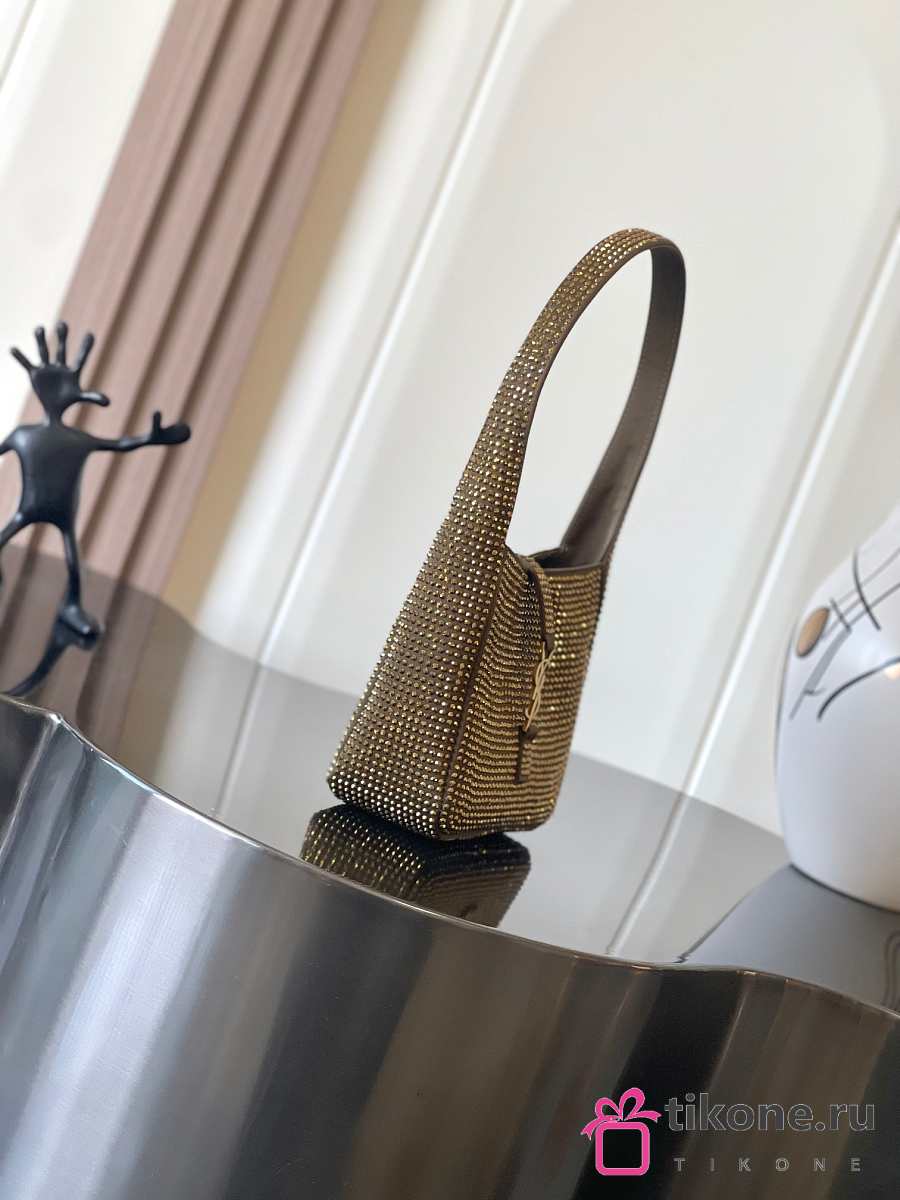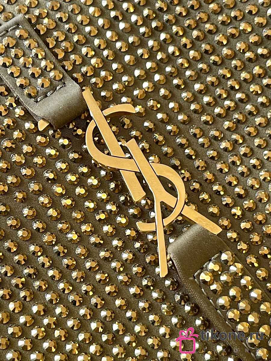 YSL Le 5 À 7 Supple Baby In Satin And Crystals Gold - 16×15×7cm