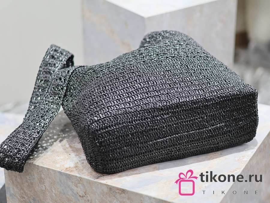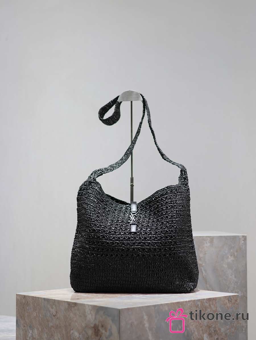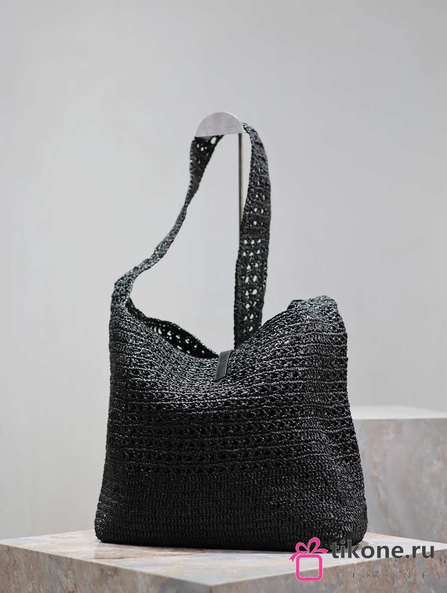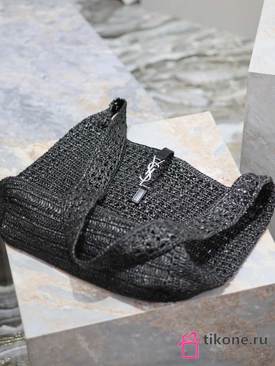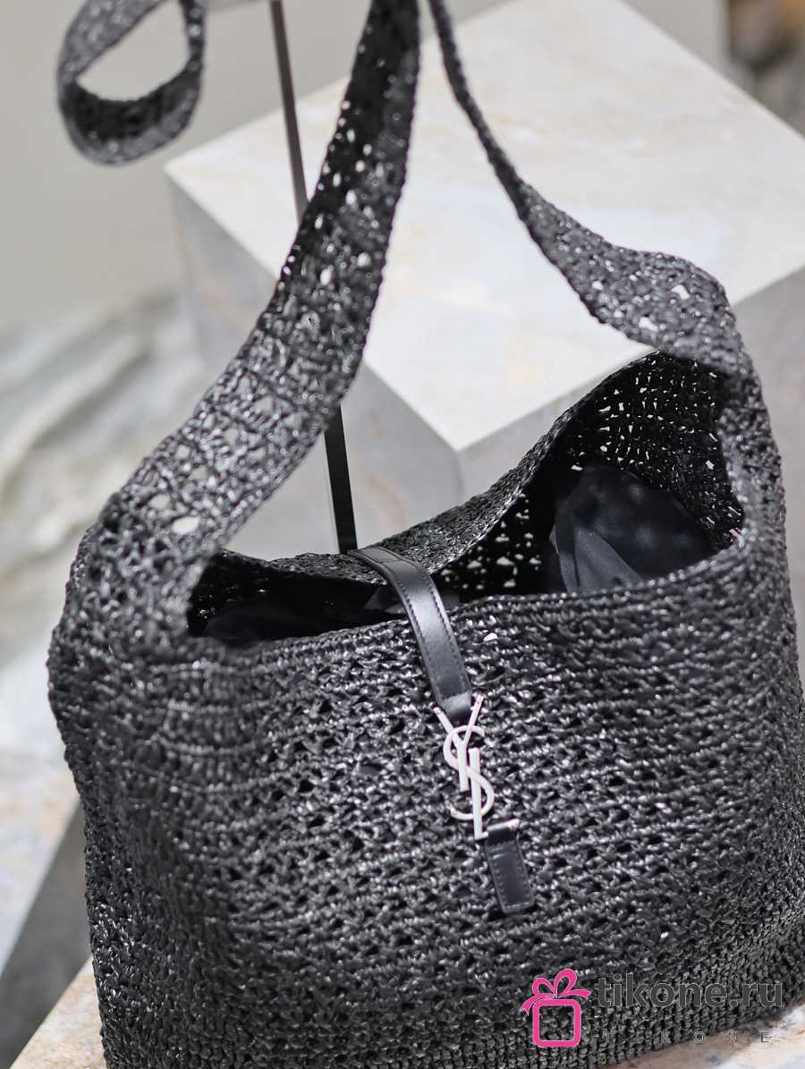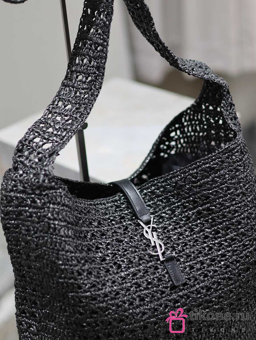 YSL Le 5 A 7 Medium Tote In Raffia In Black - 39x32x15cm