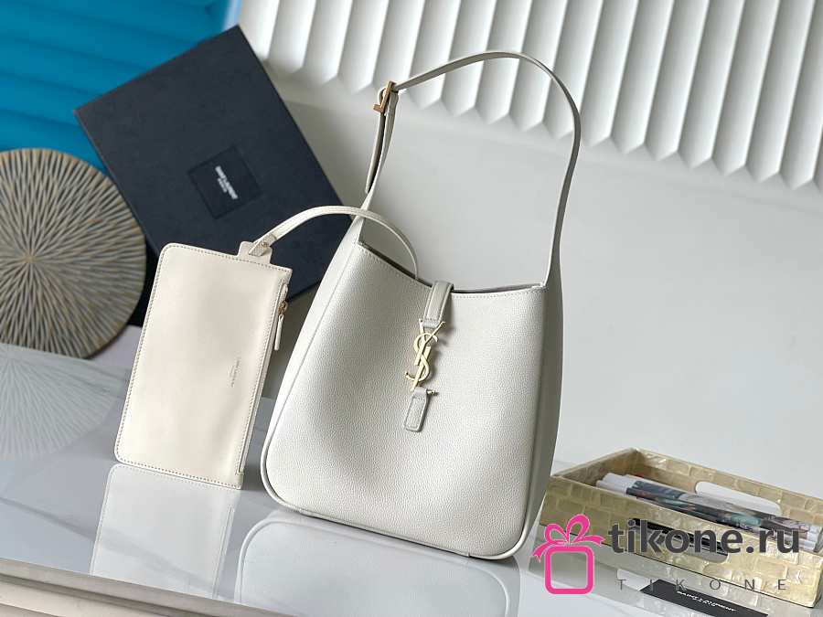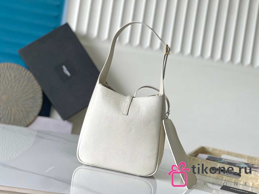 YSL Le 5 A 7 Supple Small In Grained Leather White - 23x22x8.5cm
