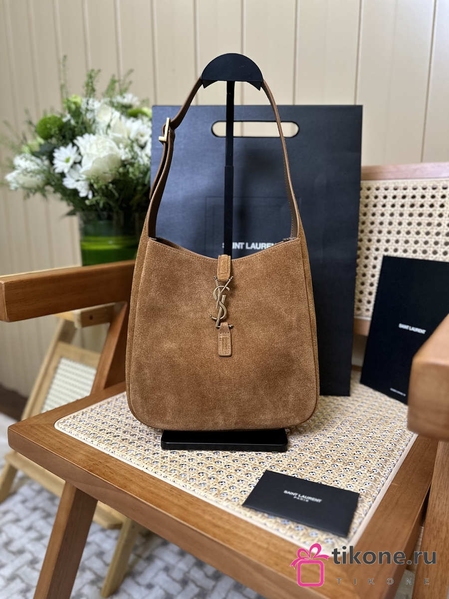 YSL Brown Hobo Mini Lou Bag - 23x16x6cm