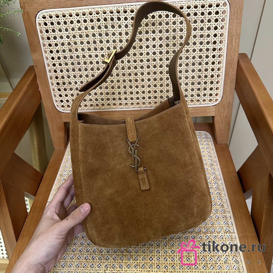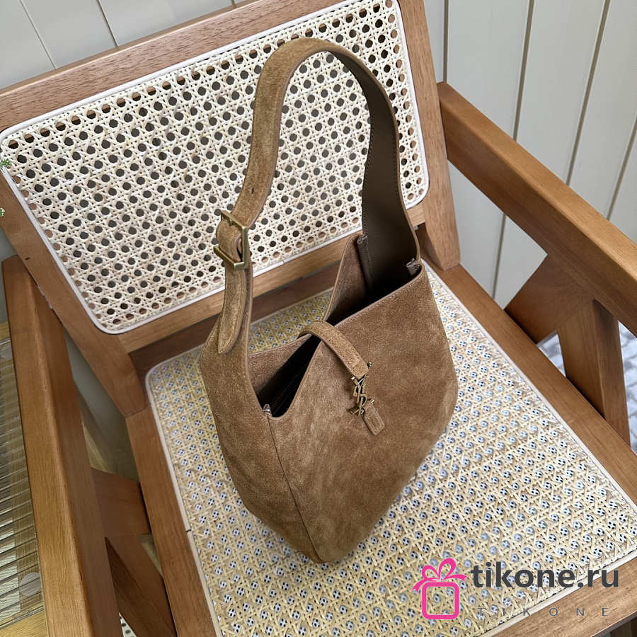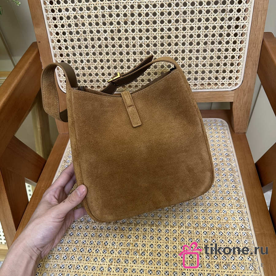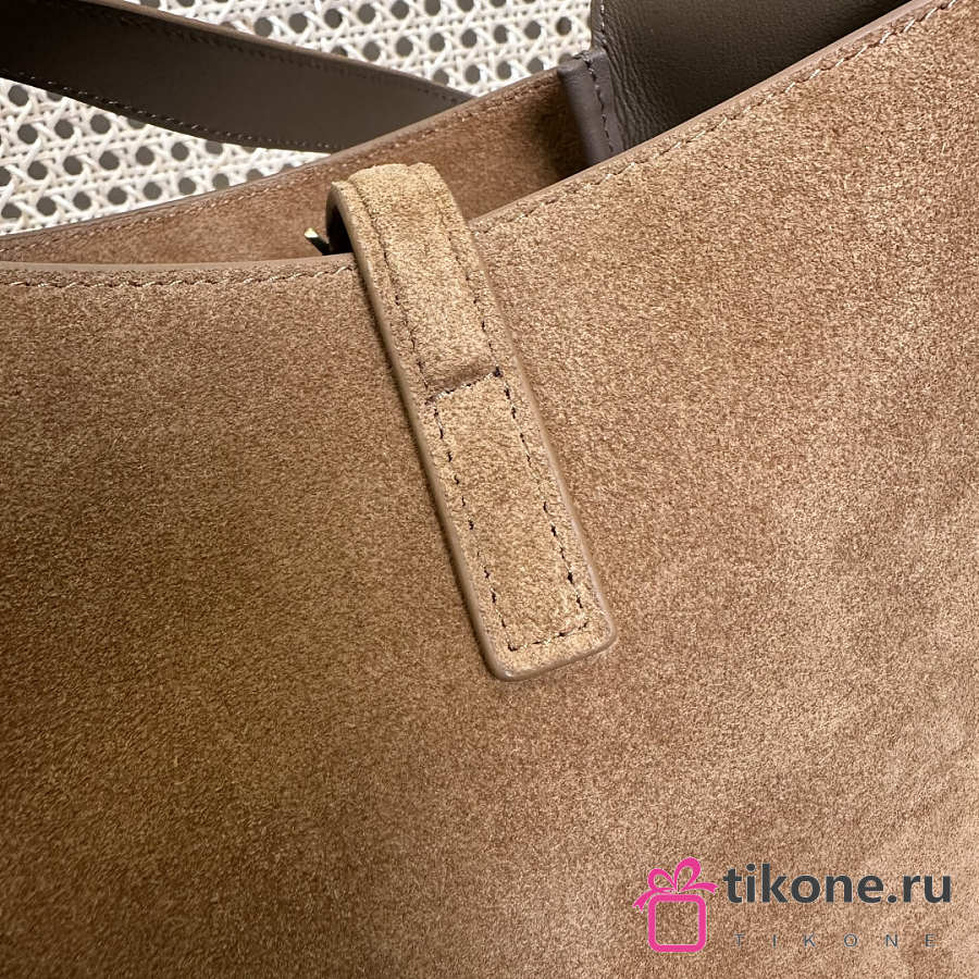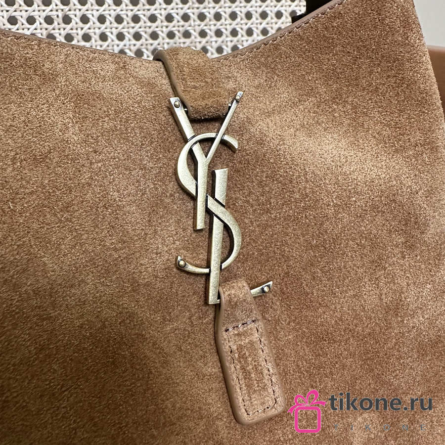 YSL Le 5 A 7 Supple Small In Suede Leather Brown - 23x22x8.5cm