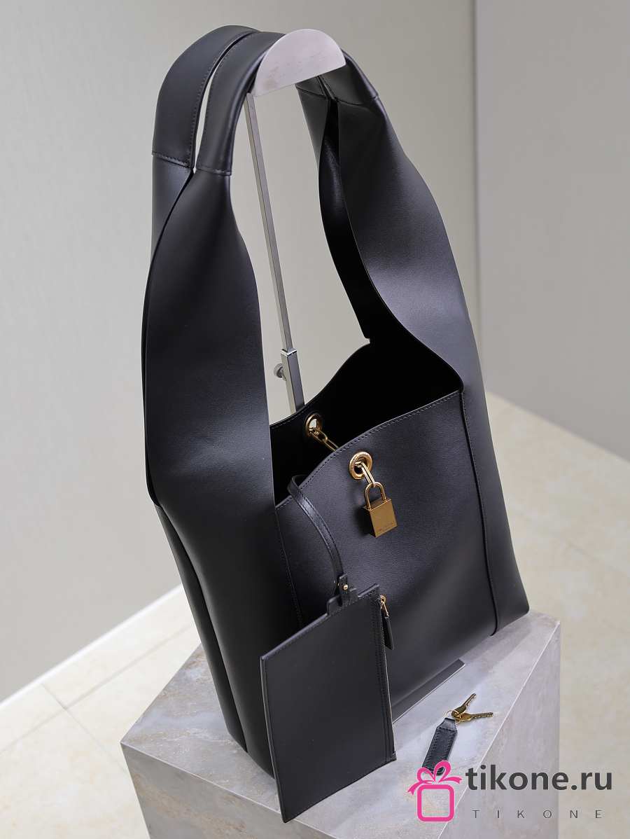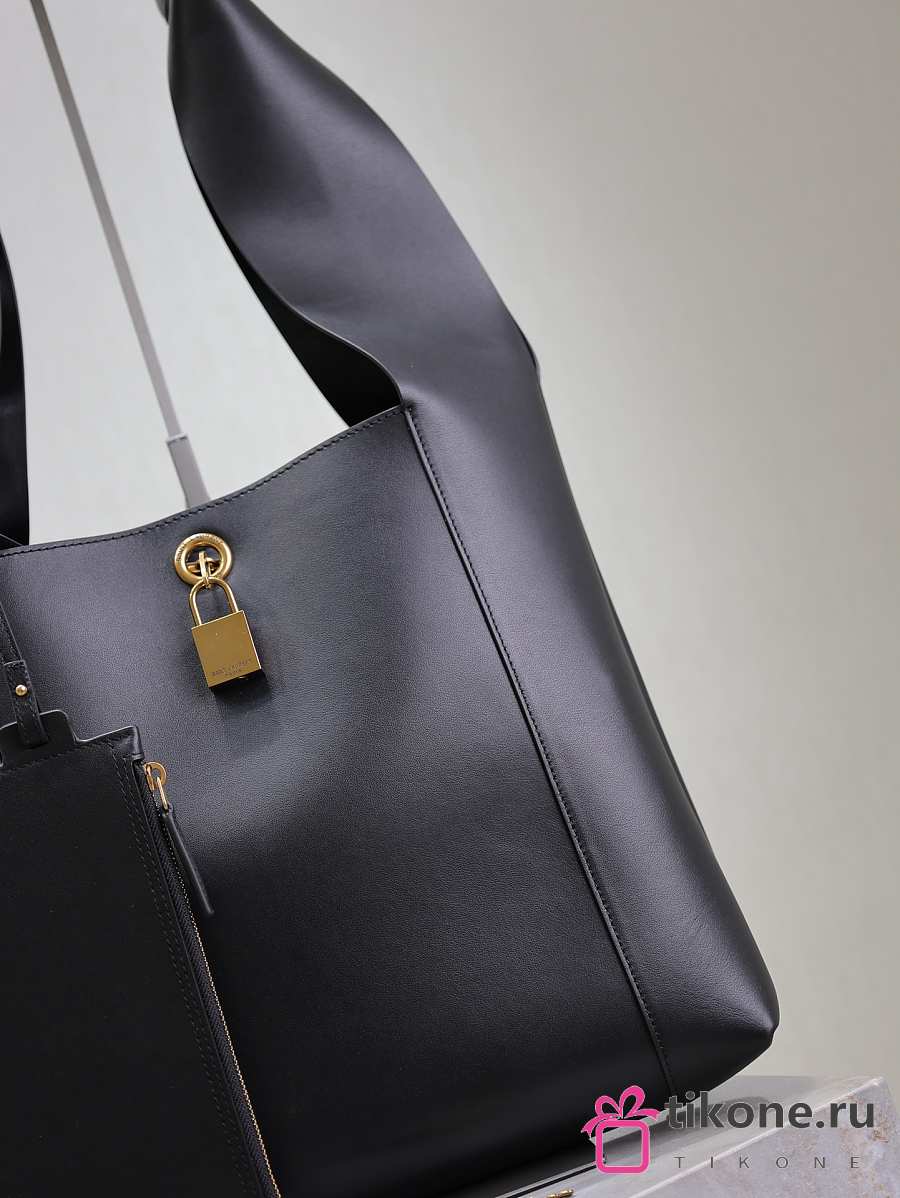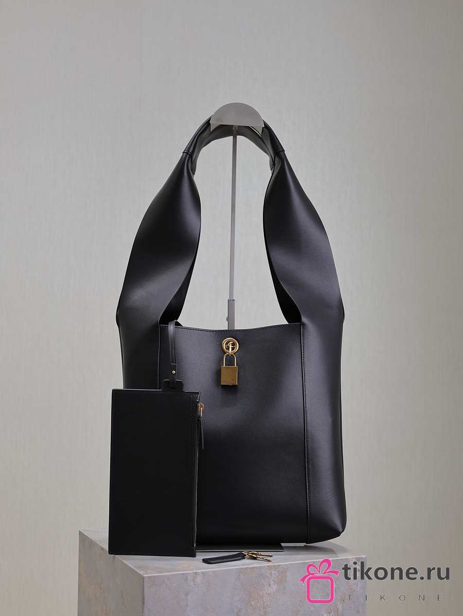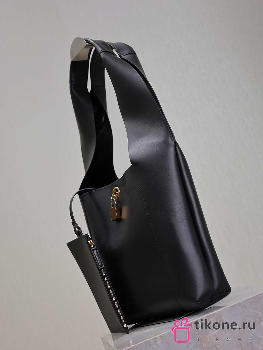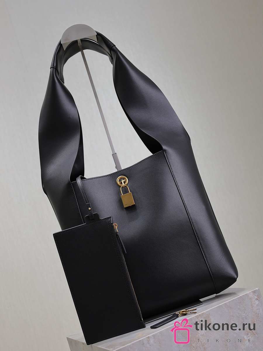 YSL Lock Leather Hobo Bag Black - 27x27x8cm