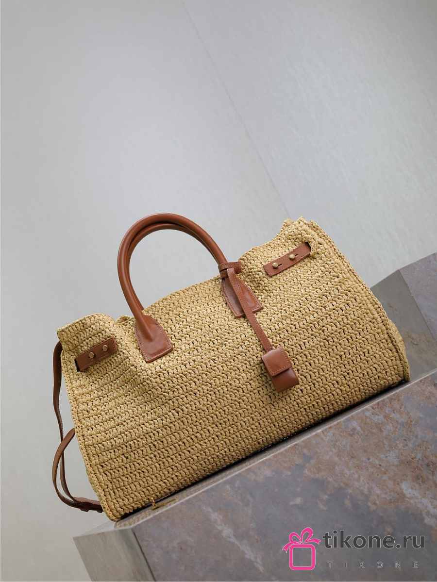 YSL Medium Sac De Jour Raffia Top Handle Bag Natural - 41x28x13cm