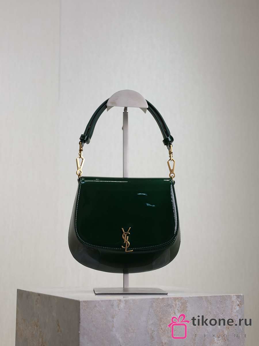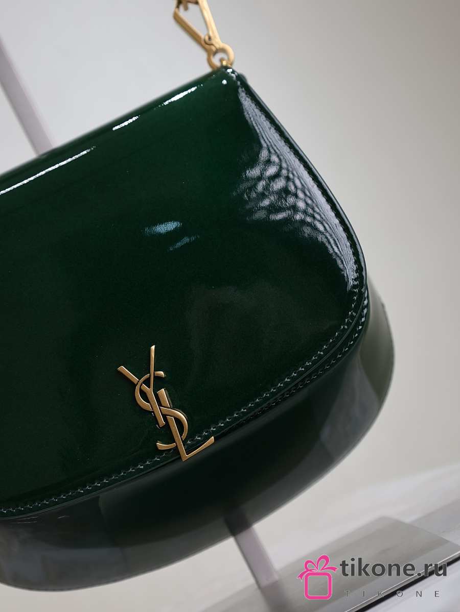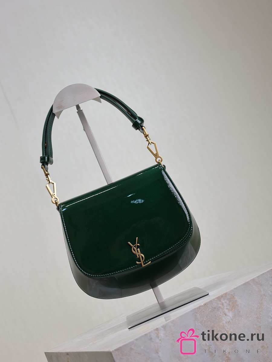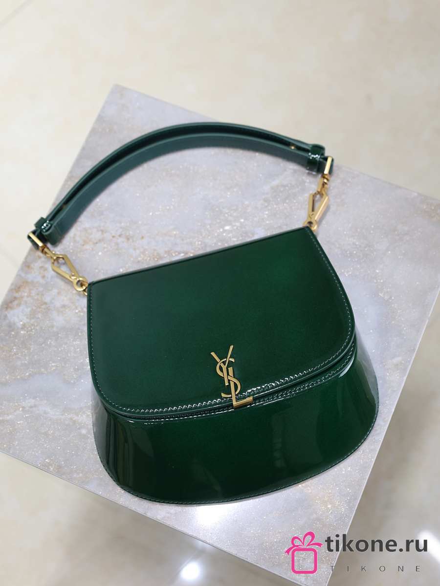 YSL Mini Voltaire Top Handle Bag In Patent Green - 21x17.5x8cm