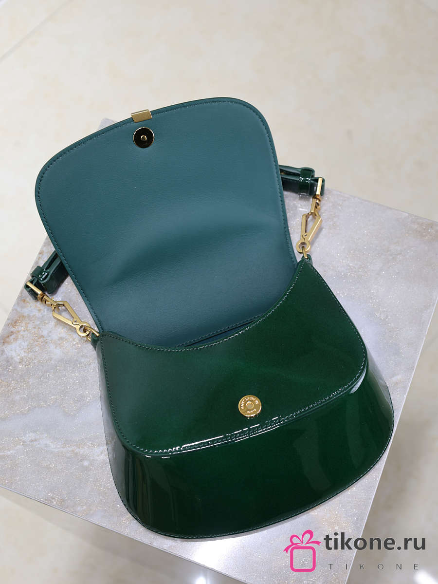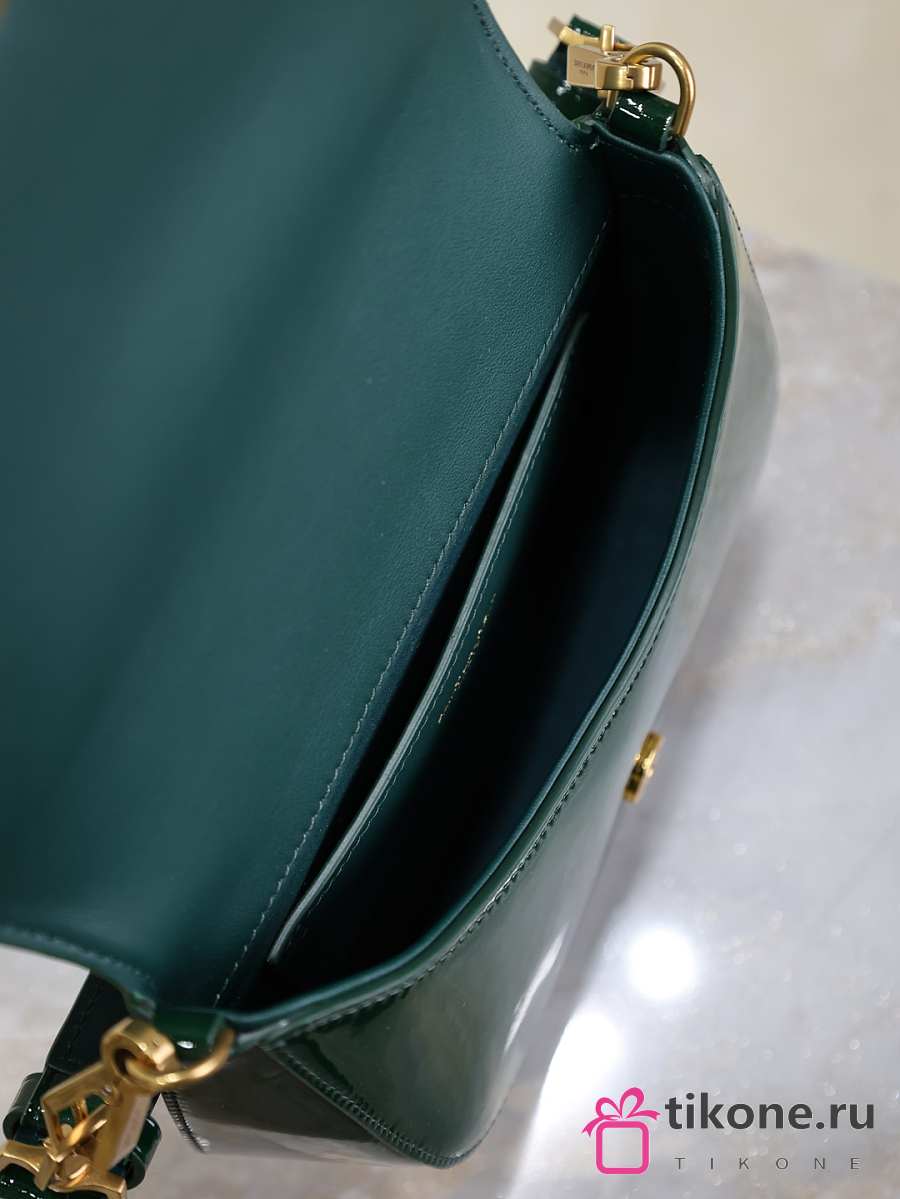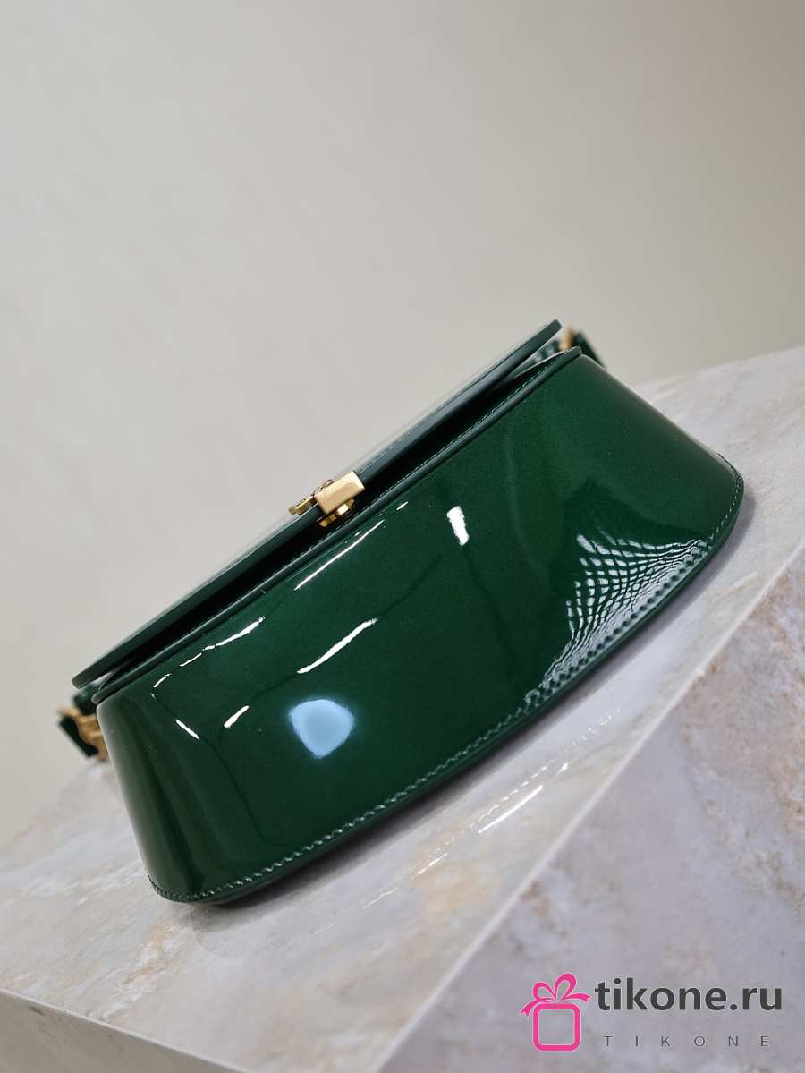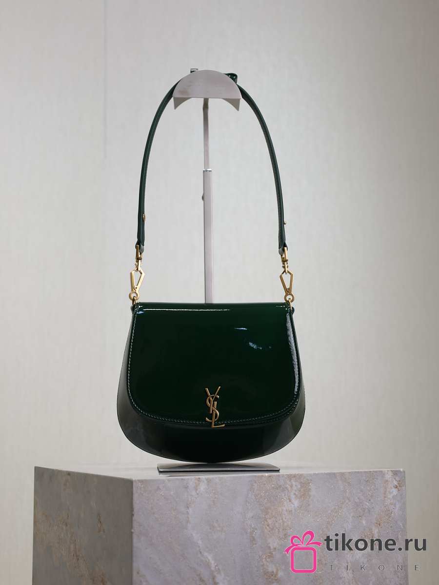 YSL Mini Voltaire Top Handle Bag In Patent Green - 21x17.5x8cm