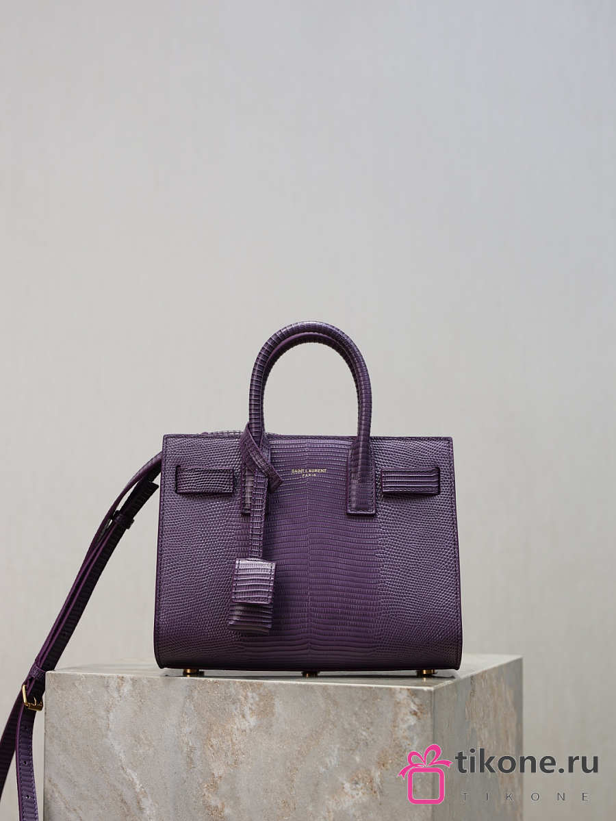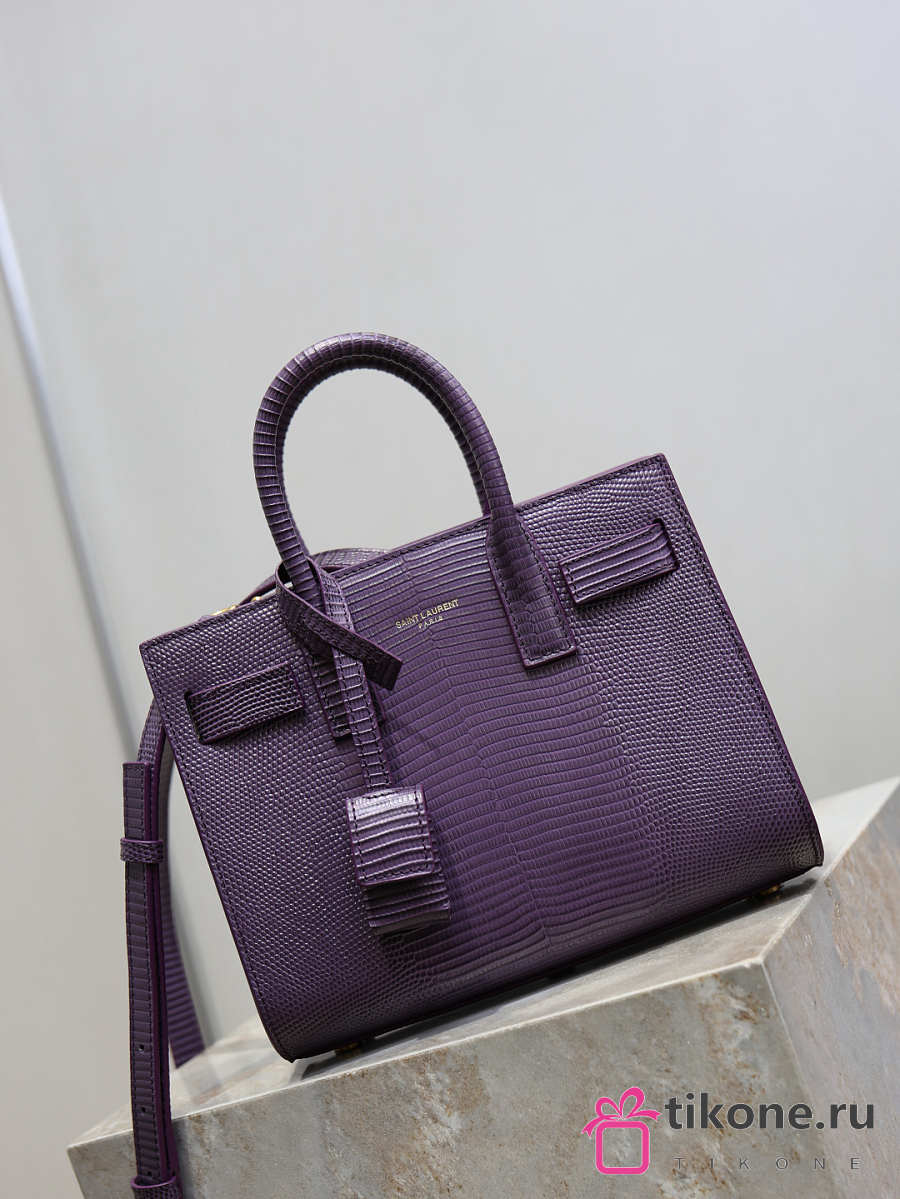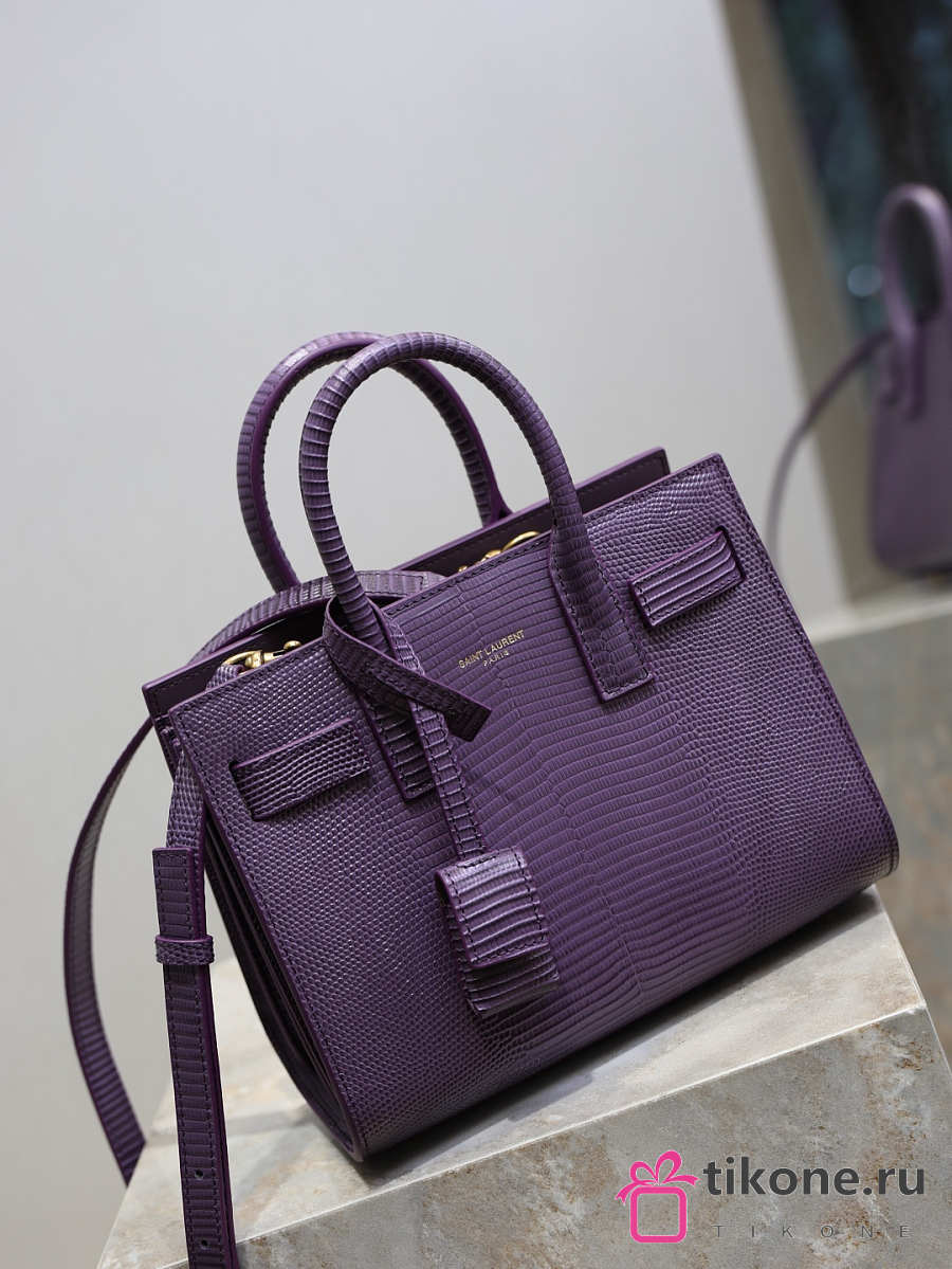 YSL Nano Sac De Jour In Lizard Leather Purple - 22x18x10.5cm