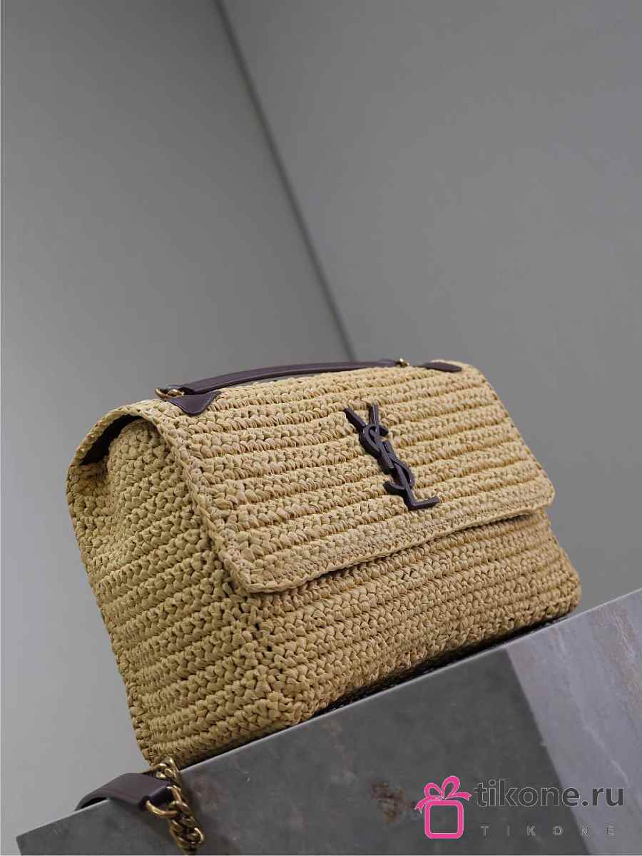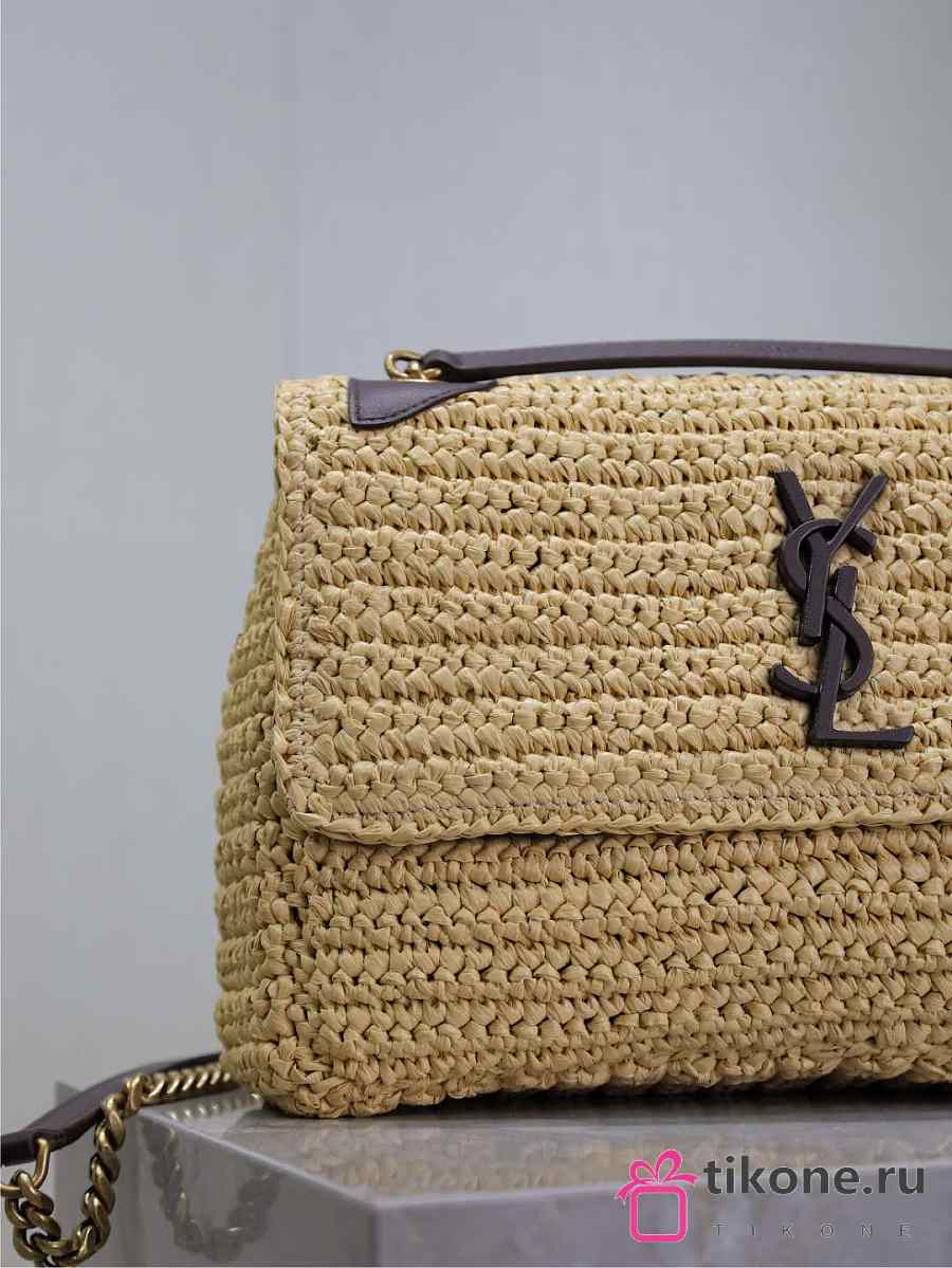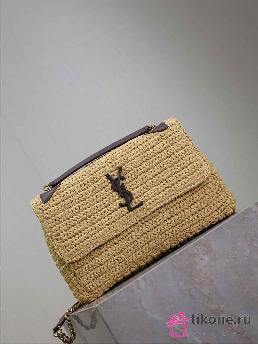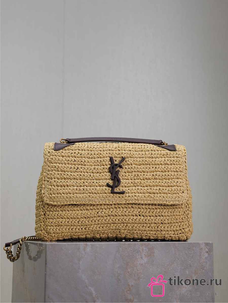 YSL Niki Medium In Raffia Natural And Brown - 28x20x8.5cm