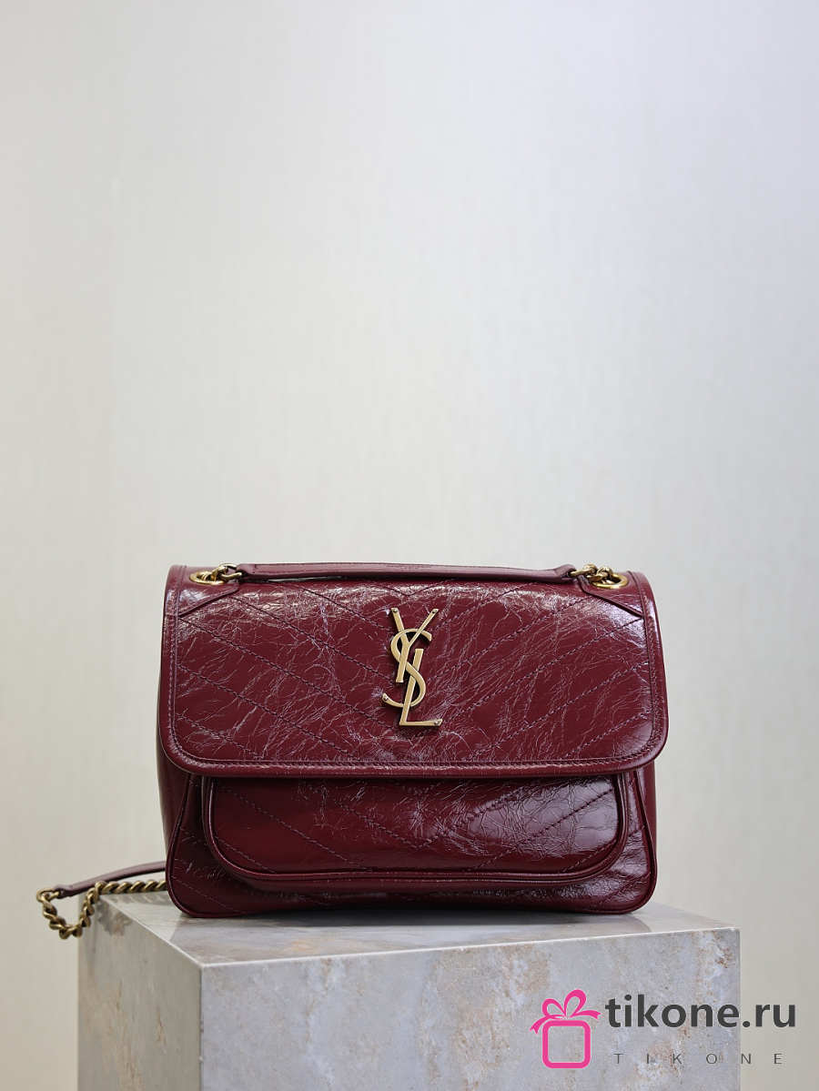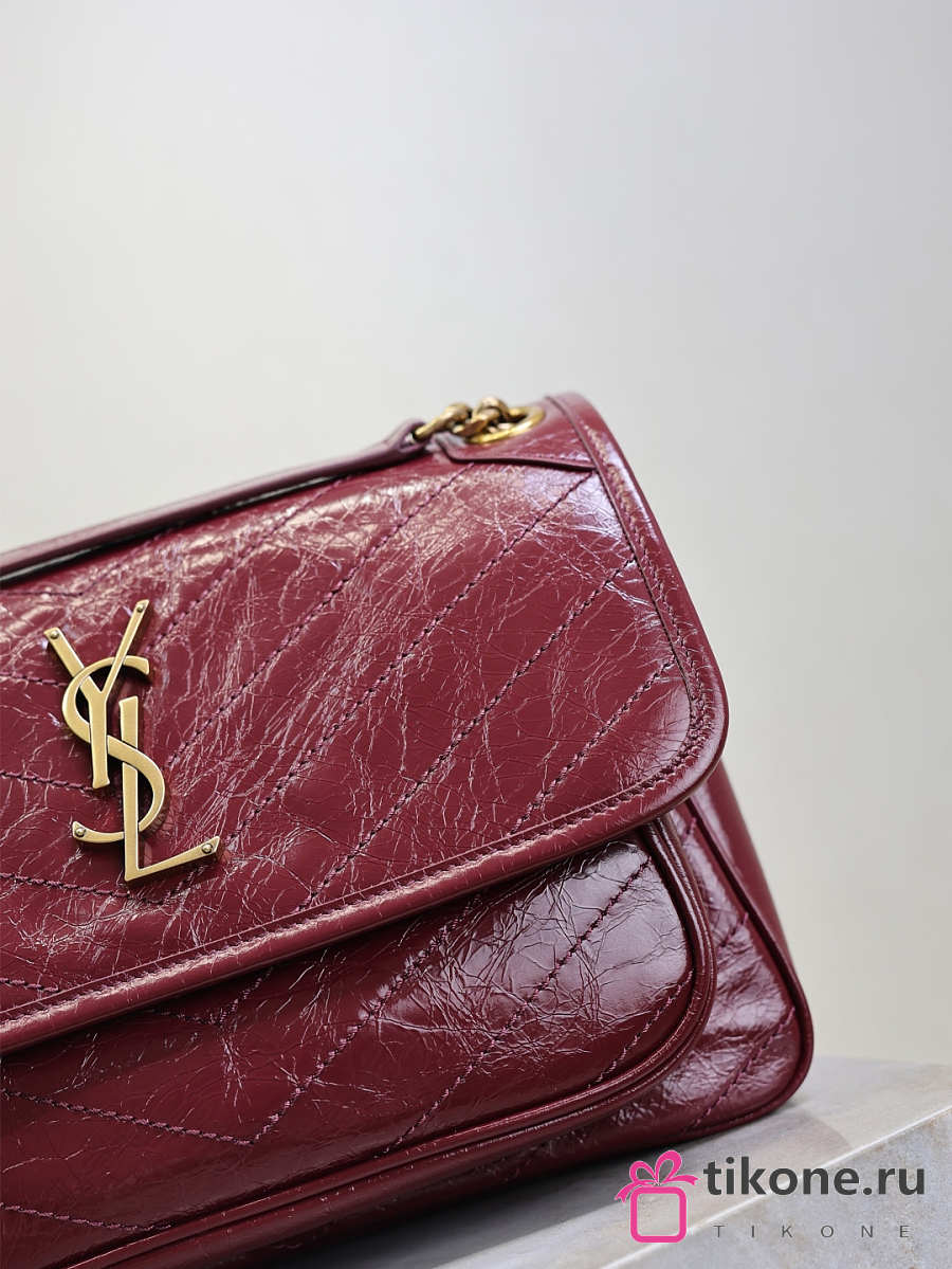 YSL Niki Medium In Vintage Leather Burgundy - 28x20x8.5cm